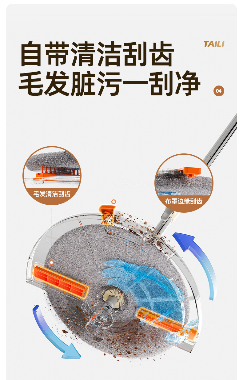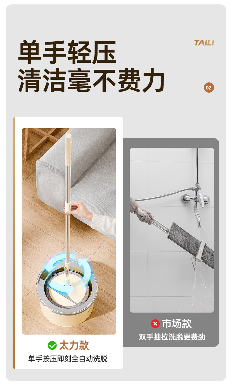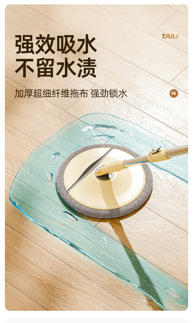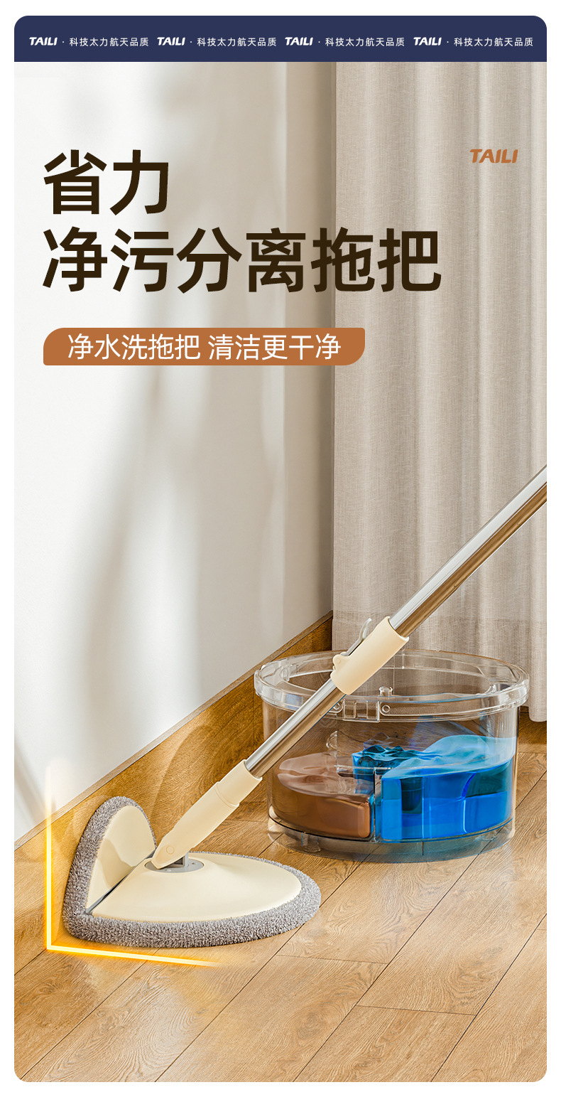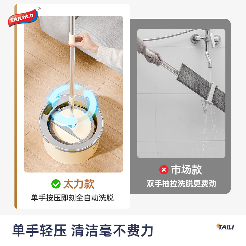 Taili 새로운 스타일 깨끗한 먼지 분리 양모 깨끗한 가정용 손으로 씻을 수있는 로터리 바닥 걸레 유물