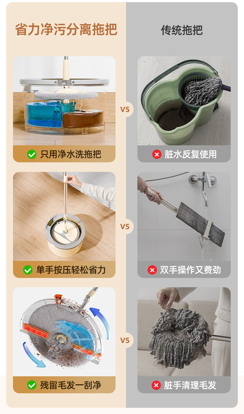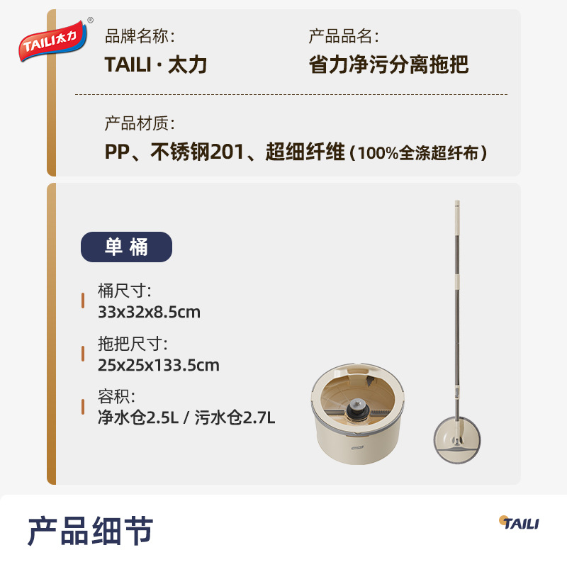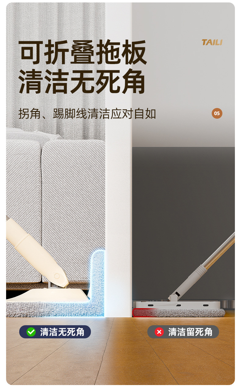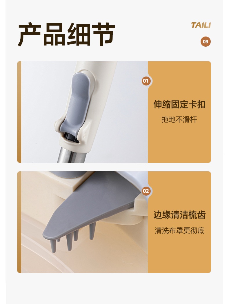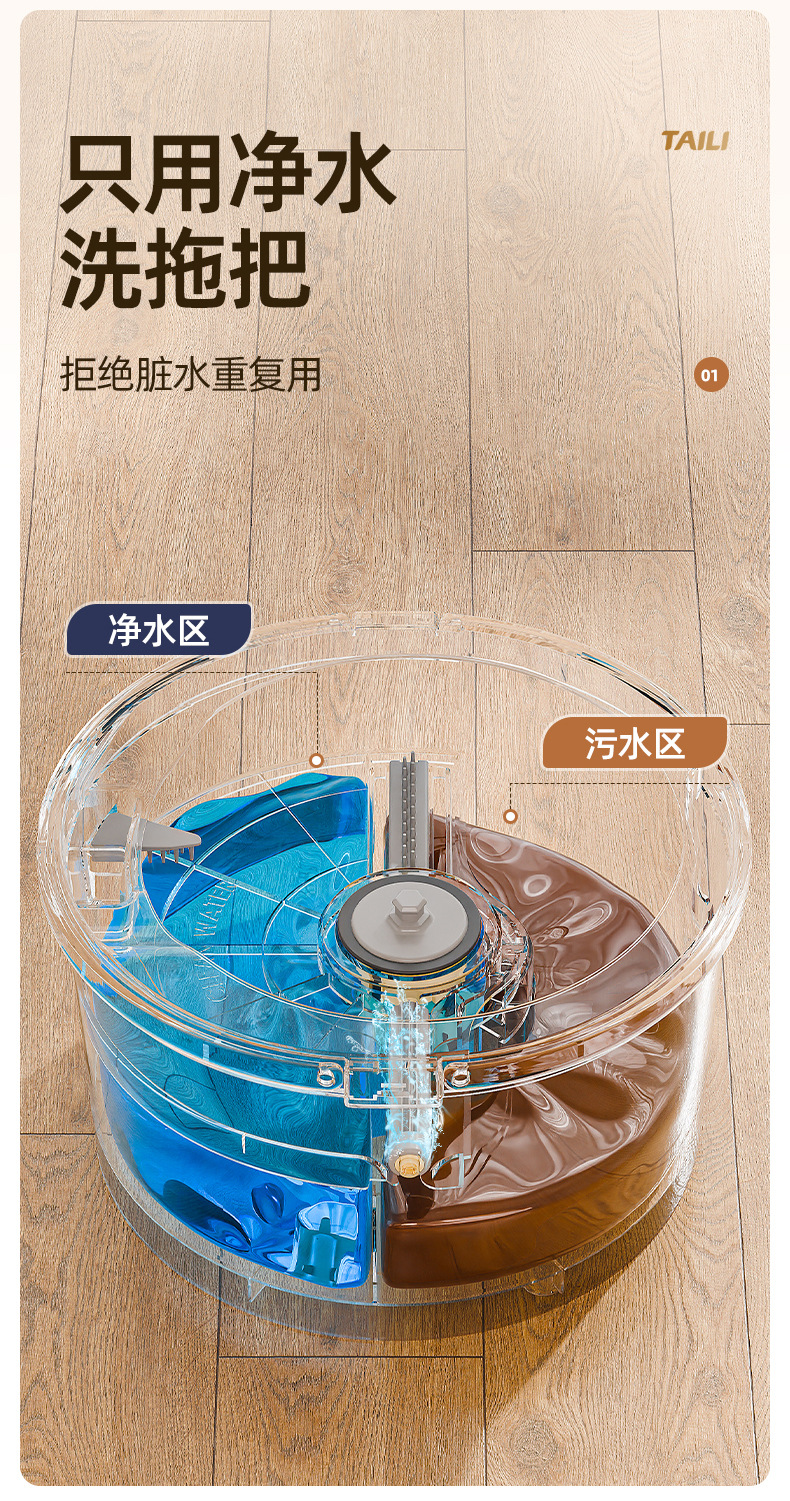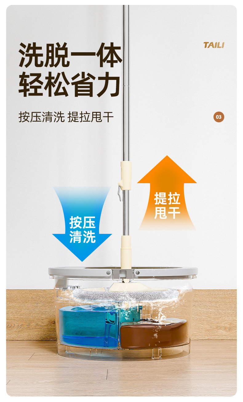Taili 새로운 스타일 깨끗한 먼지 분리 양모 깨끗한 가정용 손으로 씻을 수있는 로터리 바닥 걸레 유물