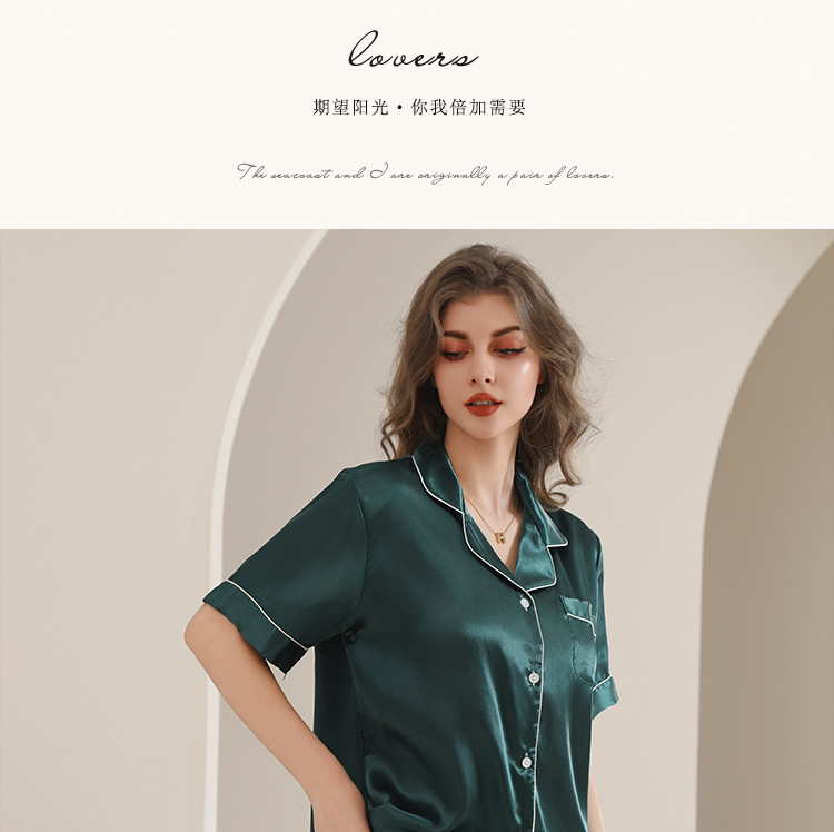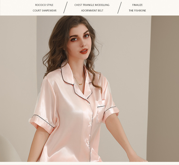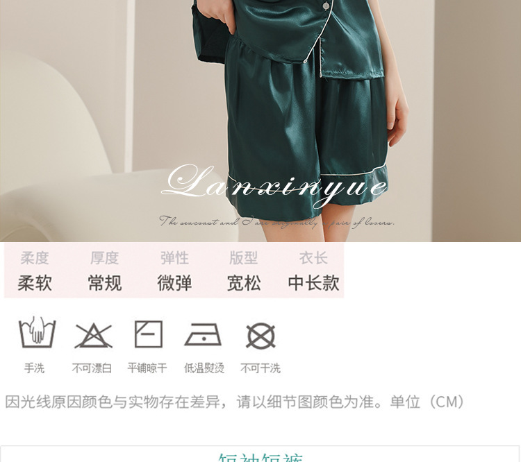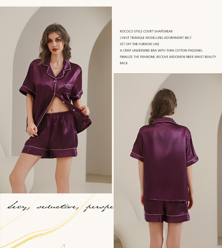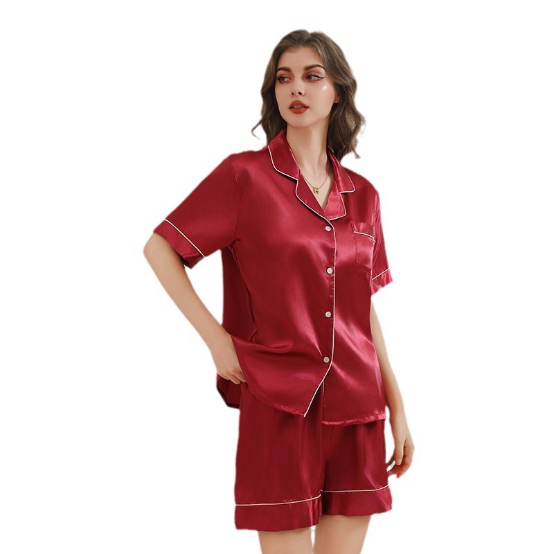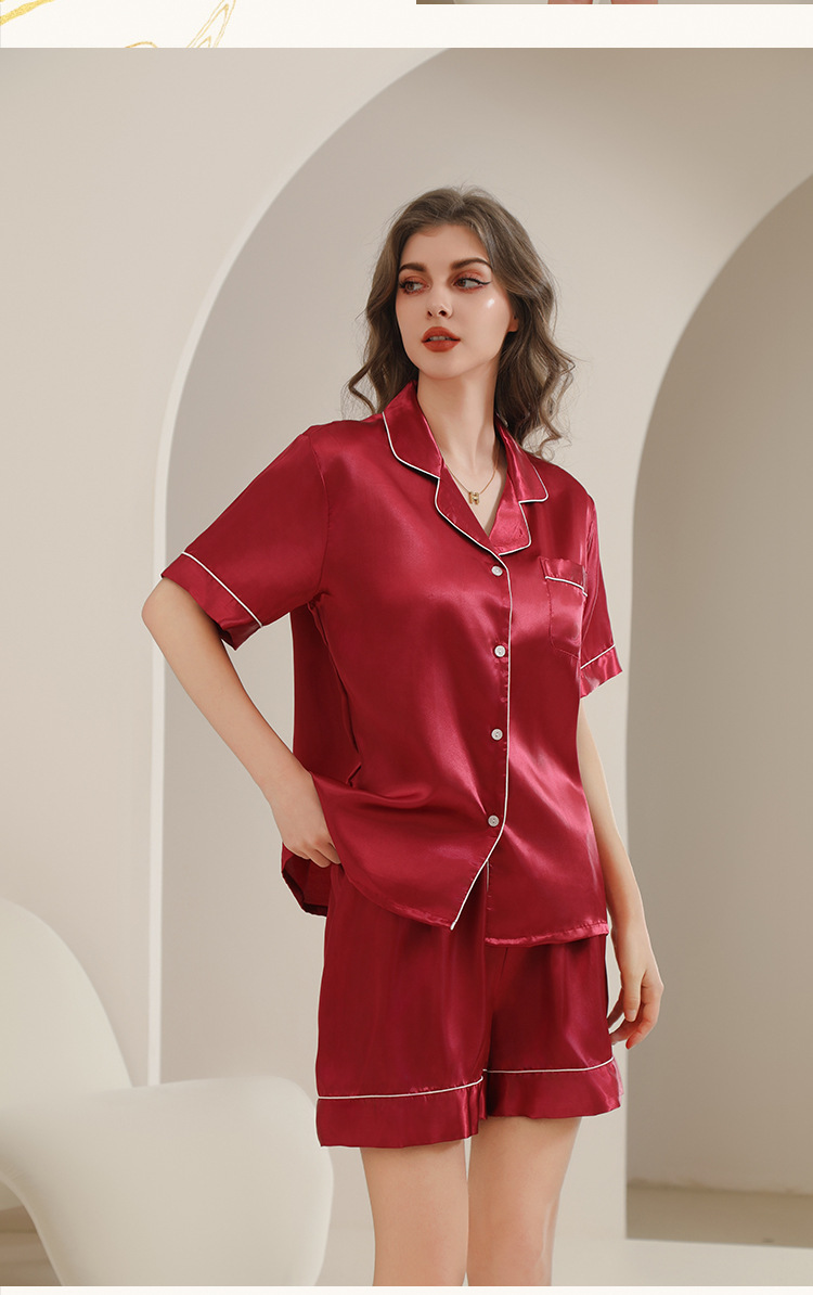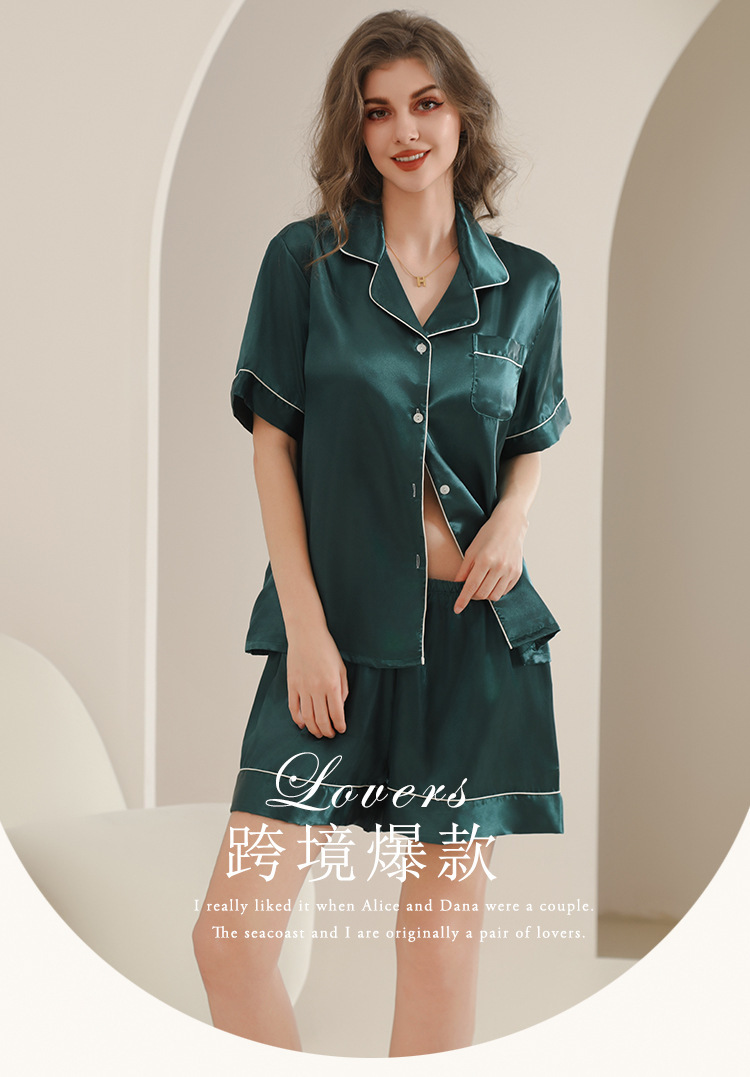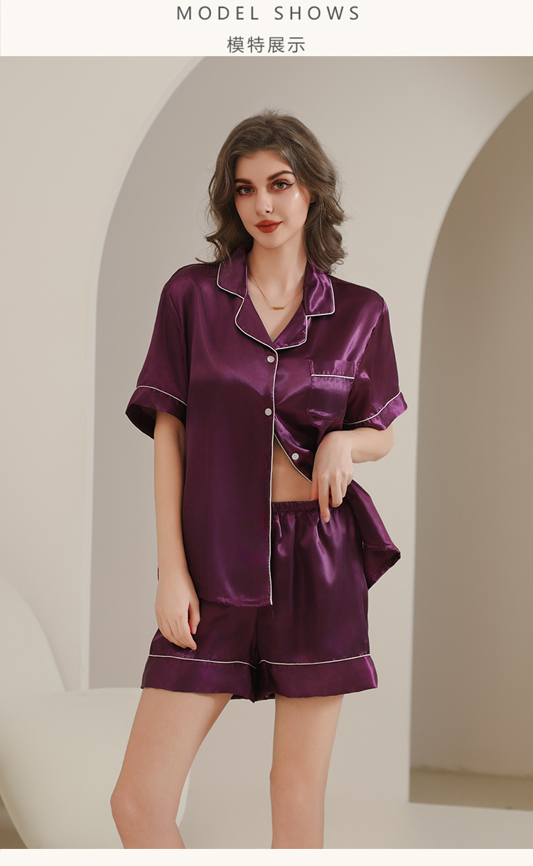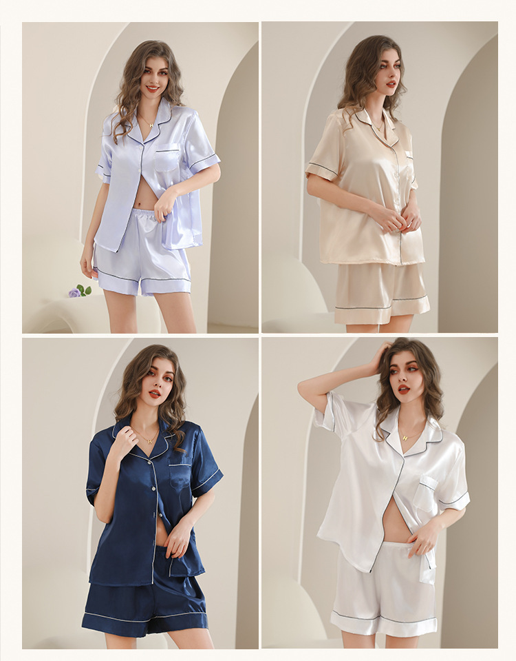 아마존 대외 무역 국경 단색 실크 파자마 멀티 컬러 반팔 반바지 여름 착용 홈 의류 세트
