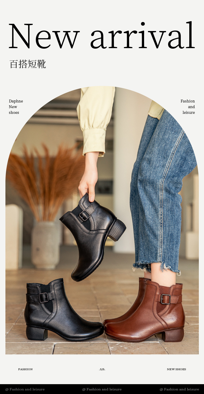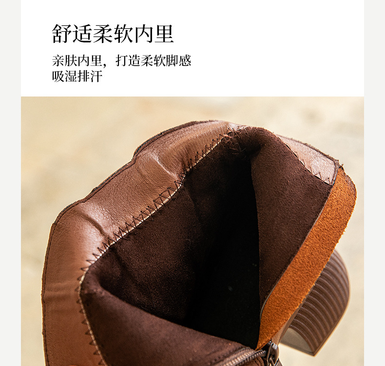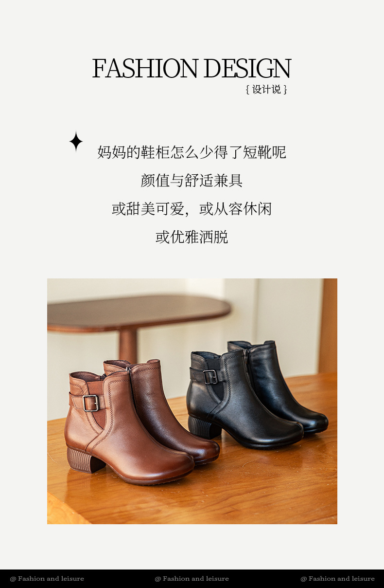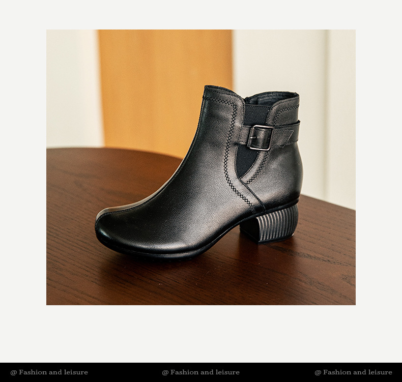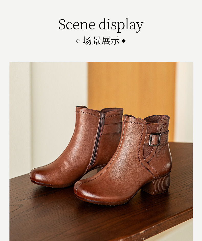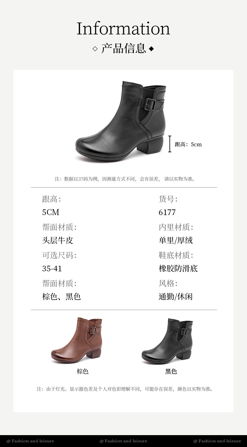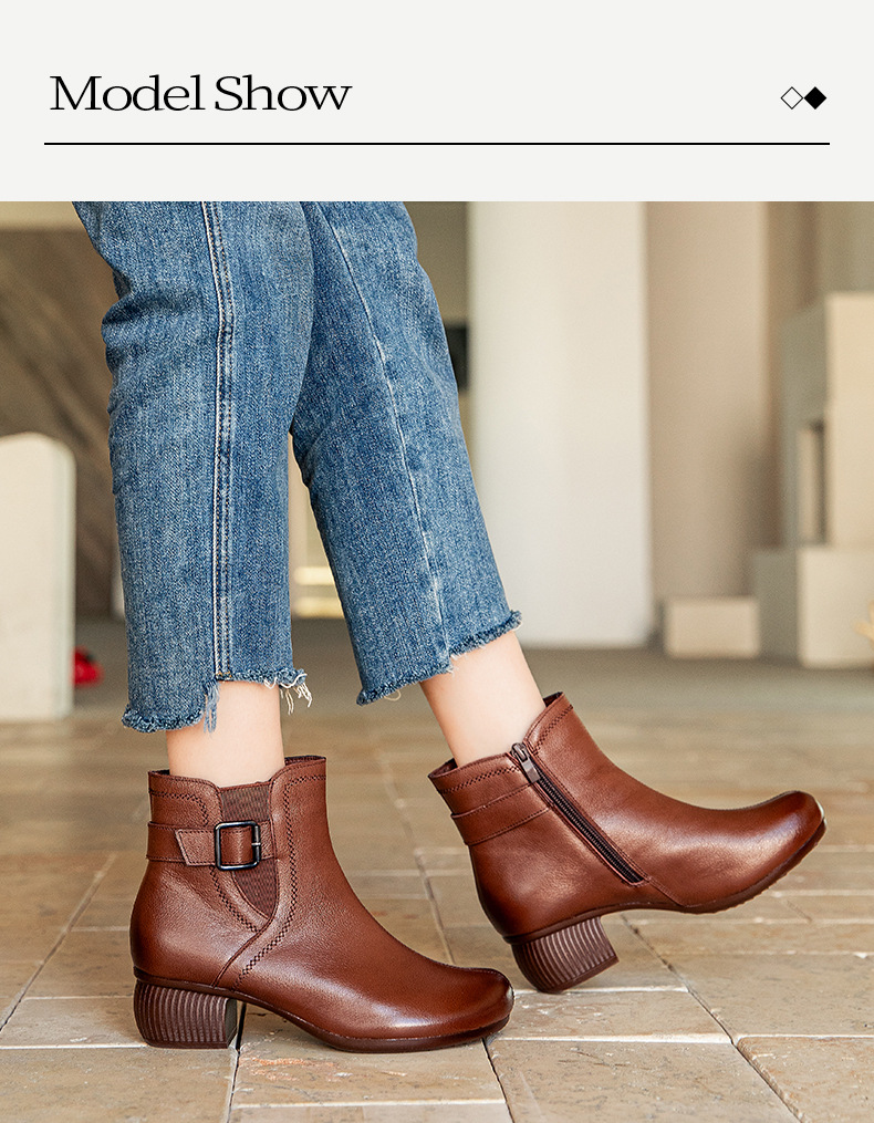 가을과 겨울 새로운 첫 번째 레이어 Cowhide 빈티지 발목 부츠 여성용 소프트 솔 중간 두께의 뒤꿈치 우아한 사이드 버클 올 매치 어머니 마틴 부츠 여성