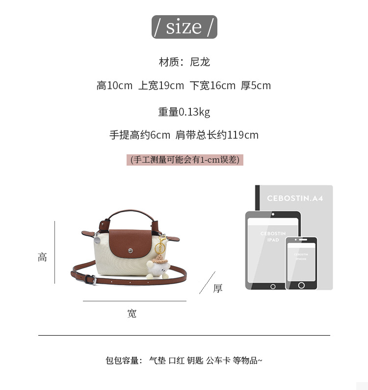 여성을위한 크로스 바디 만두 가방 2025 새로운 가을 하이 엔드 경량 캐주얼 나일론 천 미니 휴대 전화 가방 동전 지갑