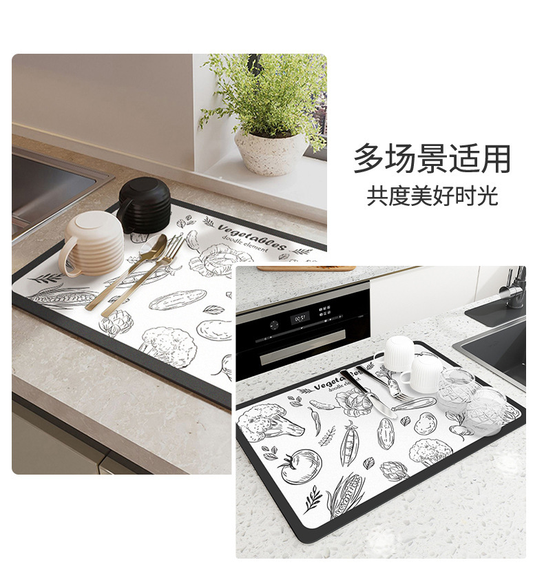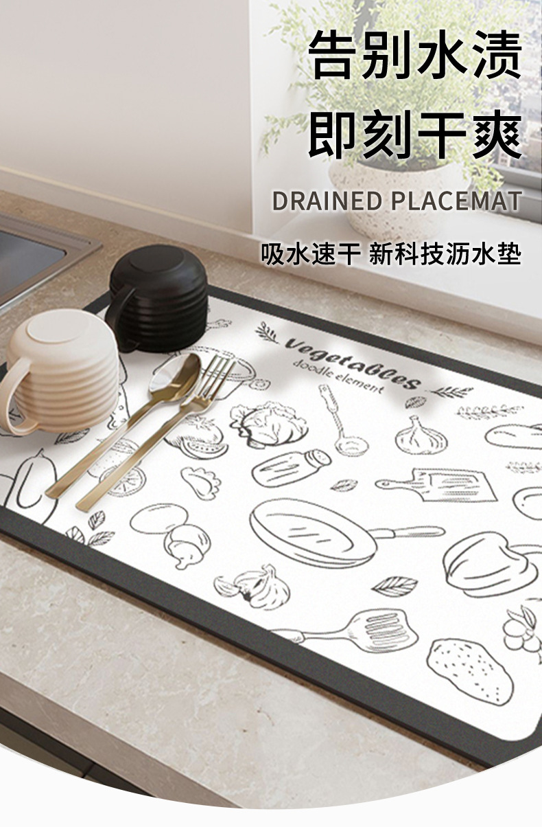 주방 조리대 흡수성 매트 부드러운 Diatom 진흙 건조 매트 데스크탑 식기 건조 매트 코트 코스터 워시 프리 테이블 매트 바 매트