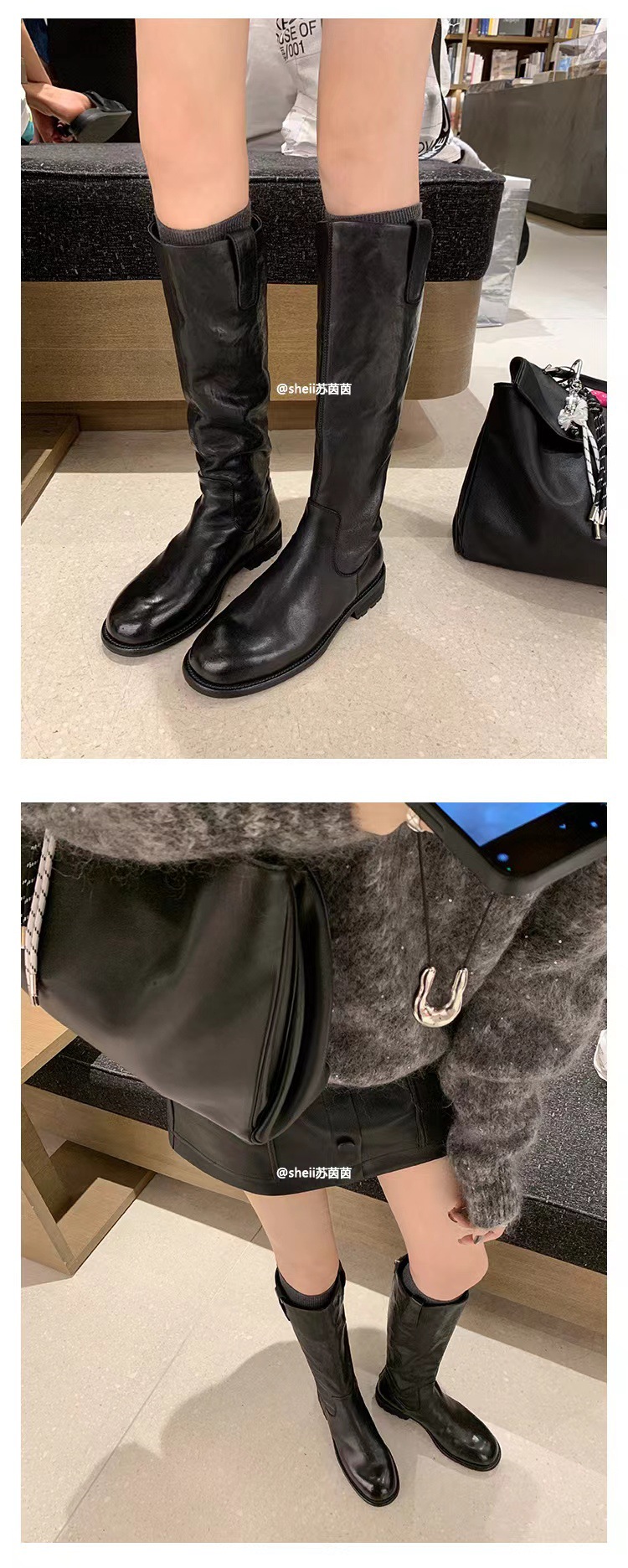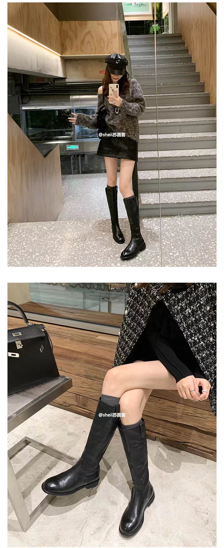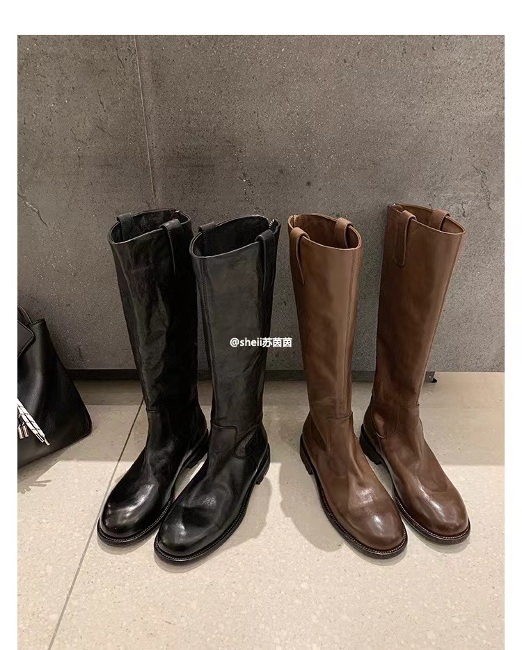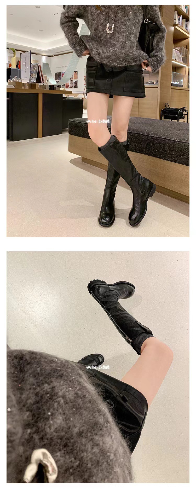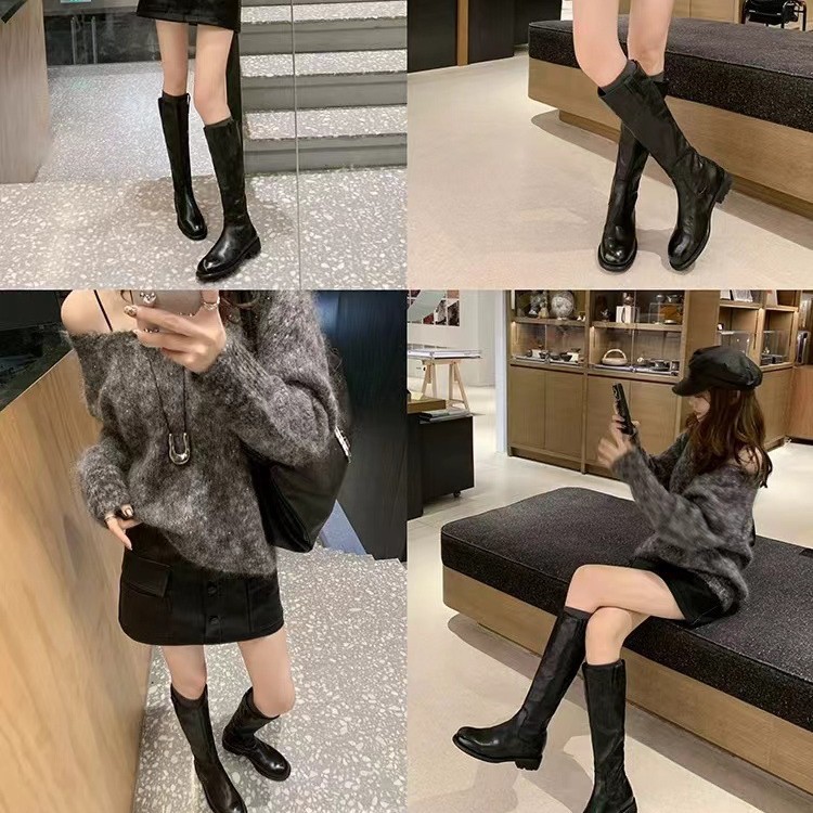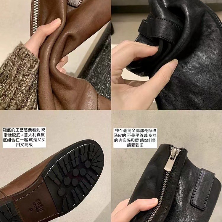 2025년 신상 스타일리시한 패턴의 말가죽 뒷지퍼 중간 높이 부츠 여성용 무릎 위까지 오는 나이트 부츠 패션 부츠