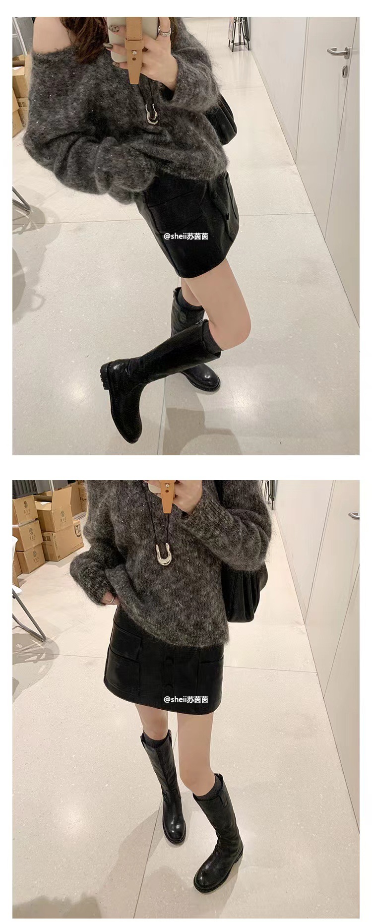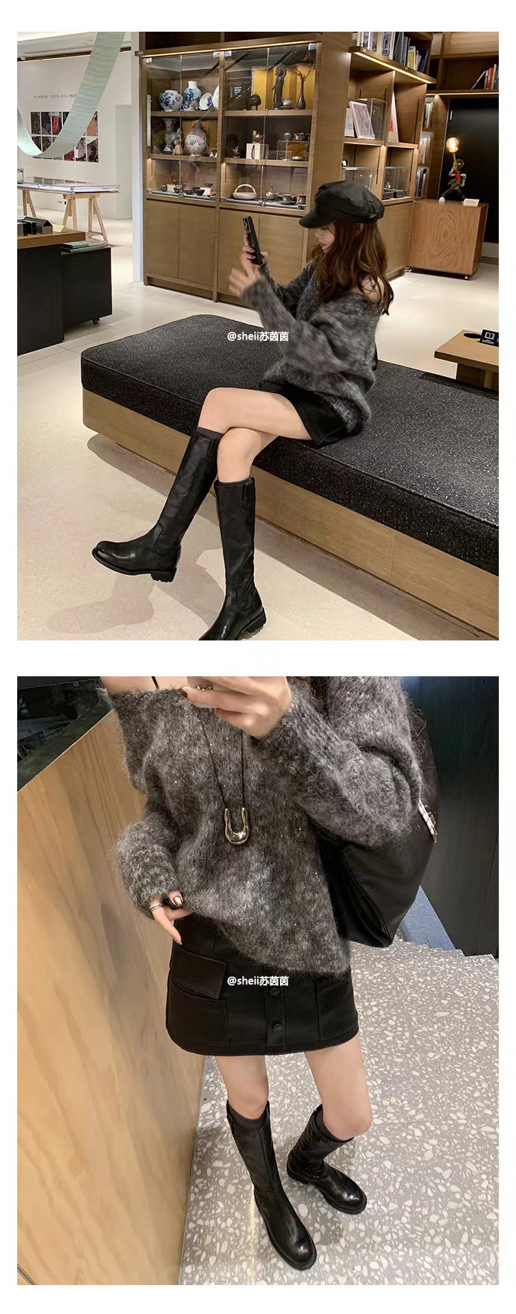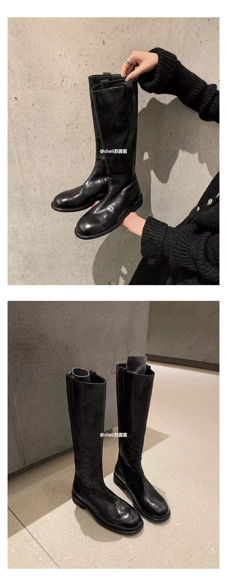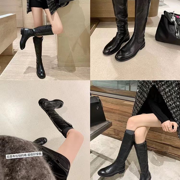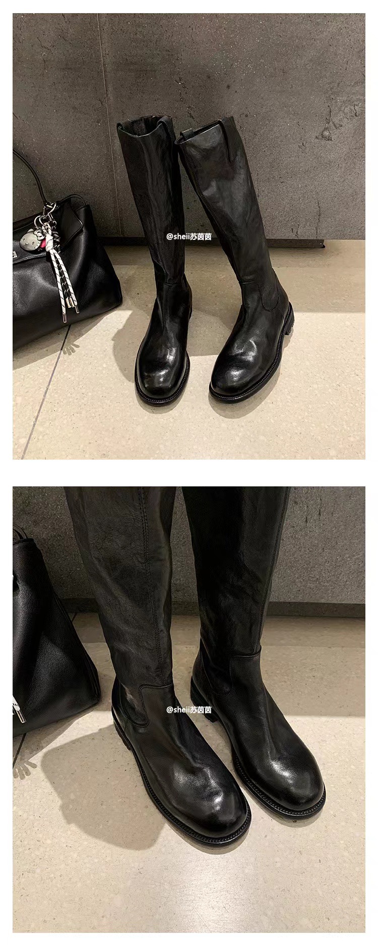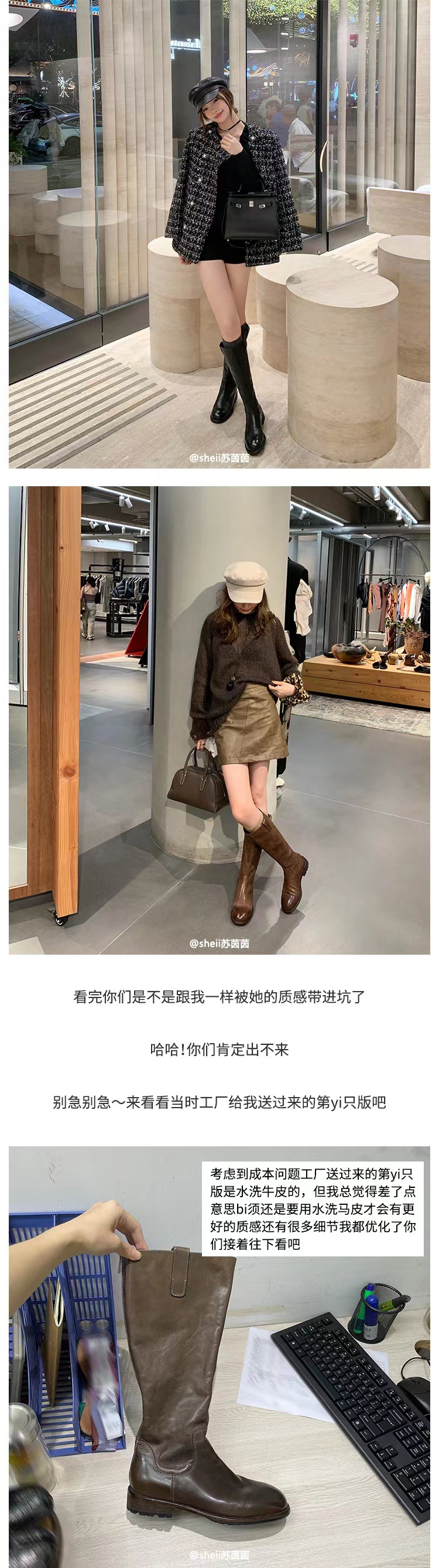 2025년 신상 스타일리시한 패턴의 말가죽 뒷지퍼 중간 높이 부츠 여성용 무릎 위까지 오는 나이트 부츠 패션 부츠
