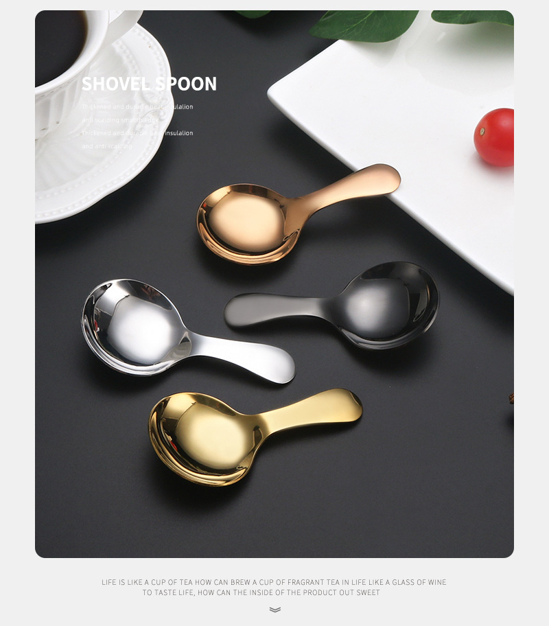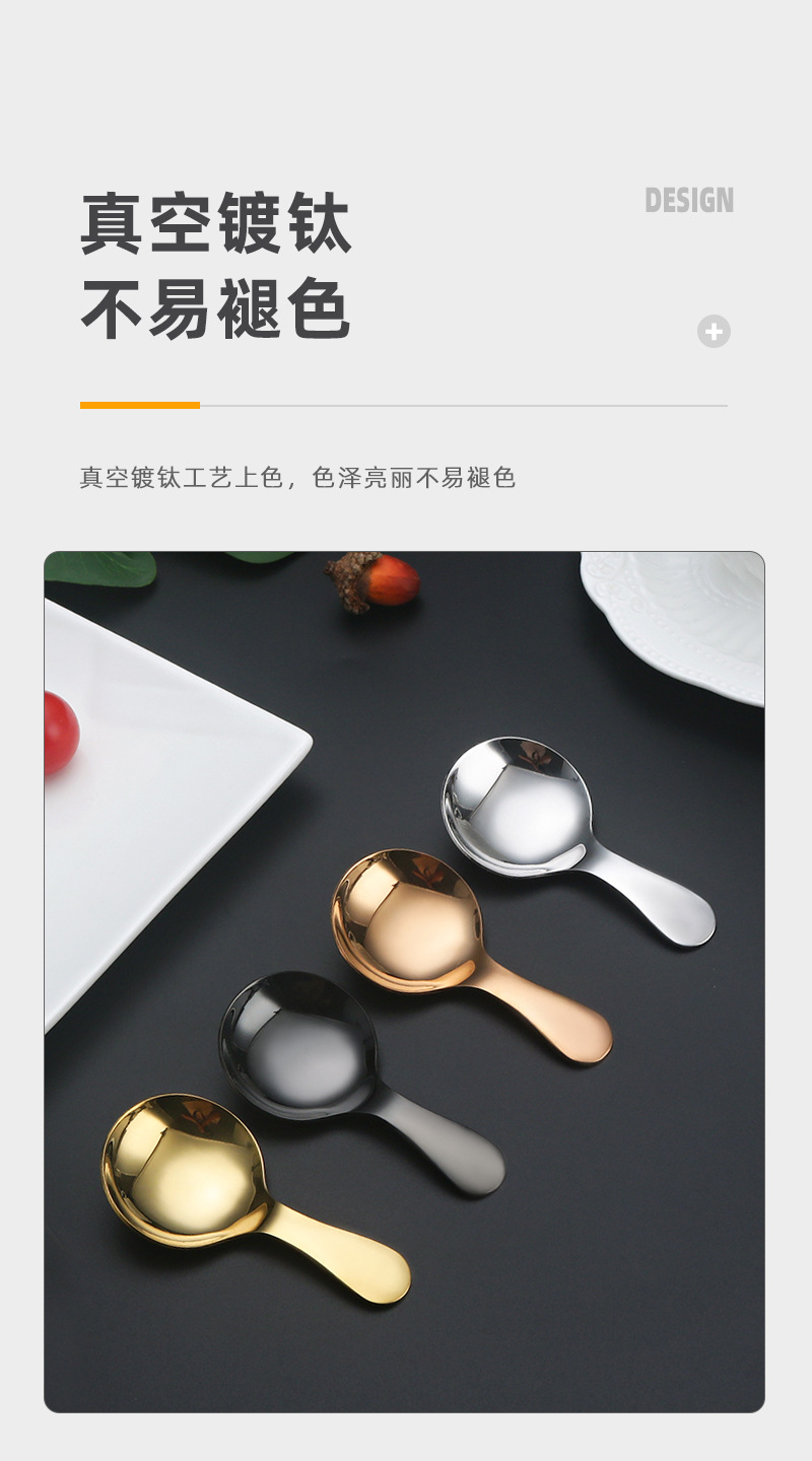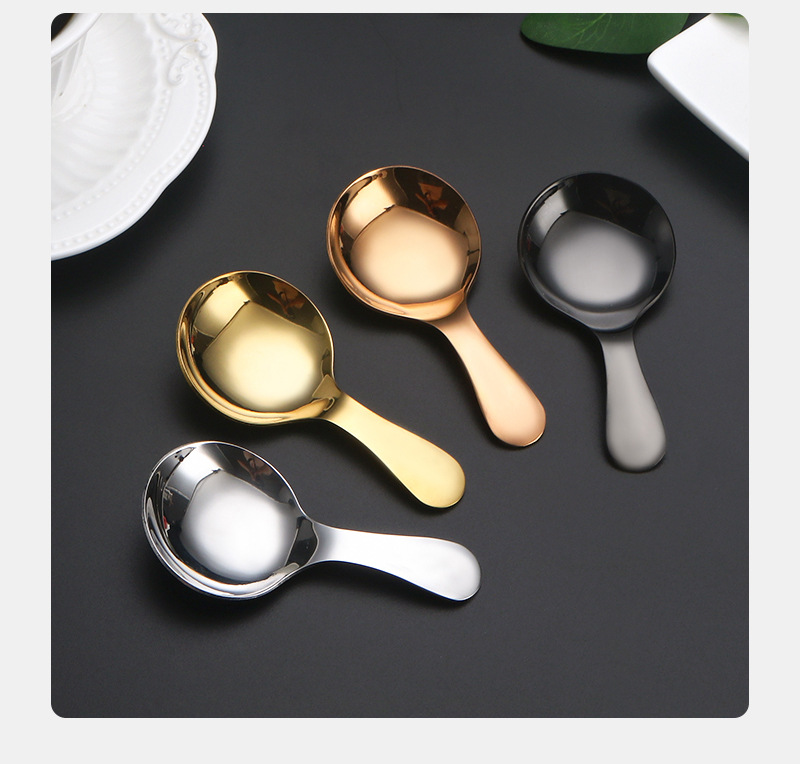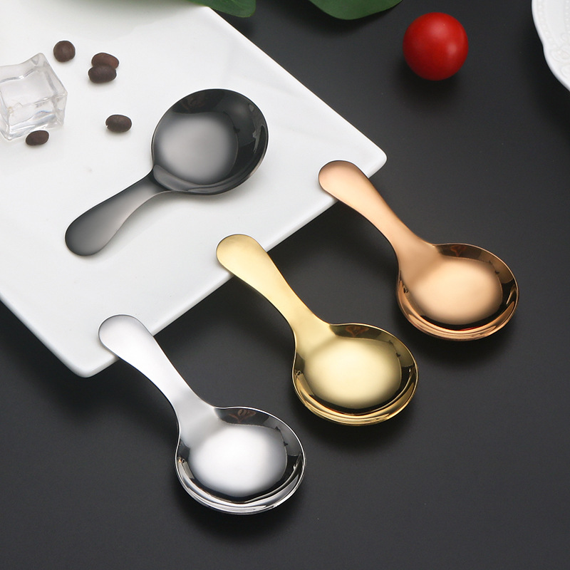 스테인리스 짧은 손잡이 작은 둥근 숟가락 차 숟가락 커피 숟가락 창조적 인 디저트 아이스크림 숟가락 어린이 숟가락 숟가락 숟가락 숟가락 측정 숟가락