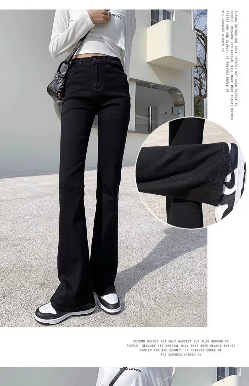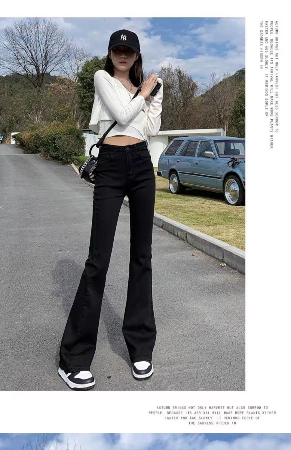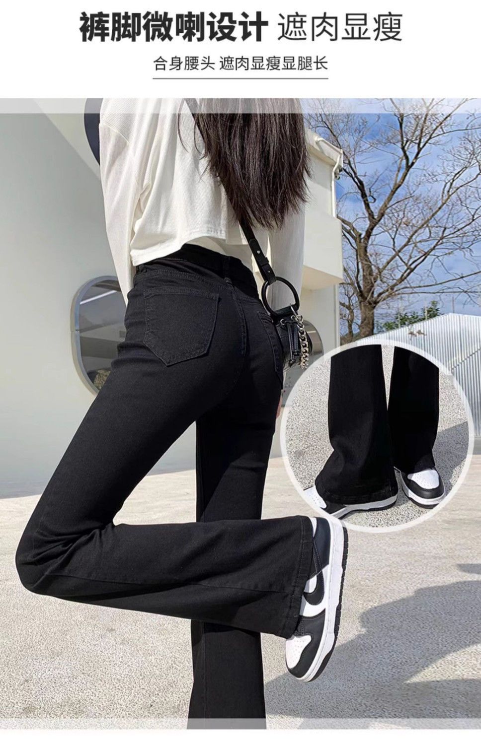 미국 마이크로 라 청바지 여성의 가을 2024 새로운 기모 검은 이른 가을 여성의 슬리밍 높은 허리 뿔 바지