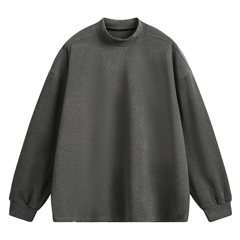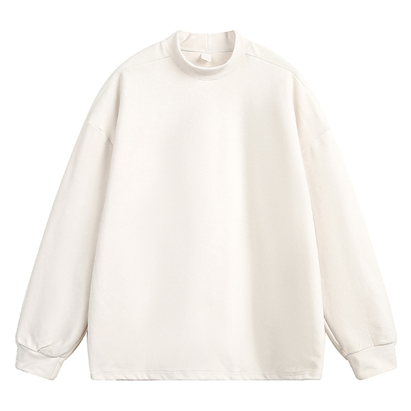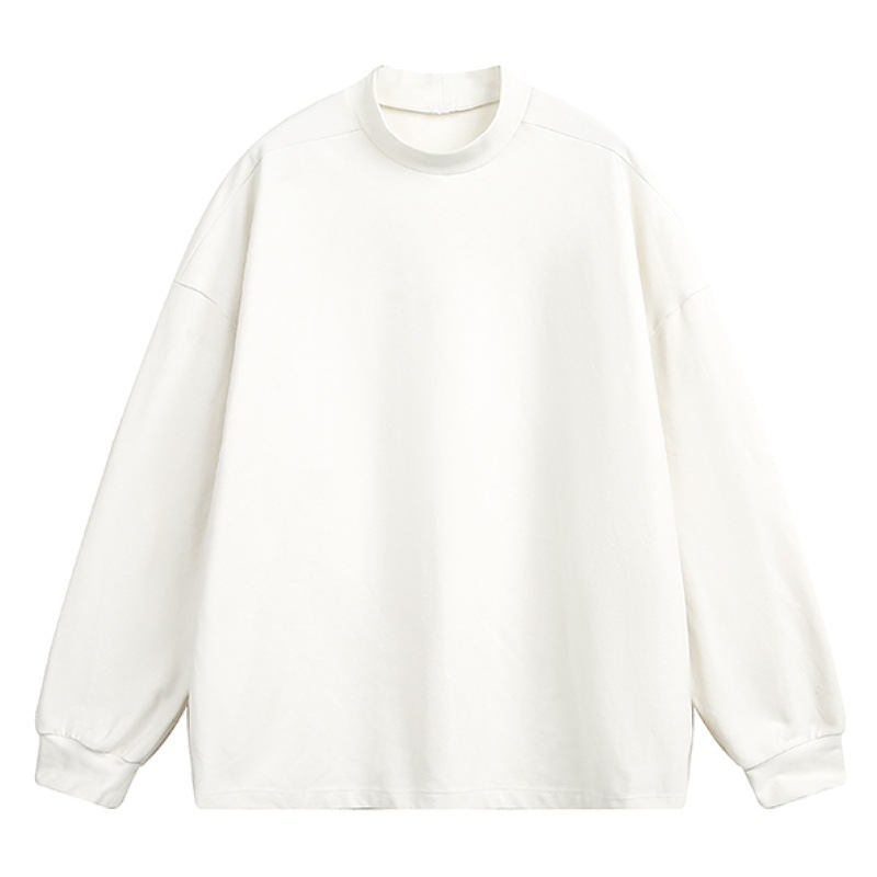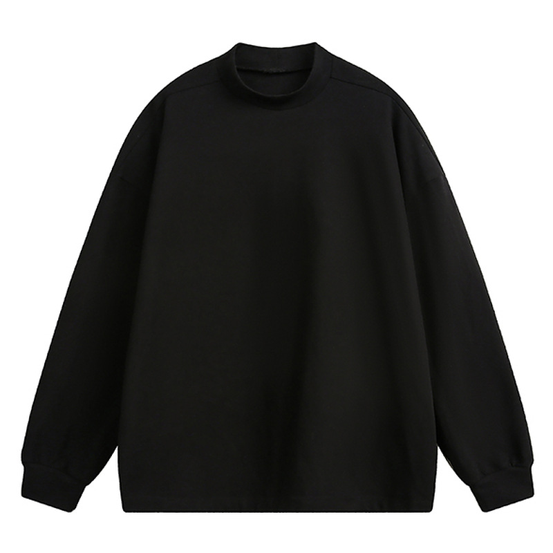 무거운 작은 목 긴 소매 티셔츠 남자의 느슨한 반 높은 목 스웨터 봄과 가을 2024 새로운 커플베이스 셔츠 단색 T