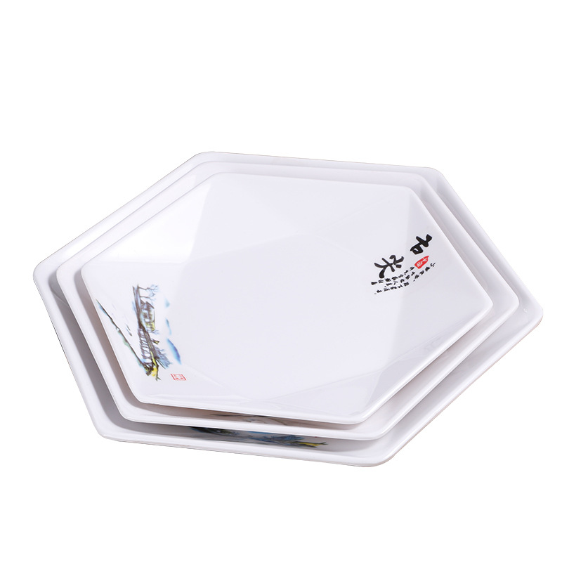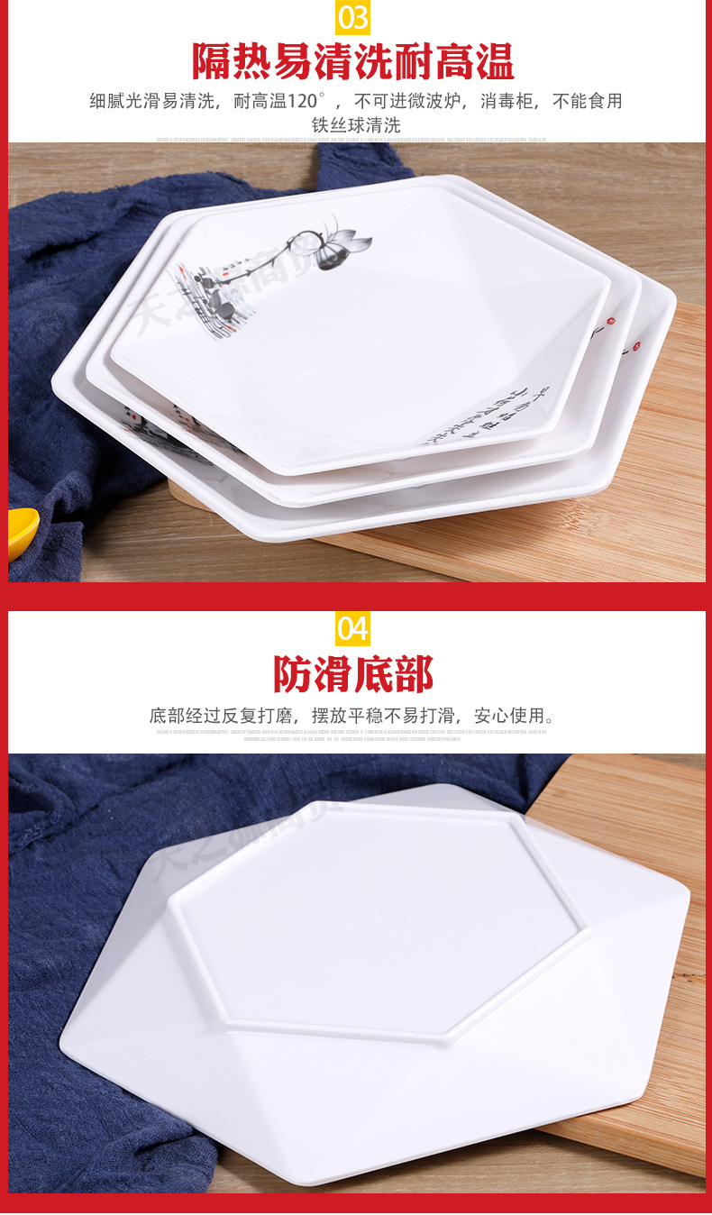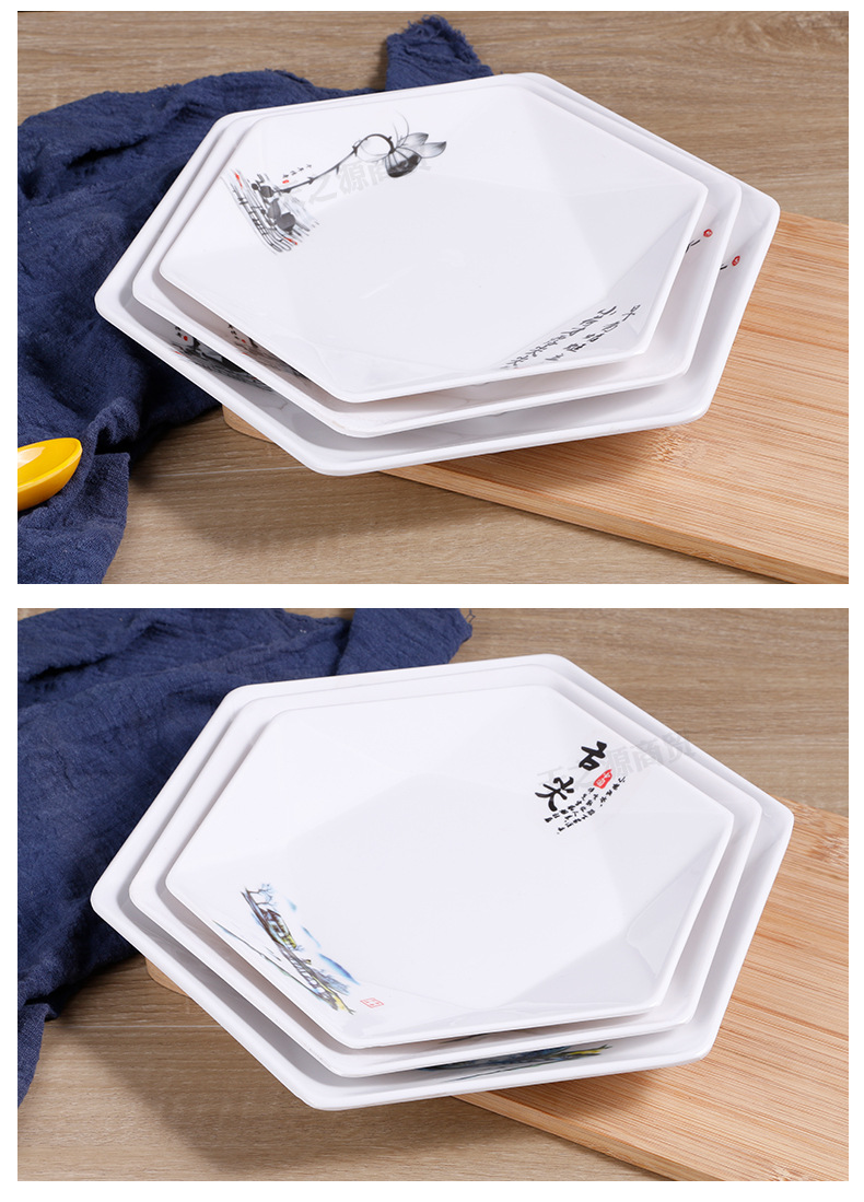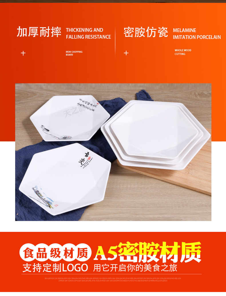 멜라민 모방 도자기 식기 육각형 접시 상업 볶음 요리 레스토랑 반찬 차가운 요리 호텔 플래터
