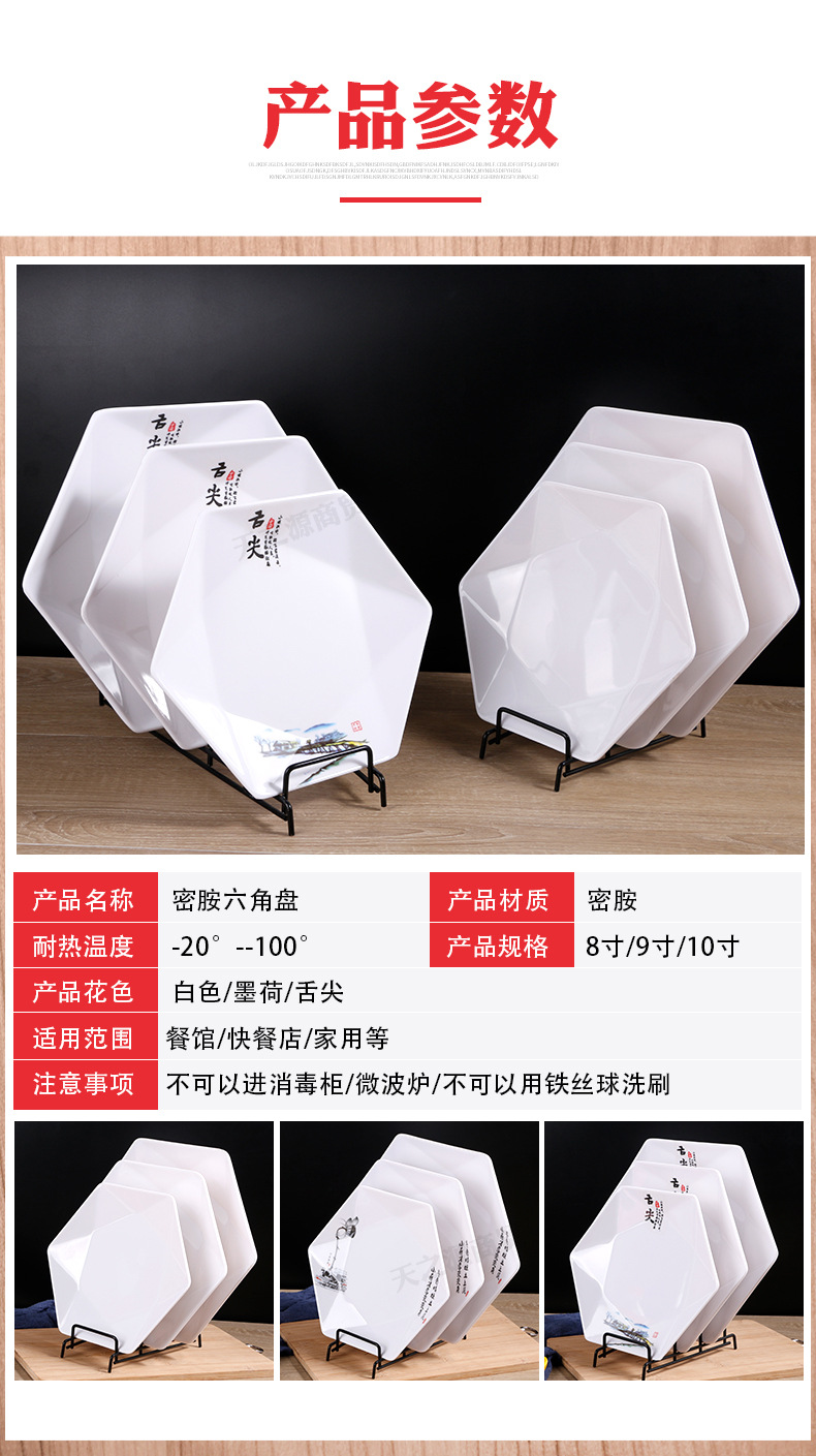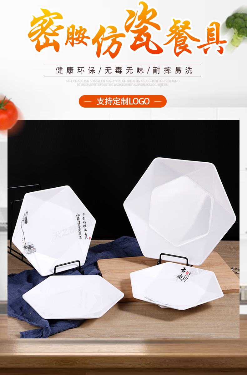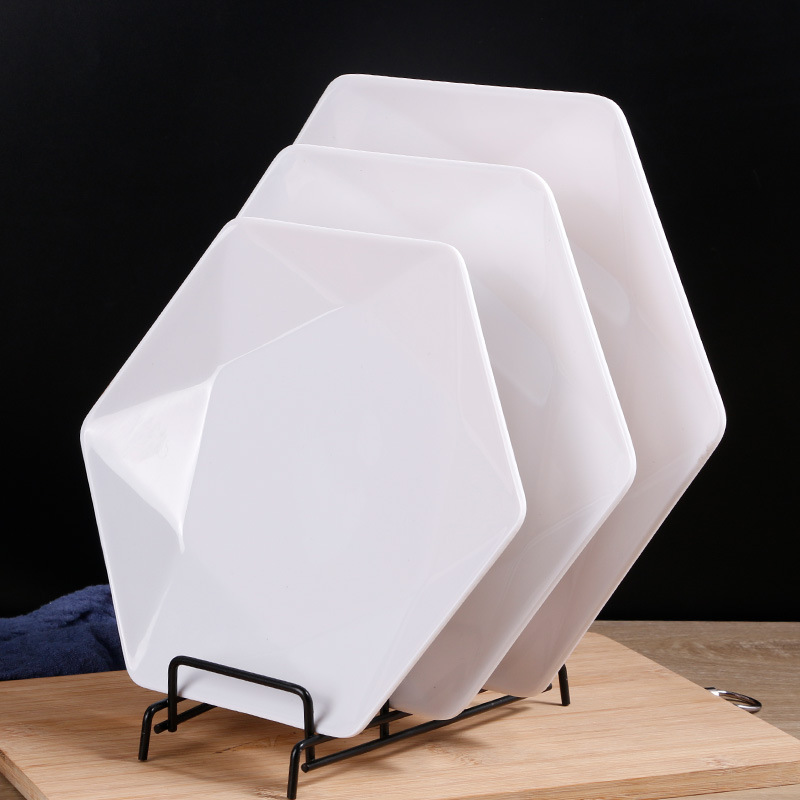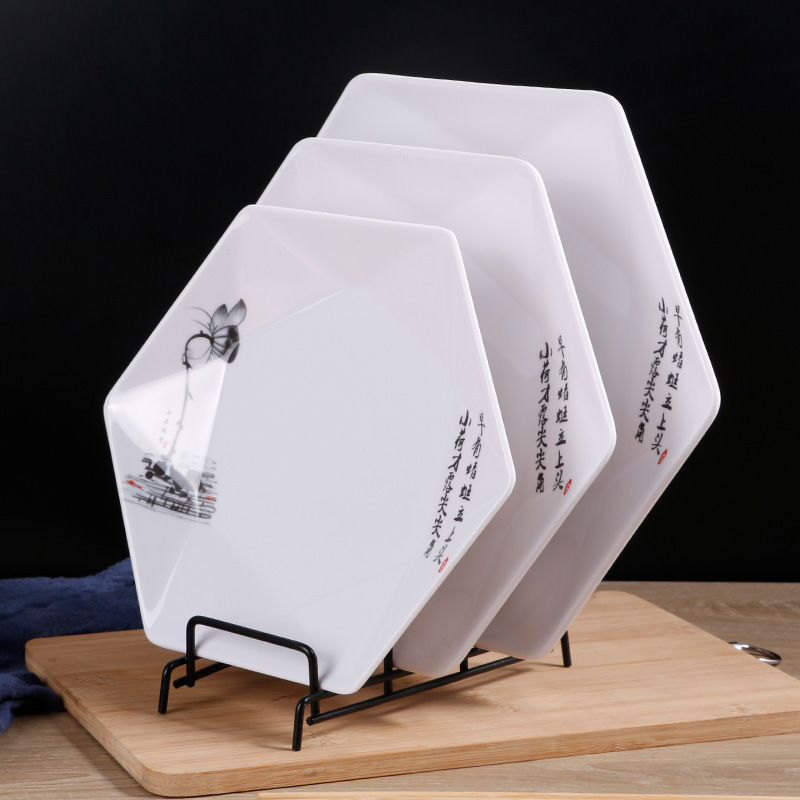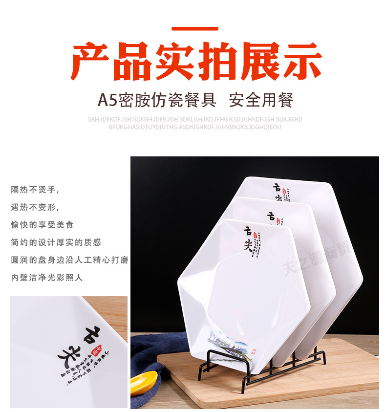 멜라민 모방 도자기 식기 육각형 접시 상업 볶음 요리 레스토랑 반찬 차가운 요리 호텔 플래터
