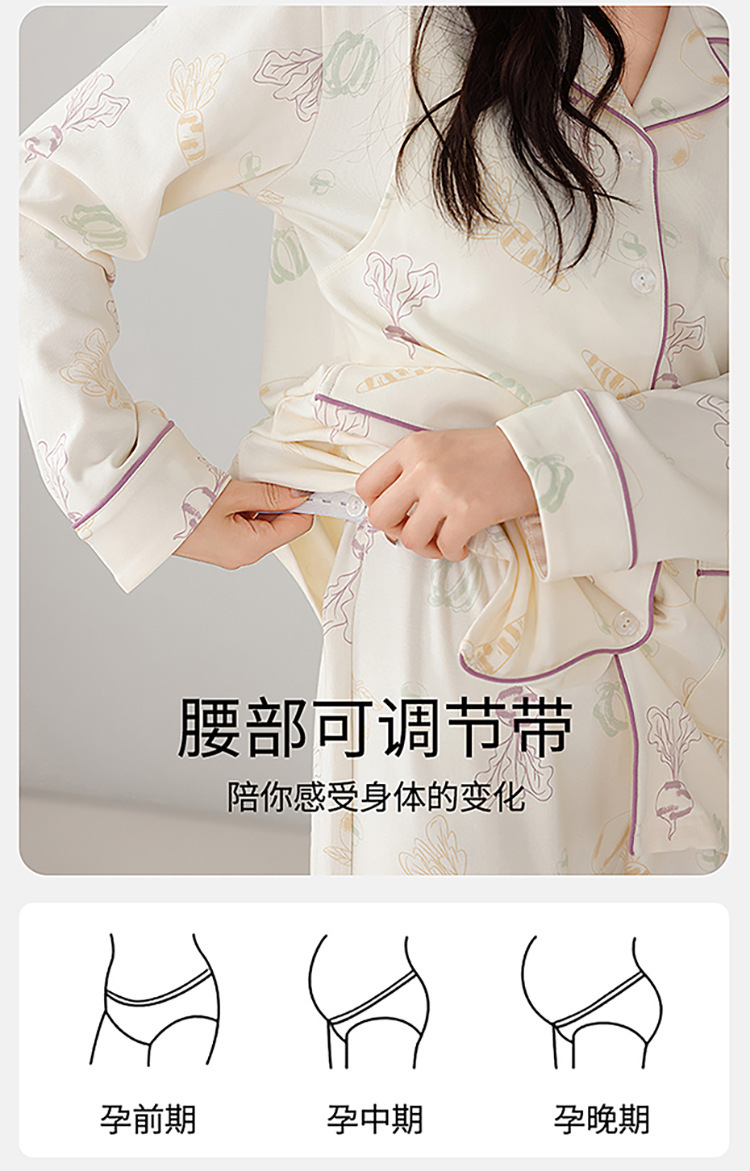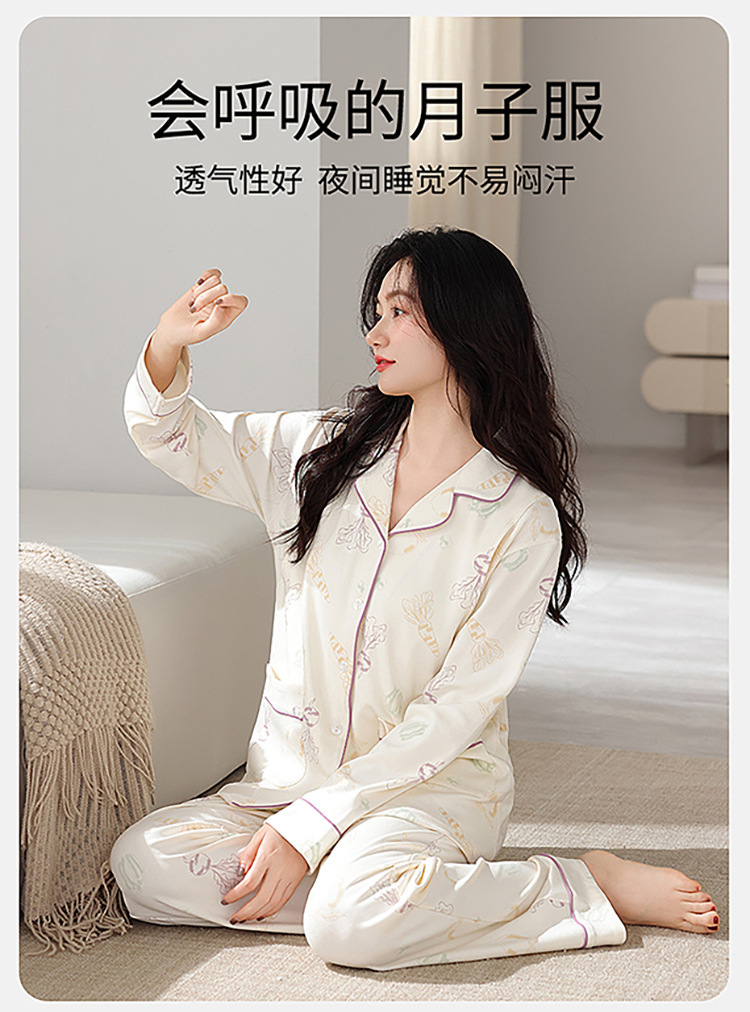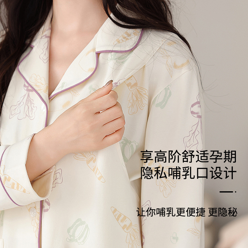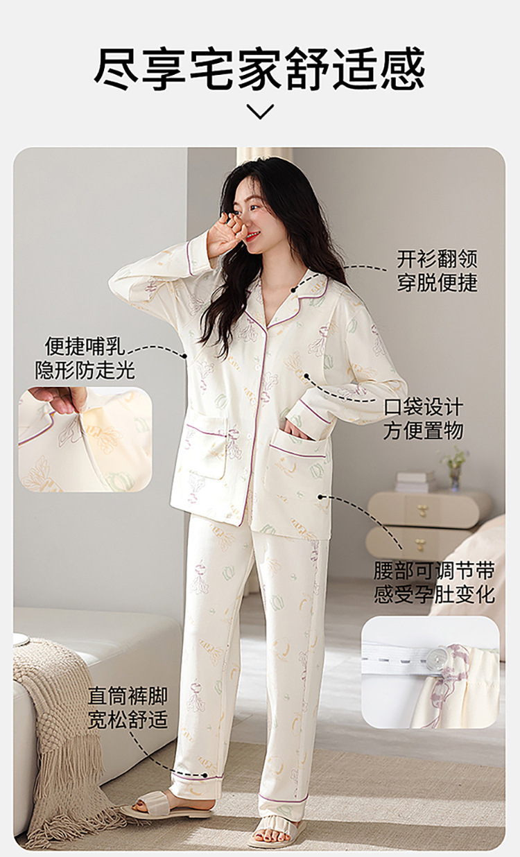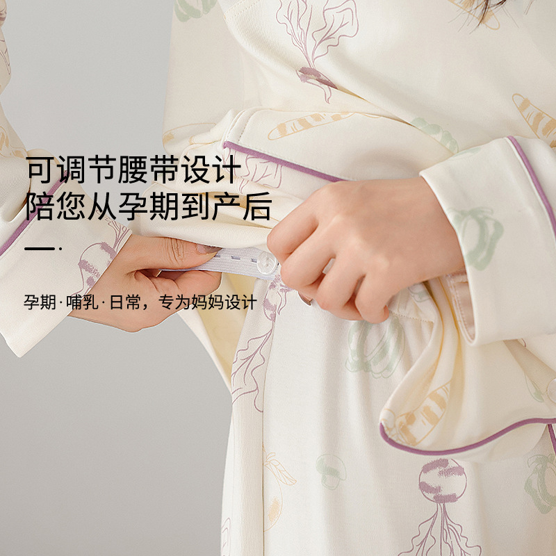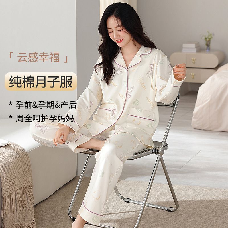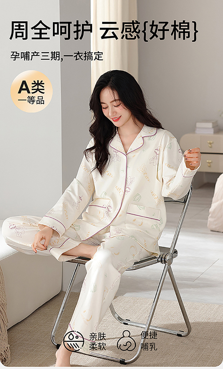 가을과 겨울 순면 루나 카디건 옷깃 산전 및 산후 측면 개방 간호 임산부 파자마 면 홈 세트