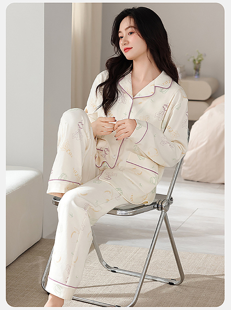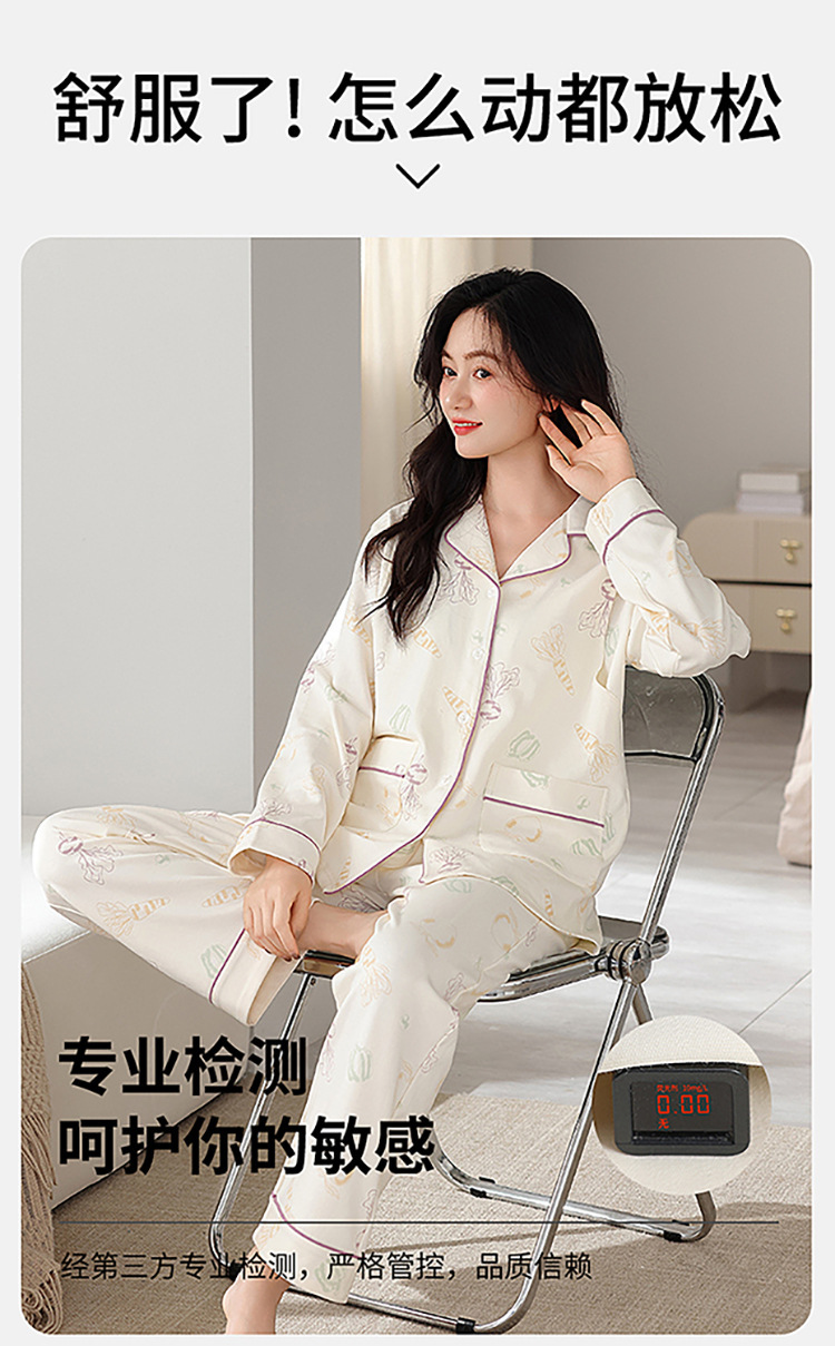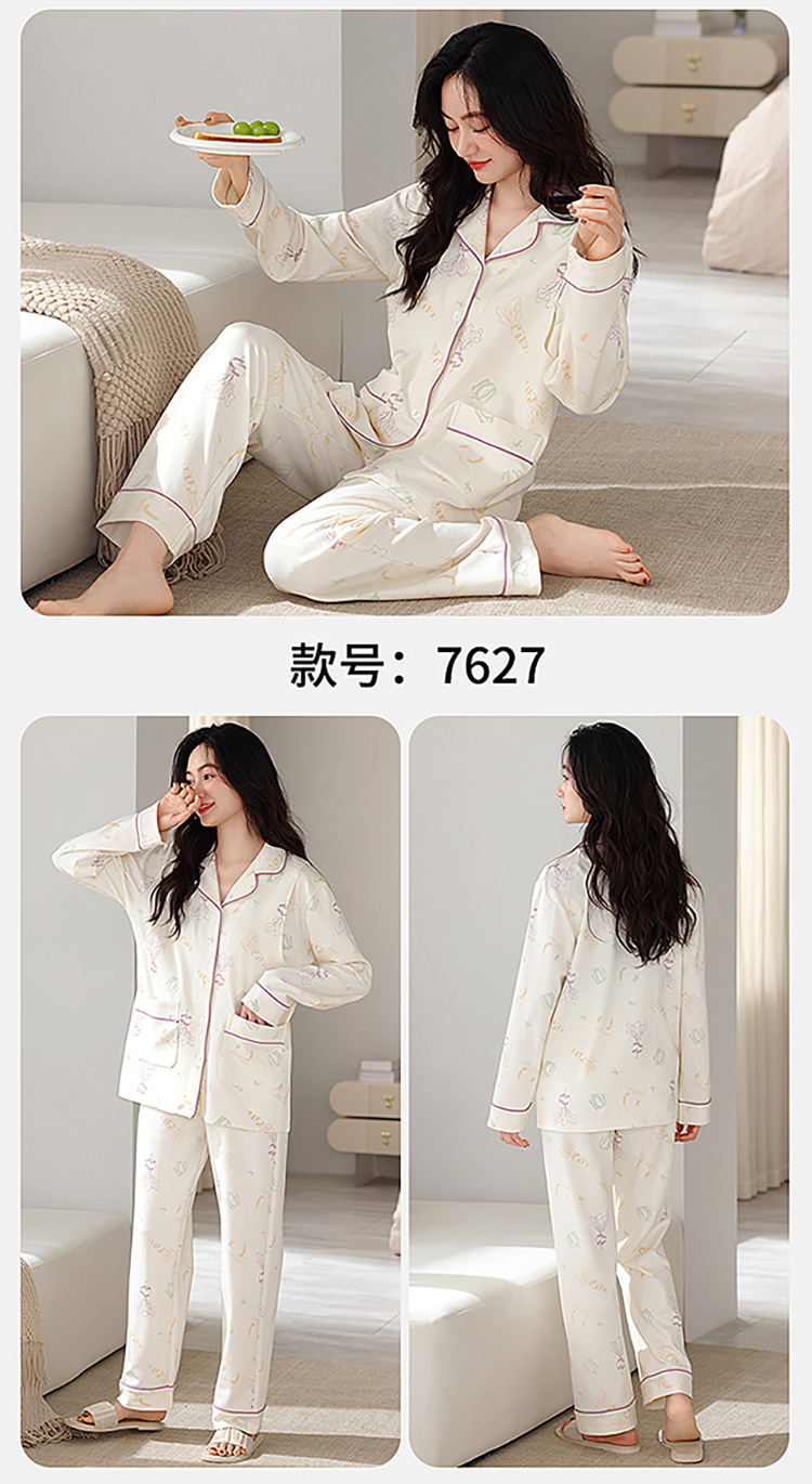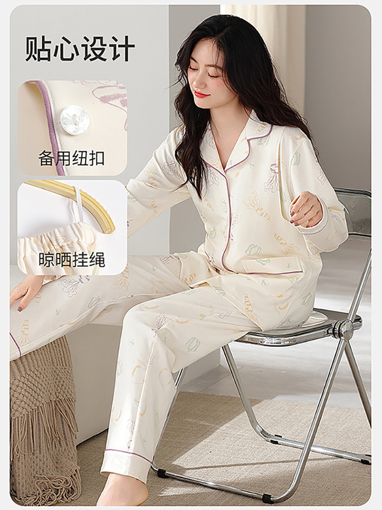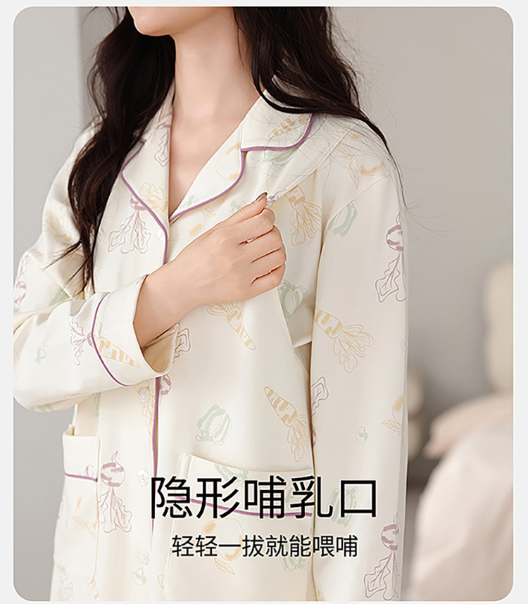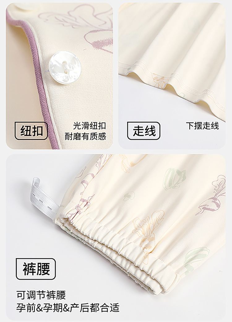 가을과 겨울 순면 루나 카디건 옷깃 산전 및 산후 측면 개방 간호 임산부 파자마 면 홈 세트