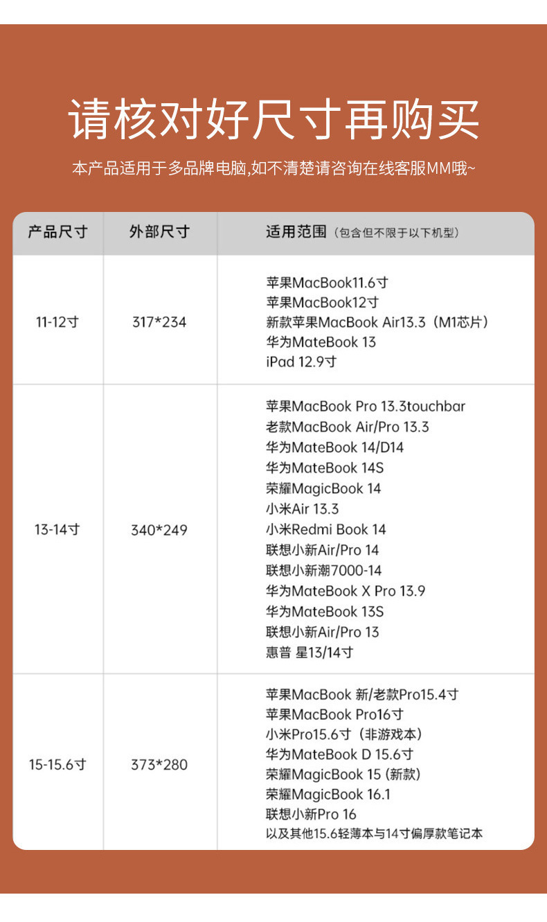 【产品规格】13/14寸=34.5CM*25.5CM,重160g