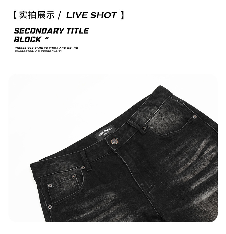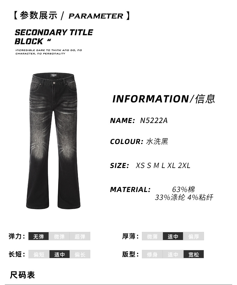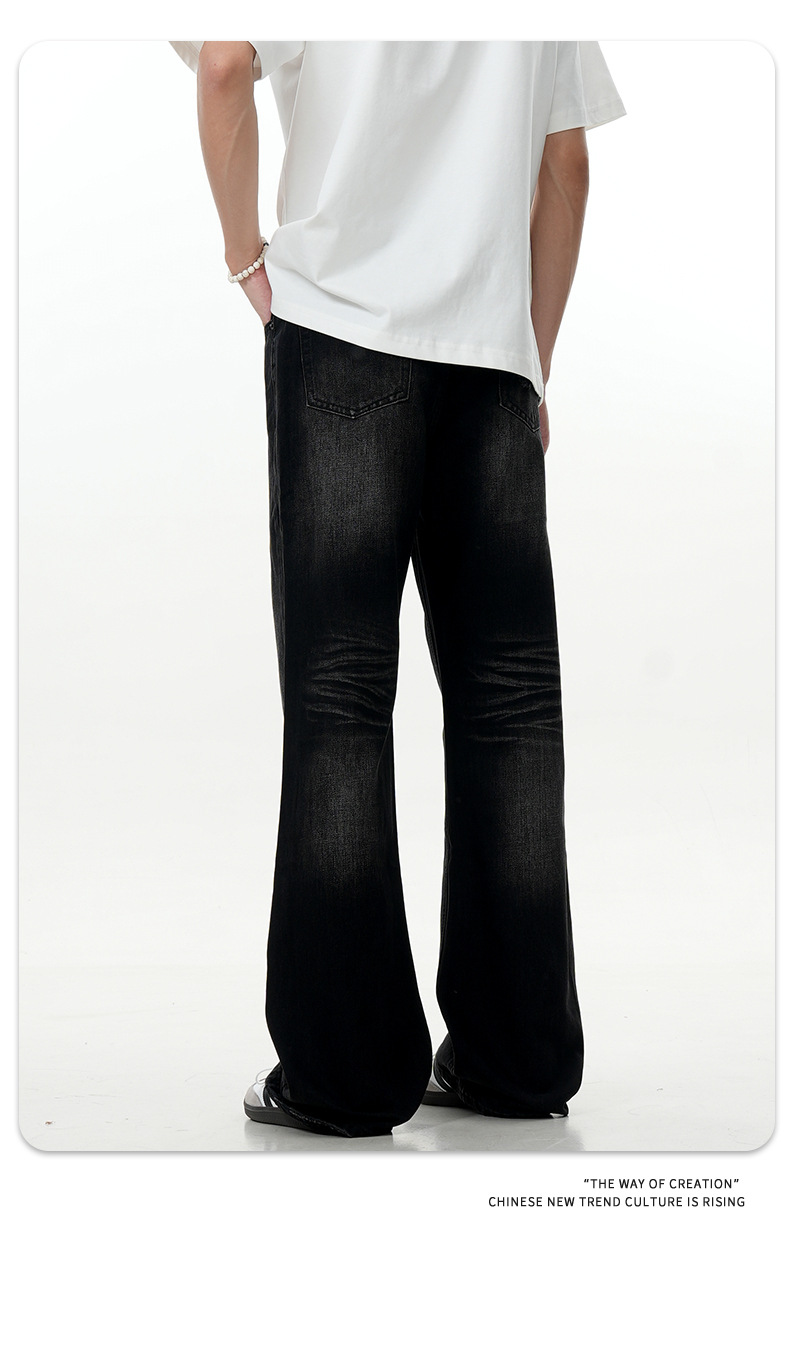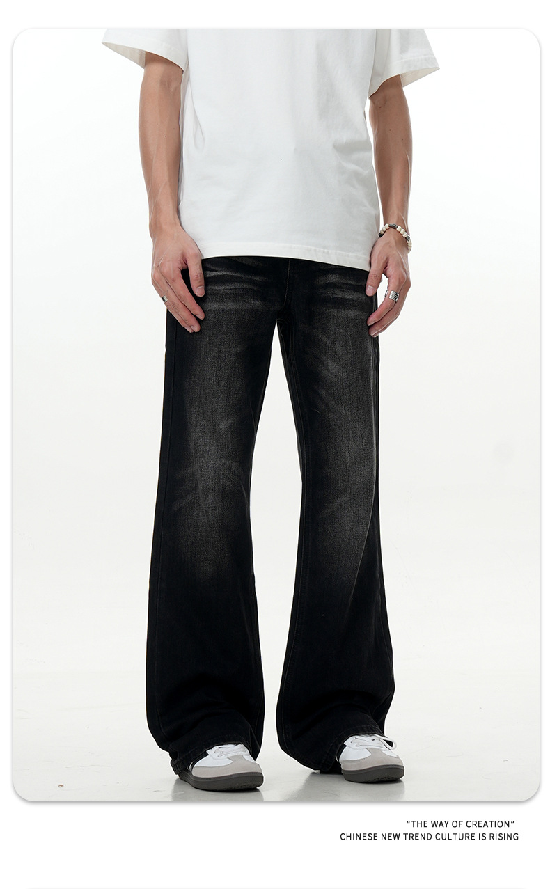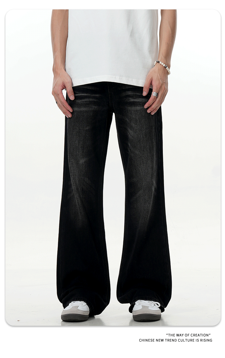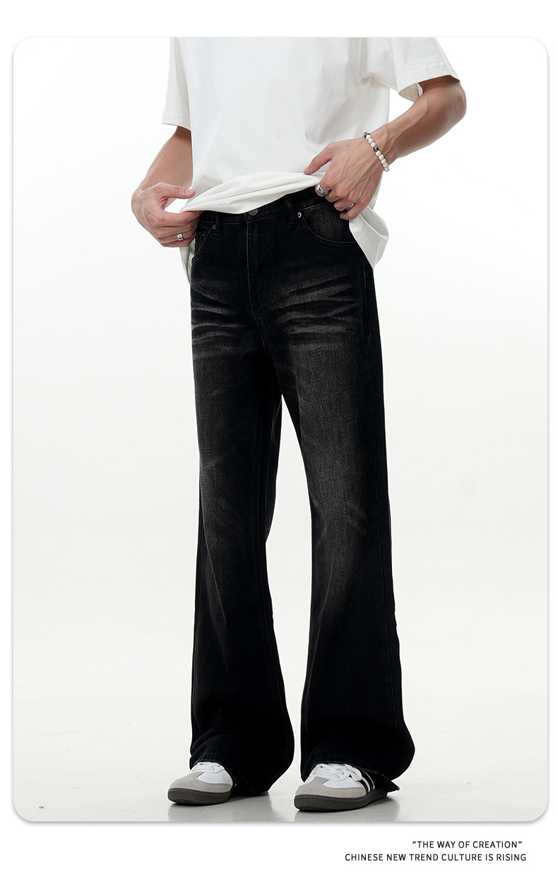 11KN American retro washed black high street cat whisker gradient jeans for men and women, loose and slightly flared pants, cross-border