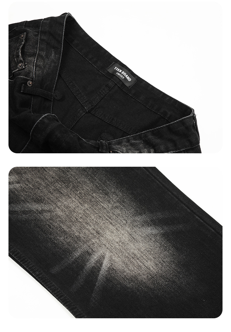 11KN Mỹ cổ điển nước rửa đen cao đường phố mèo râu dần dần thay đổi quần jean nam nữ đường phố rộng thùng thình hơi nước dài qua biên giới