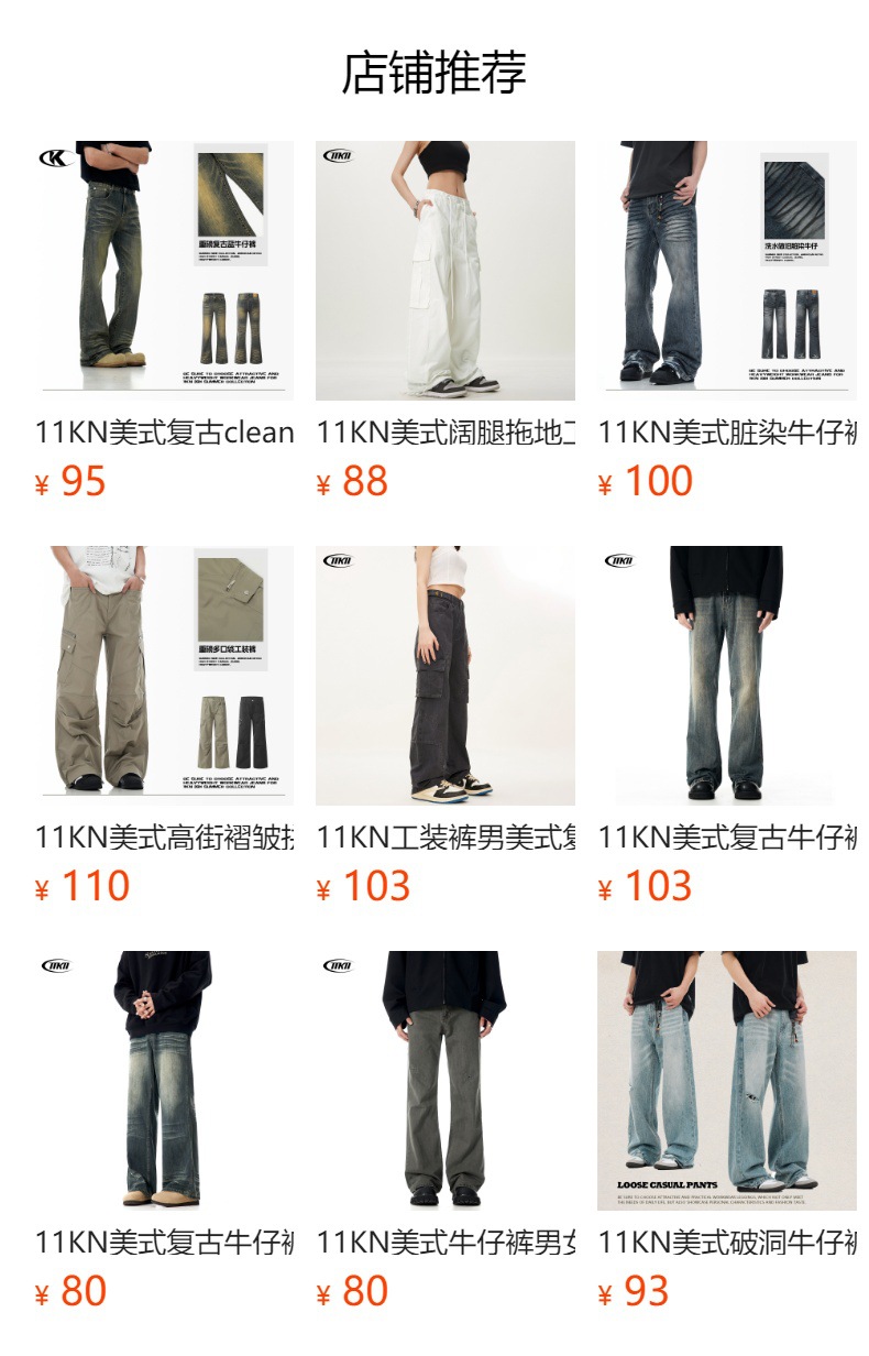 11 KNアメリカンレトロ水洗黒高街猫須グラデーションジーンズ男女街頭ゆったりマイクロラッパズボン国境を越える