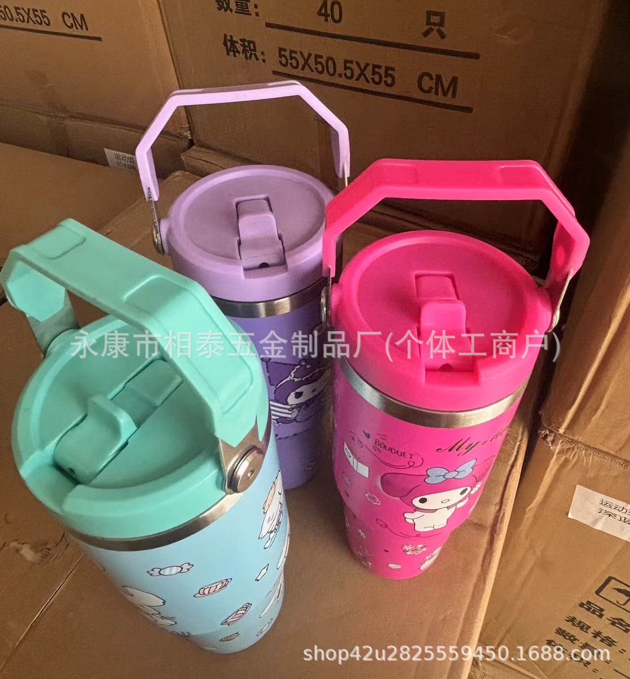 30oz 휴대용 자동차 컵 304 스테인레스 스틸 보온병 컵 휴대용 실리콘 뚜껑 밀짚 워터 컵 아이스 컵 성격