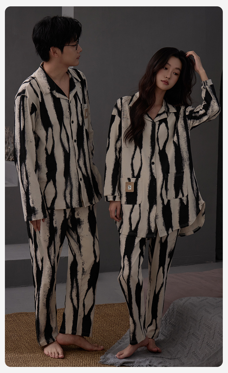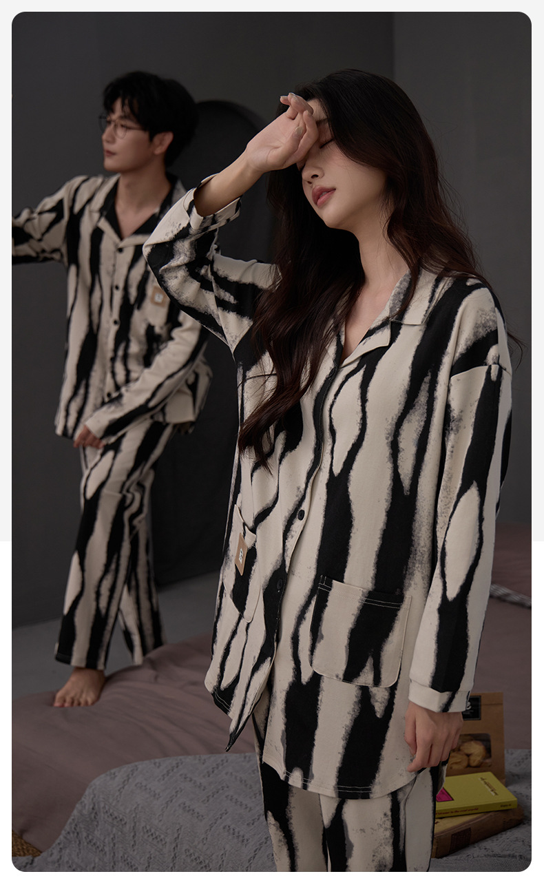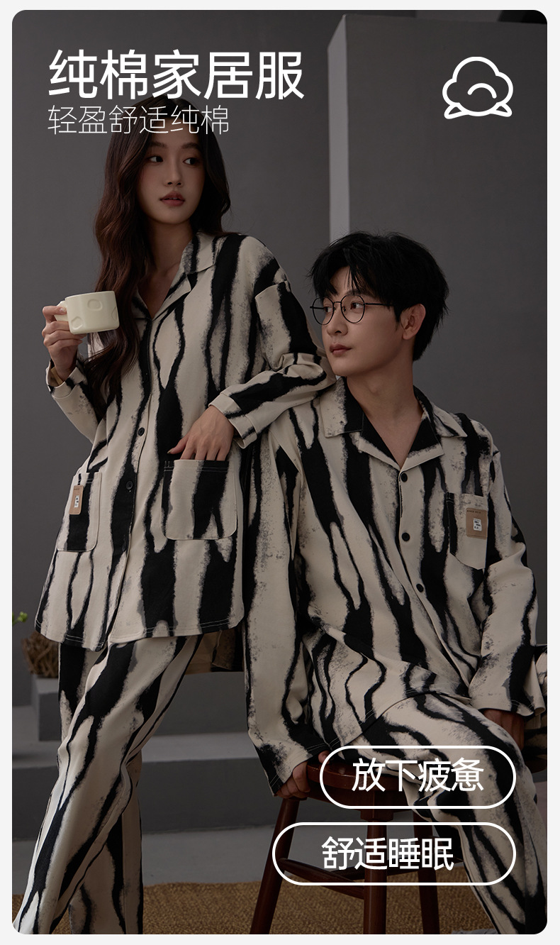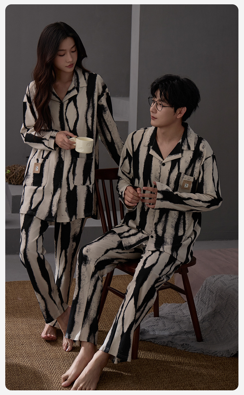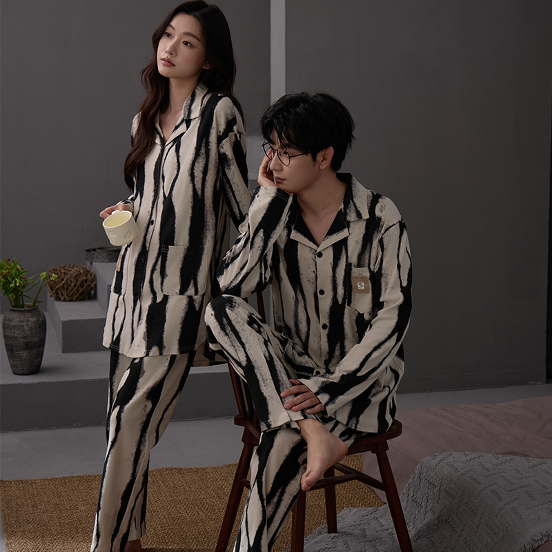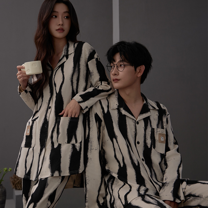 커플 잠옷 여성 면 카디건 긴 소매 세트 봄과 가을 패션 캐주얼 남성 느슨한 외부 가정 옷을 입고