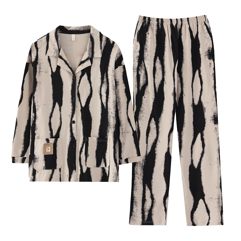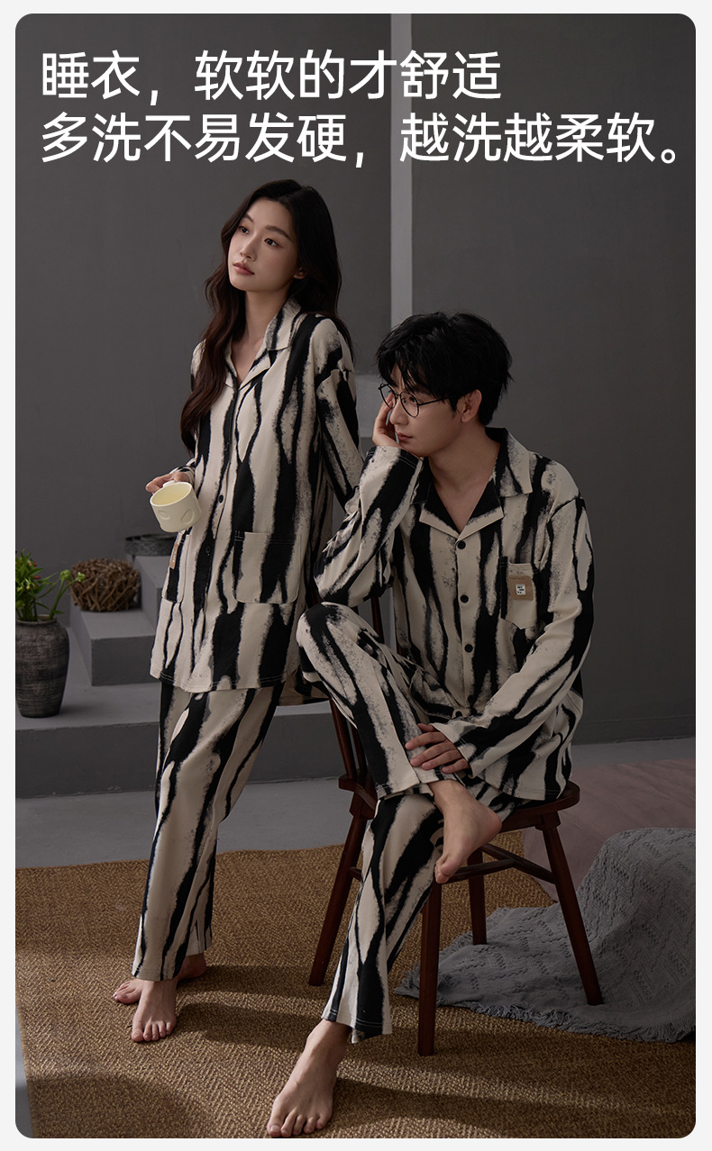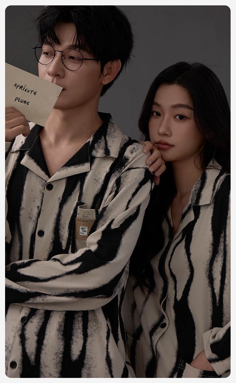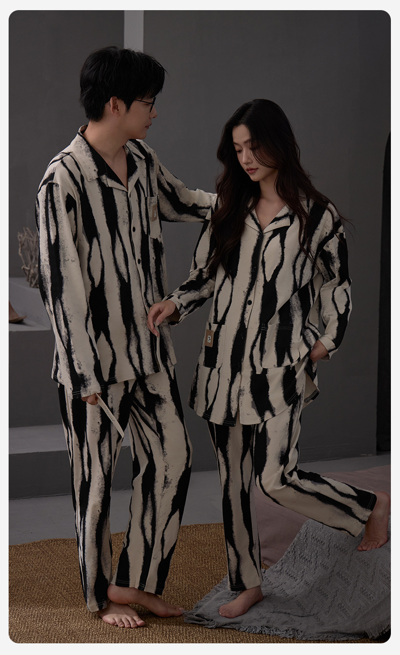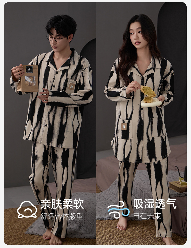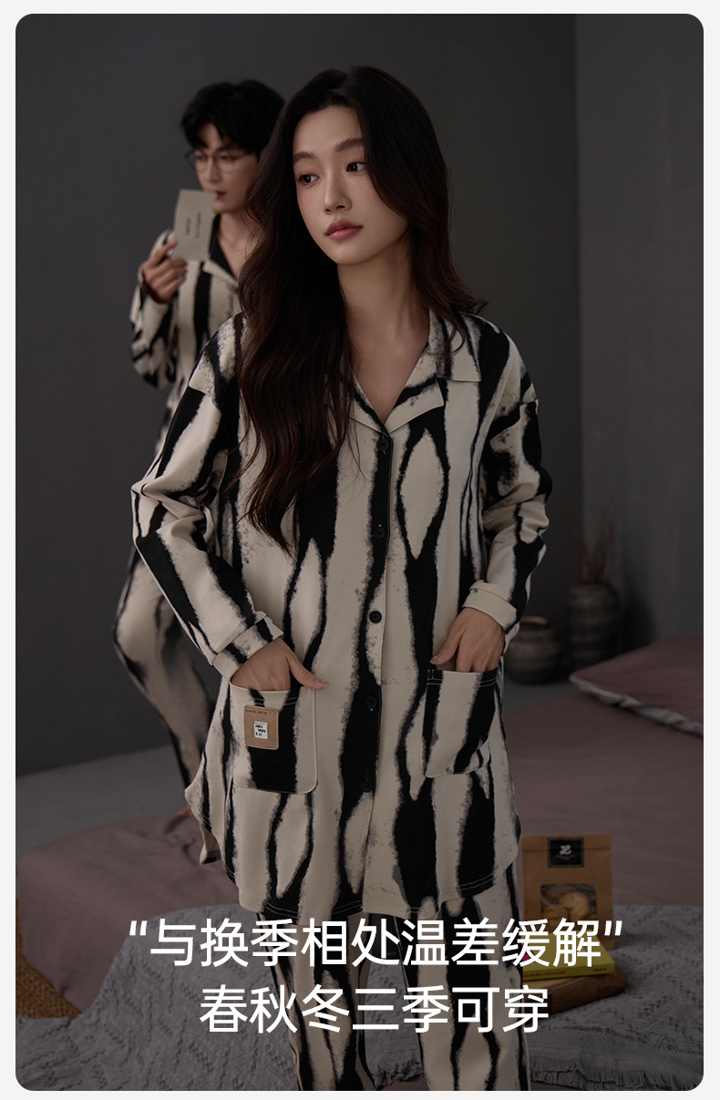 커플 잠옷 여성 면 카디건 긴 소매 세트 봄과 가을 패션 캐주얼 남성 느슨한 외부 가정 옷을 입고