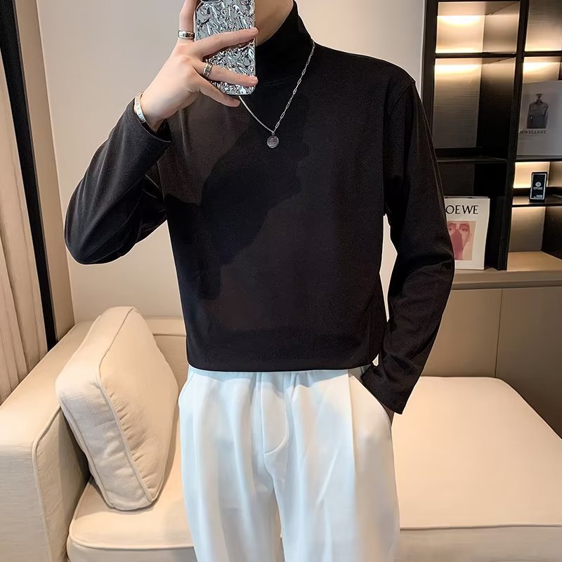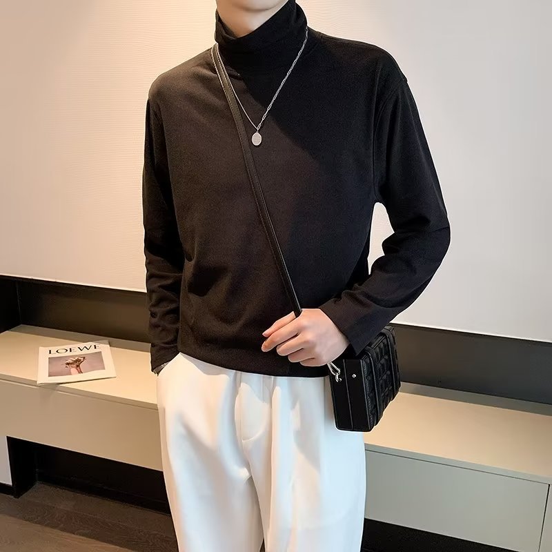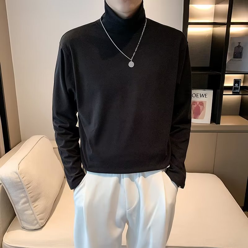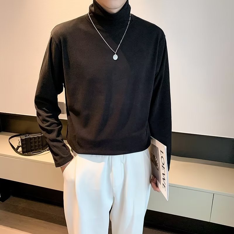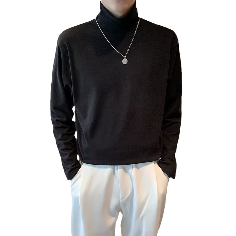 가을과 겨울 높은 칼라 기모 두꺼운 남성 긴팔 티셔츠 가을 따뜻한 내부 스웨터 탑베이스 셔츠 속옷