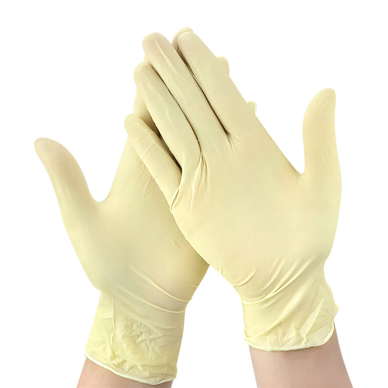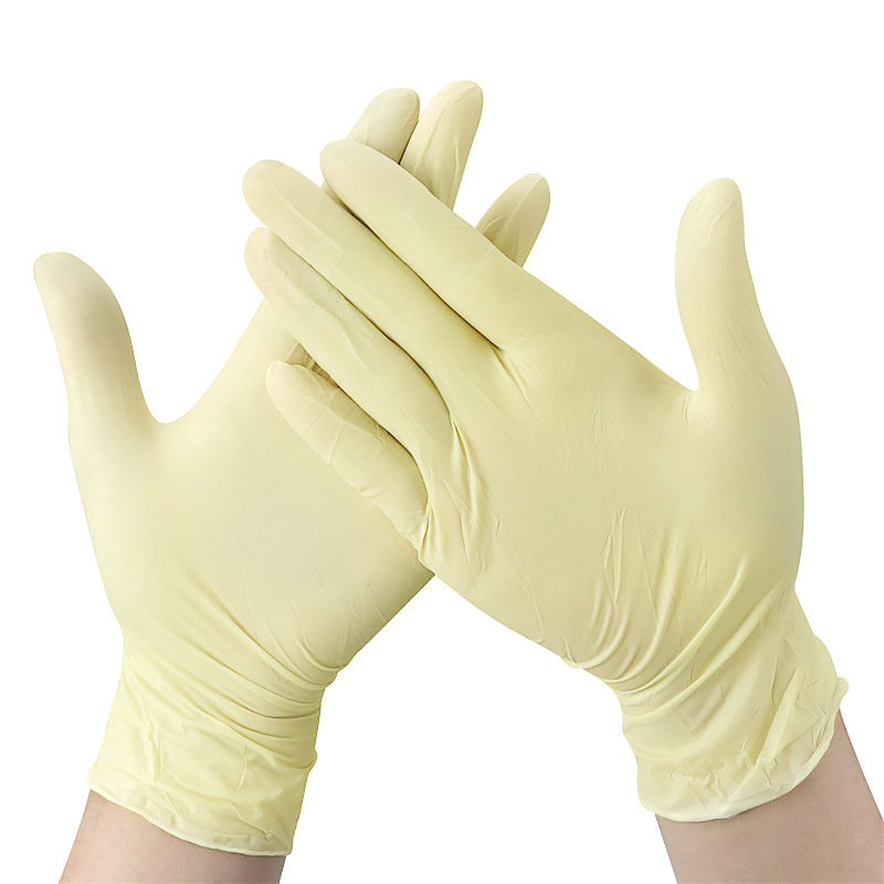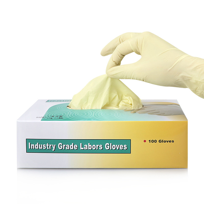 净化无粉加厚防护检查手套黄色劳保橡胶手套一次性9寸乳胶手套