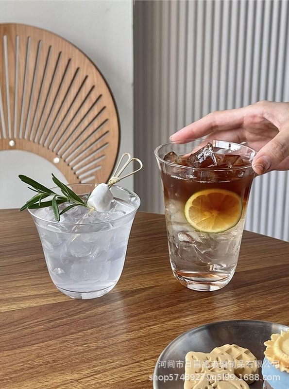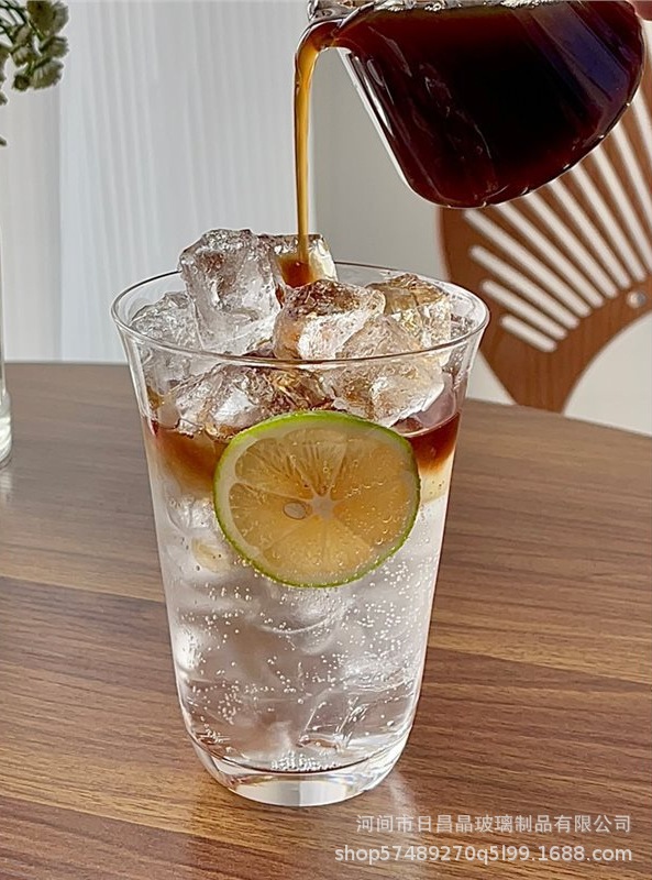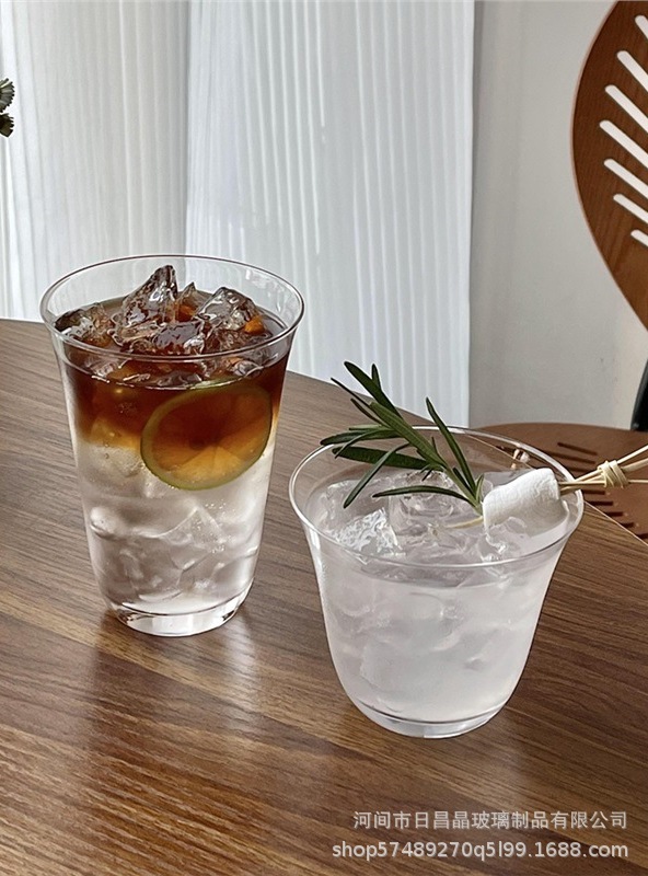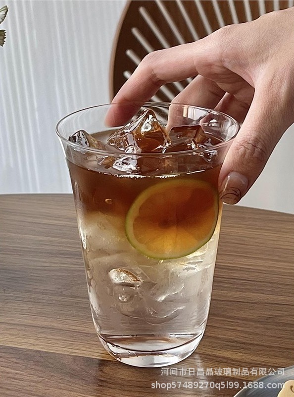 높은 붕규산 고온 투명 단층 컵 차가운 음료 컵 넓은 입 얼음 미국 라떼 커피 컵 간단한 유리 컵