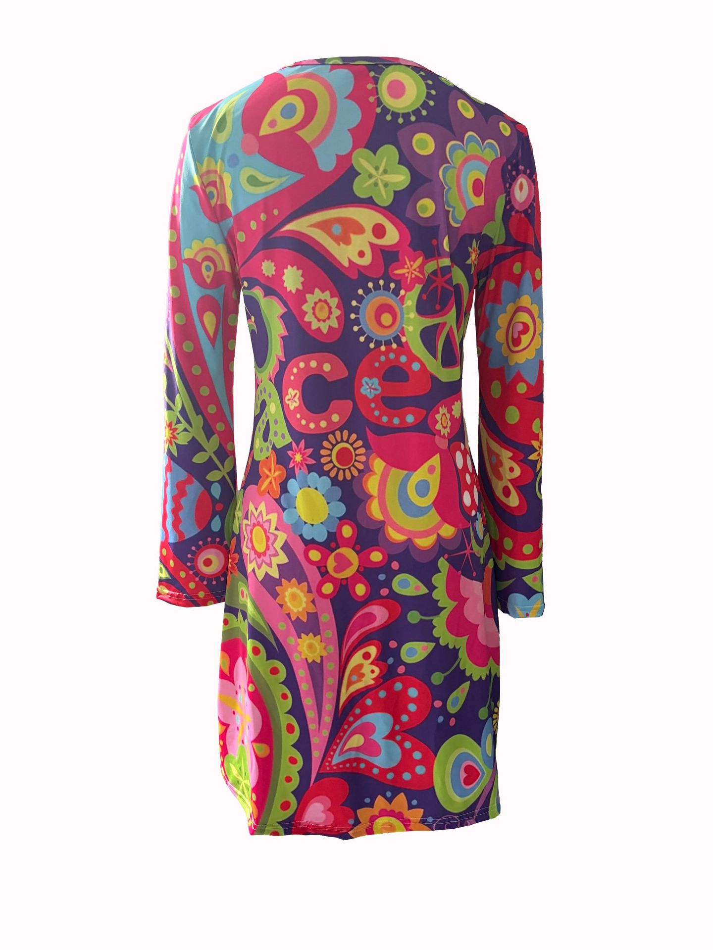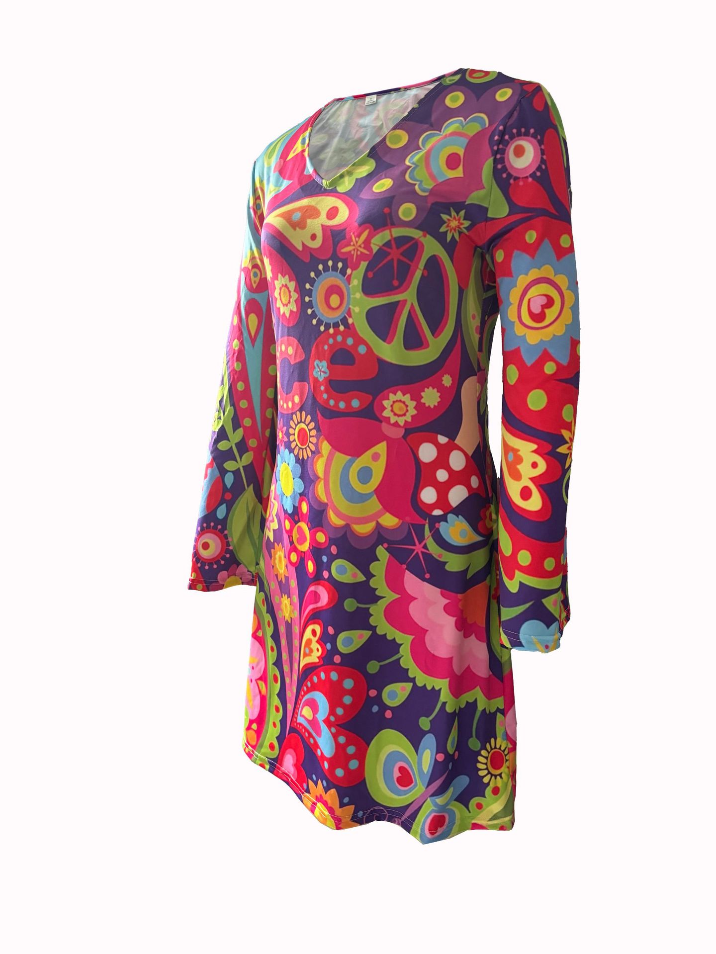 국경 간 대외 무역 유럽과 미국 아마존 할로윈 인쇄 원피스 시대 히피 뿔 소매 V-Neck 원피스