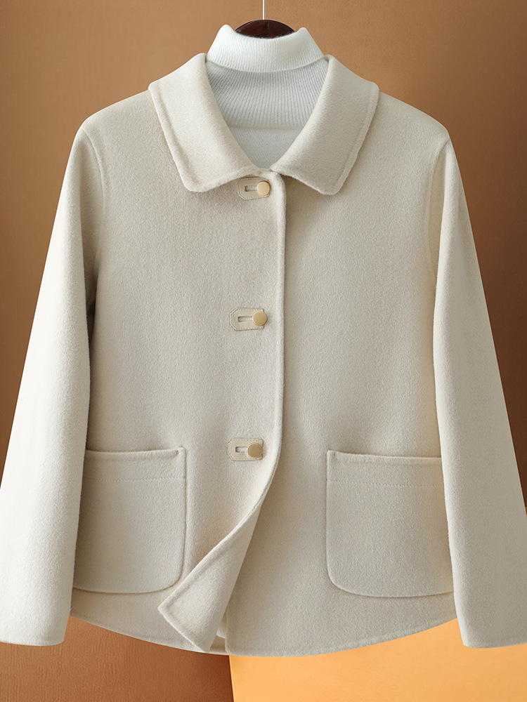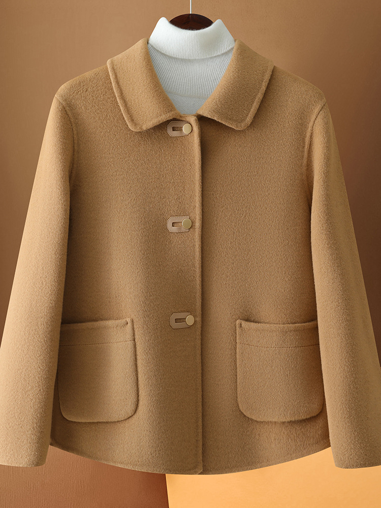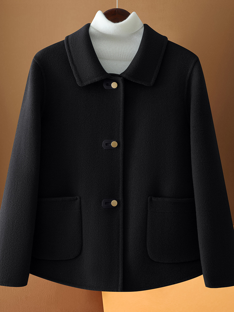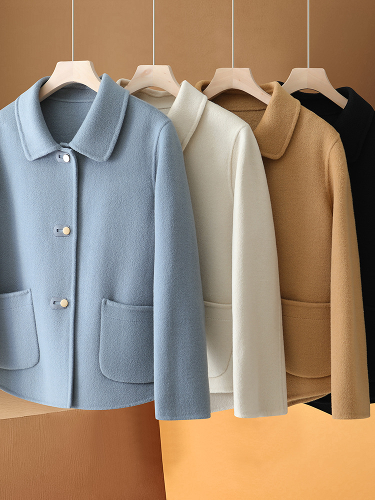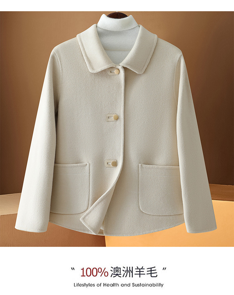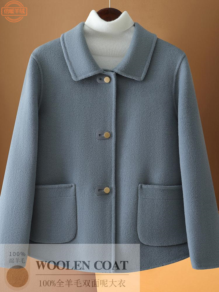 새로운 양면 캐시미어 코트 여성용 짧은 한국식 슬리밍 인형 칼라 울 울 작은 하이 엔드 코트