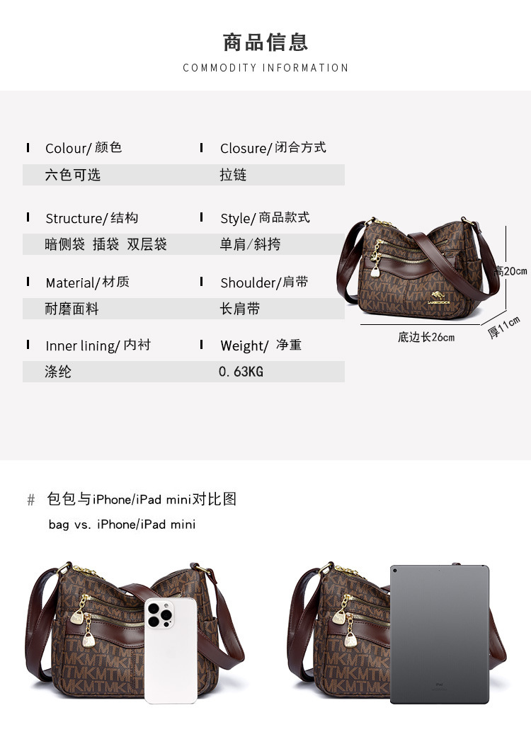 간단한 거리 유행 여성 가방 크로스 바디 백 2024 새로운 패션 인쇄 중년 여성 어깨 가방 캐주얼 가방