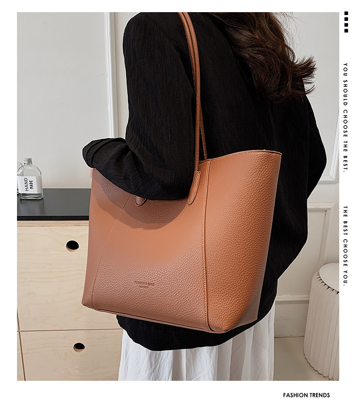 대용량 소프트 페이스 빈티지 버킷 백 2024 새로운 솔리드 컬러 패셔너블 캐주얼 커밍 간단한 숄더 토트 백