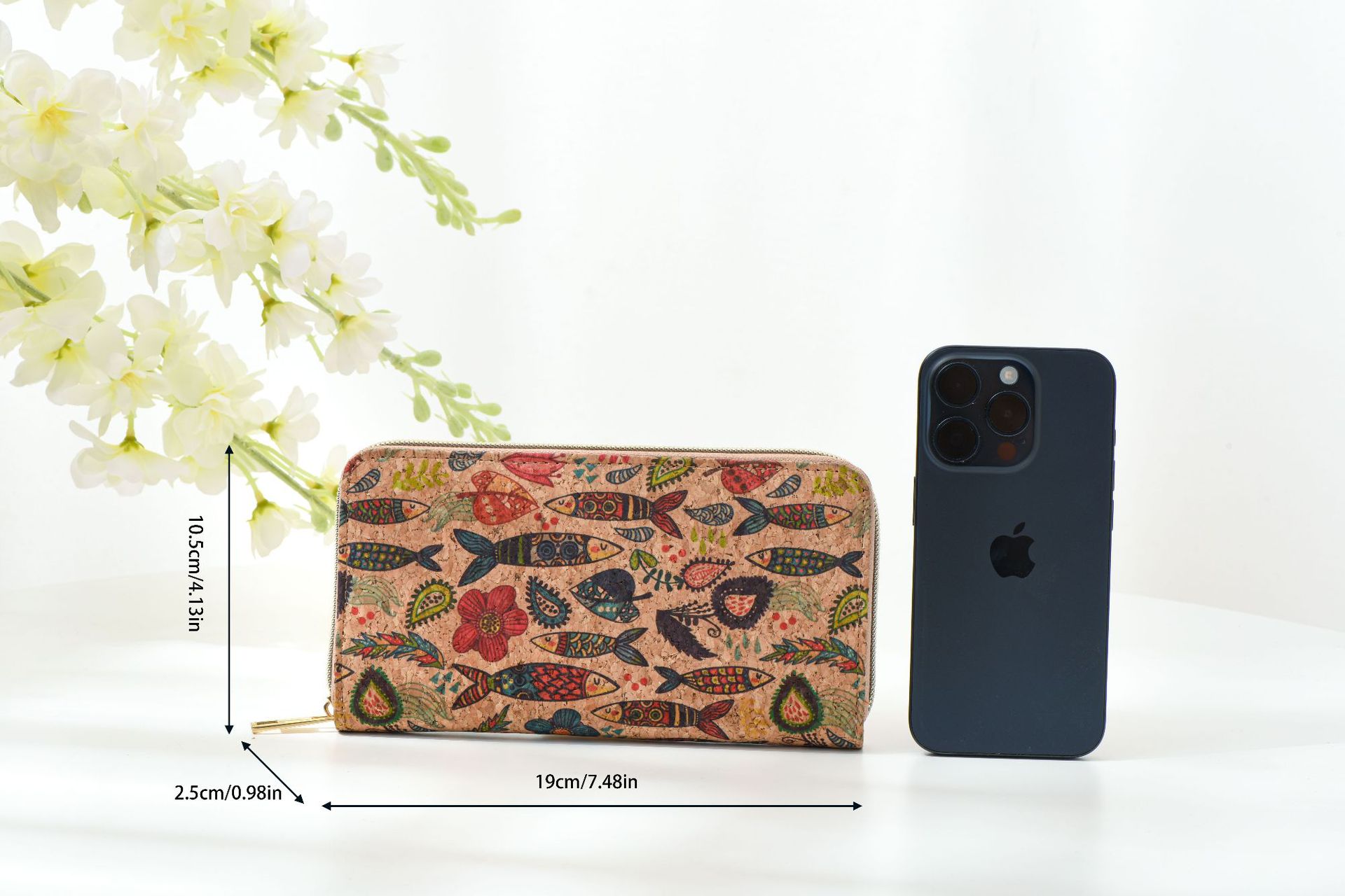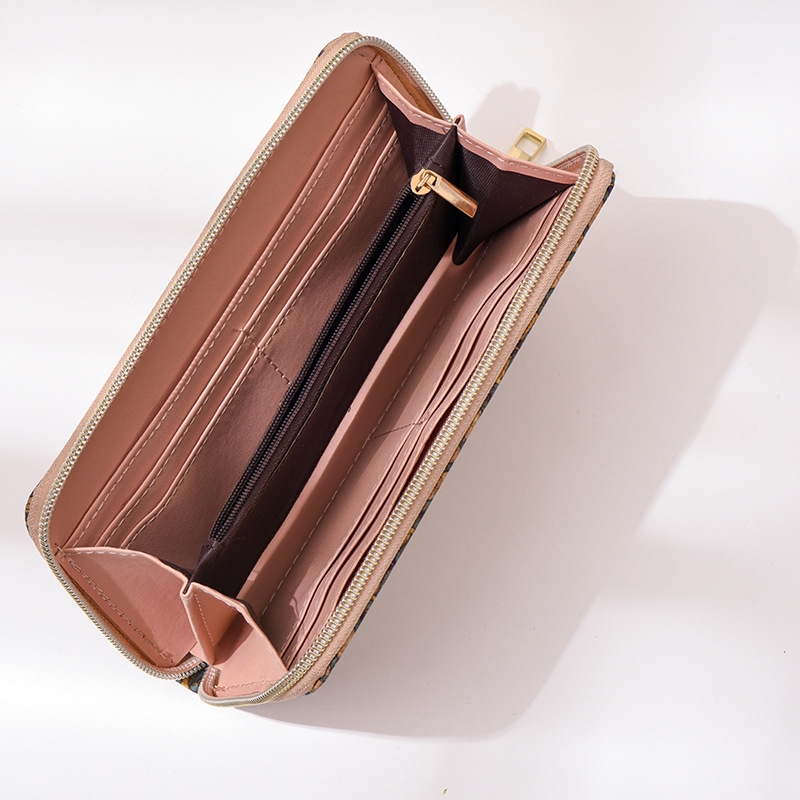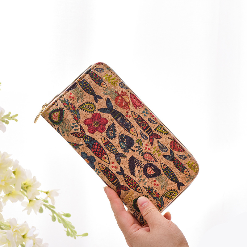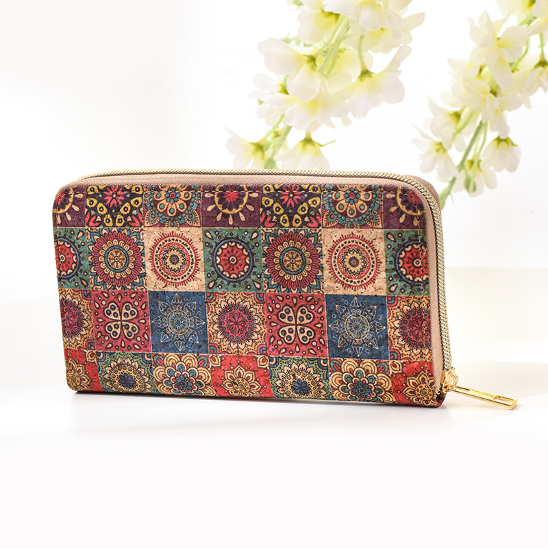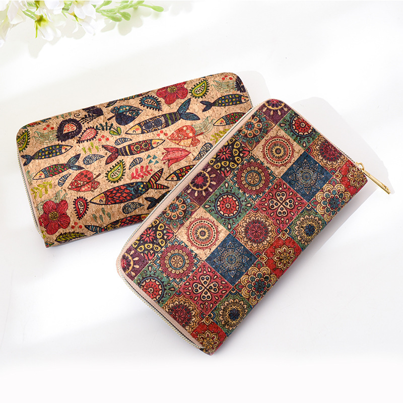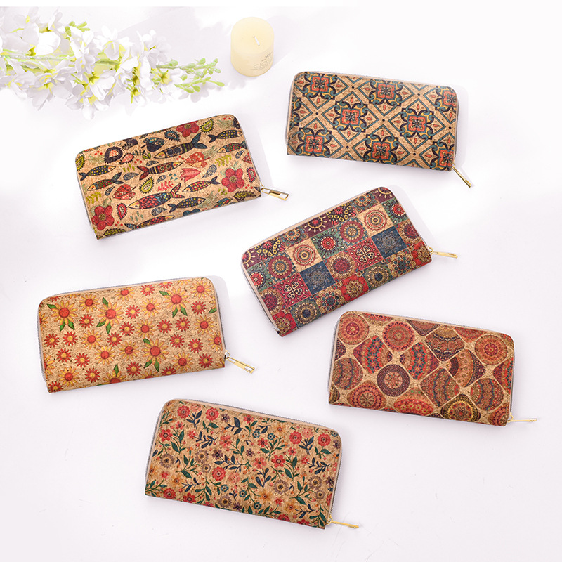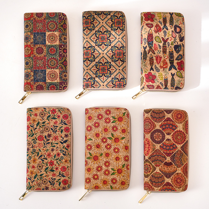 여성 긴 지갑 복고풍 예술적 성격 카드 가방 인쇄 디자인 목재 곡물 대용량 동전 지갑 소스 제조업체