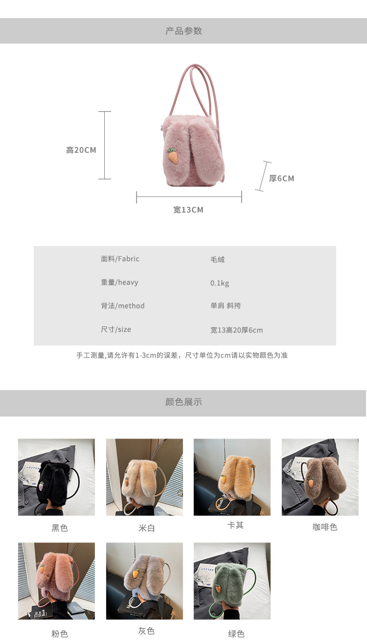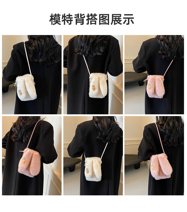 가을과 겨울 새로운 마오 마오 휴대 전화 가방 인터넷 축하 봉제 작은 가방 어깨 크로스 바디 가방 토끼 귀 미니 가방 여성 동전 지갑