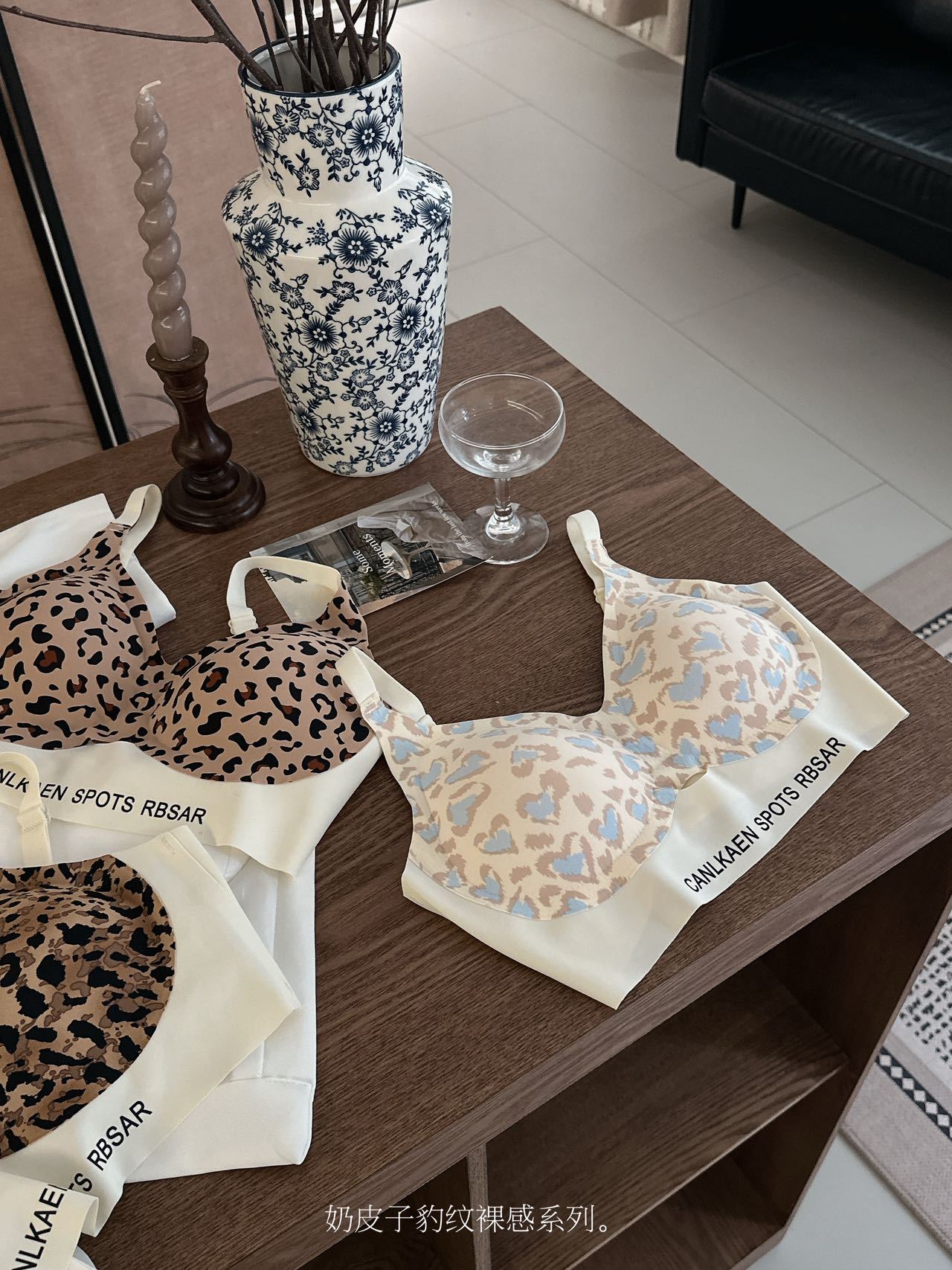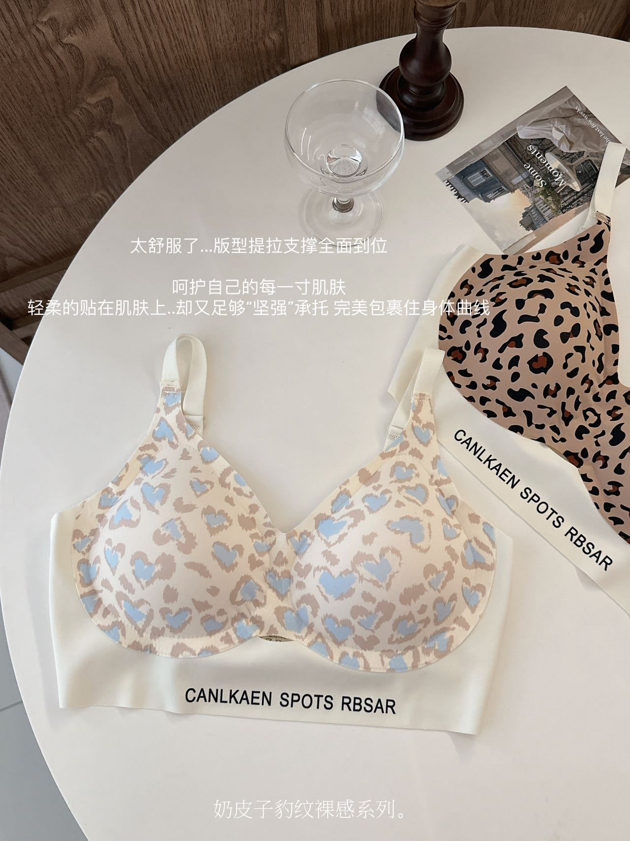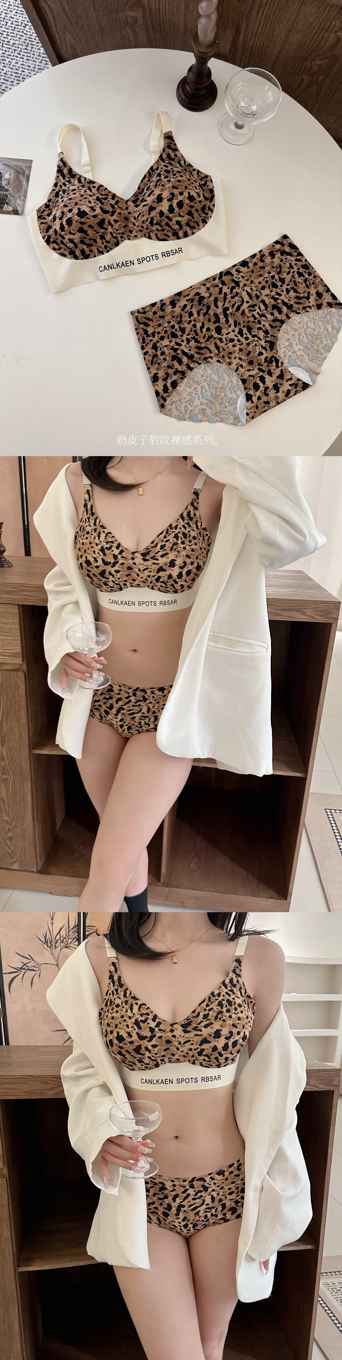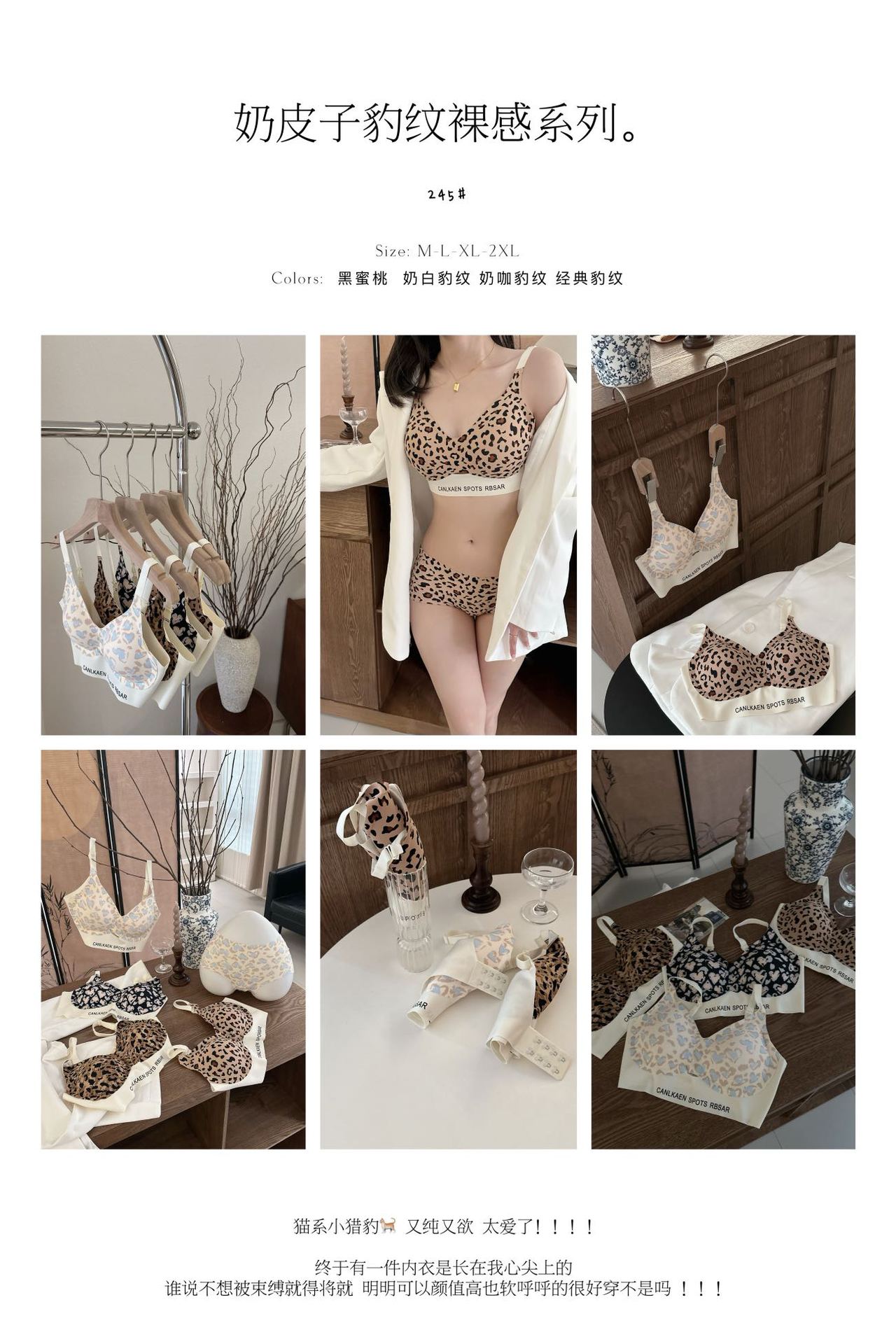 폭발성 레오파드 프린트 우유 가죽 세트 편안한 지원 섹시한 속옷 여성 원활한 스포츠 충격 방지 브래지어