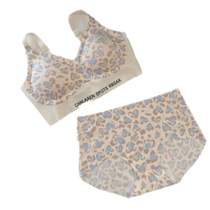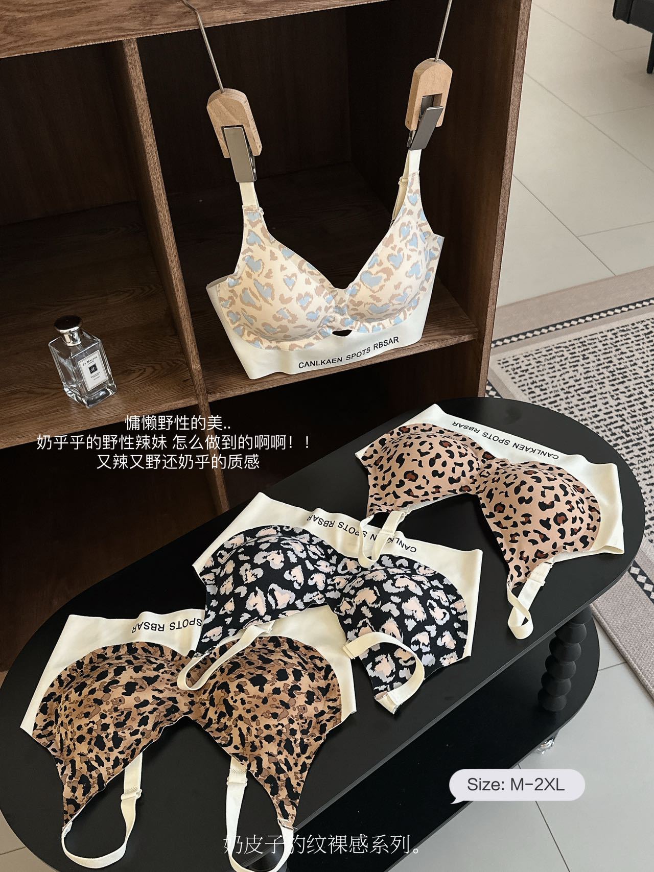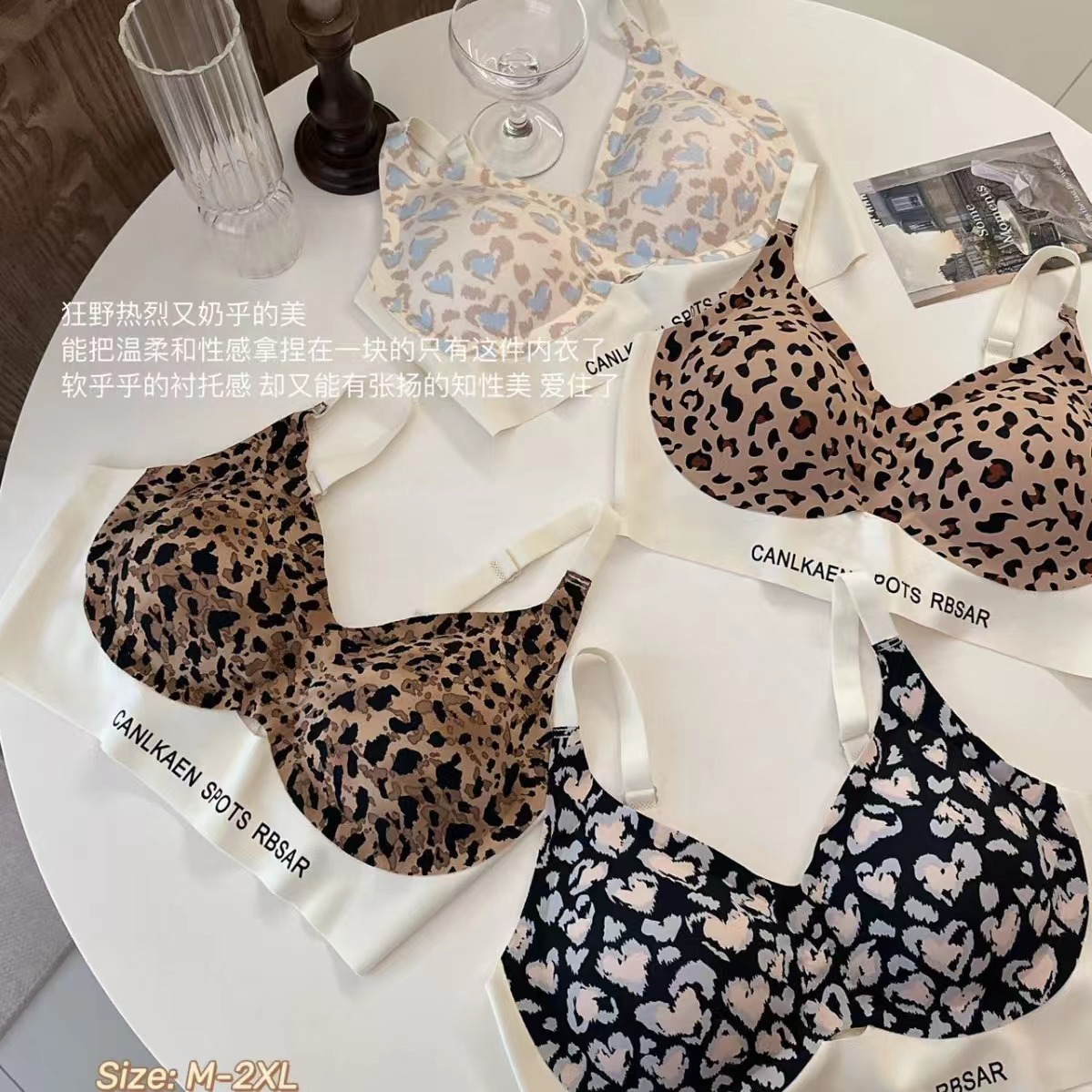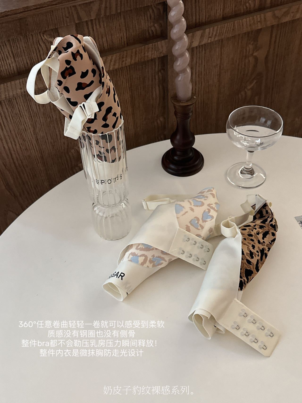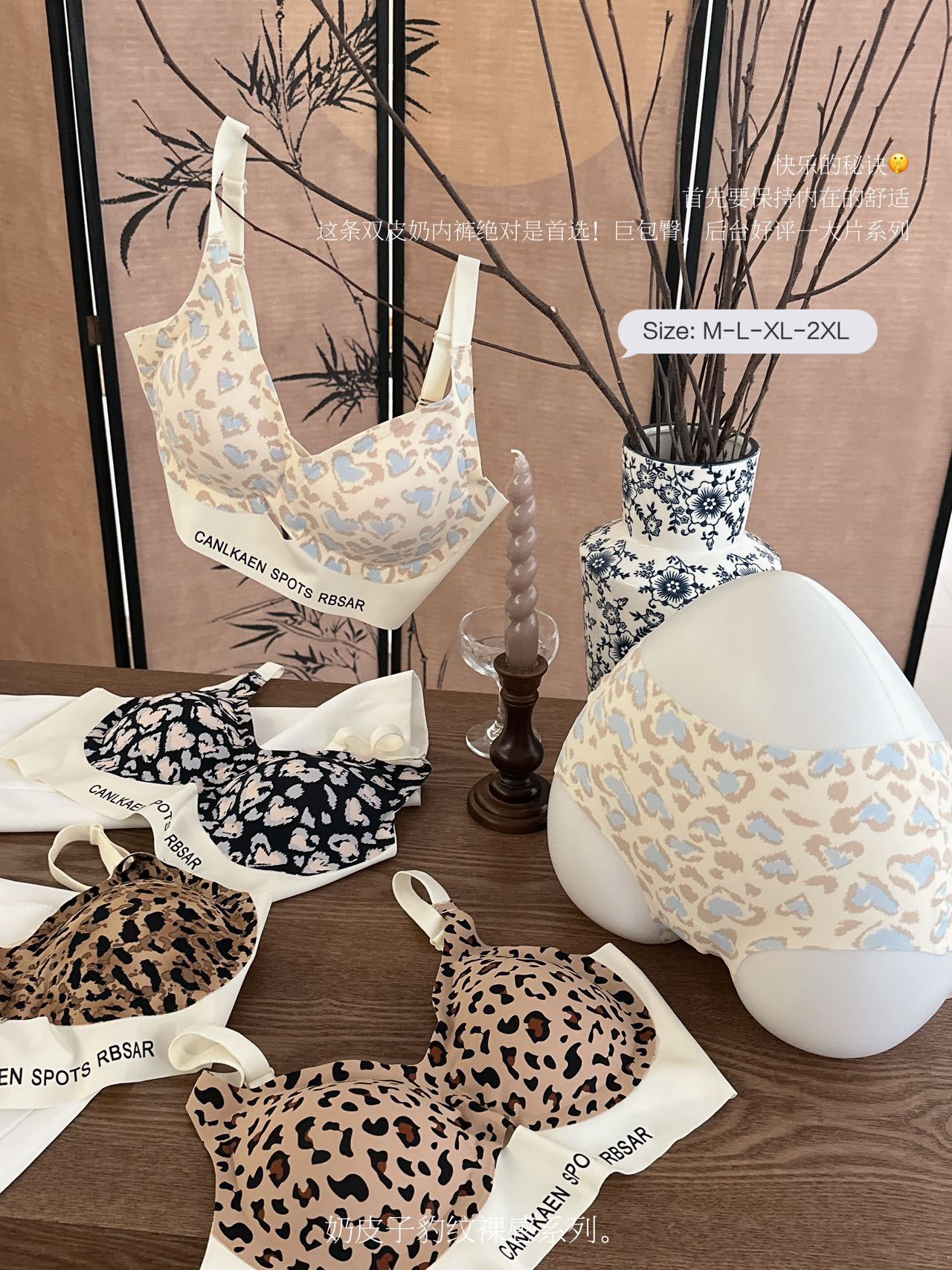 폭발성 레오파드 프린트 우유 가죽 세트 편안한 지원 섹시한 속옷 여성 원활한 스포츠 충격 방지 브래지어