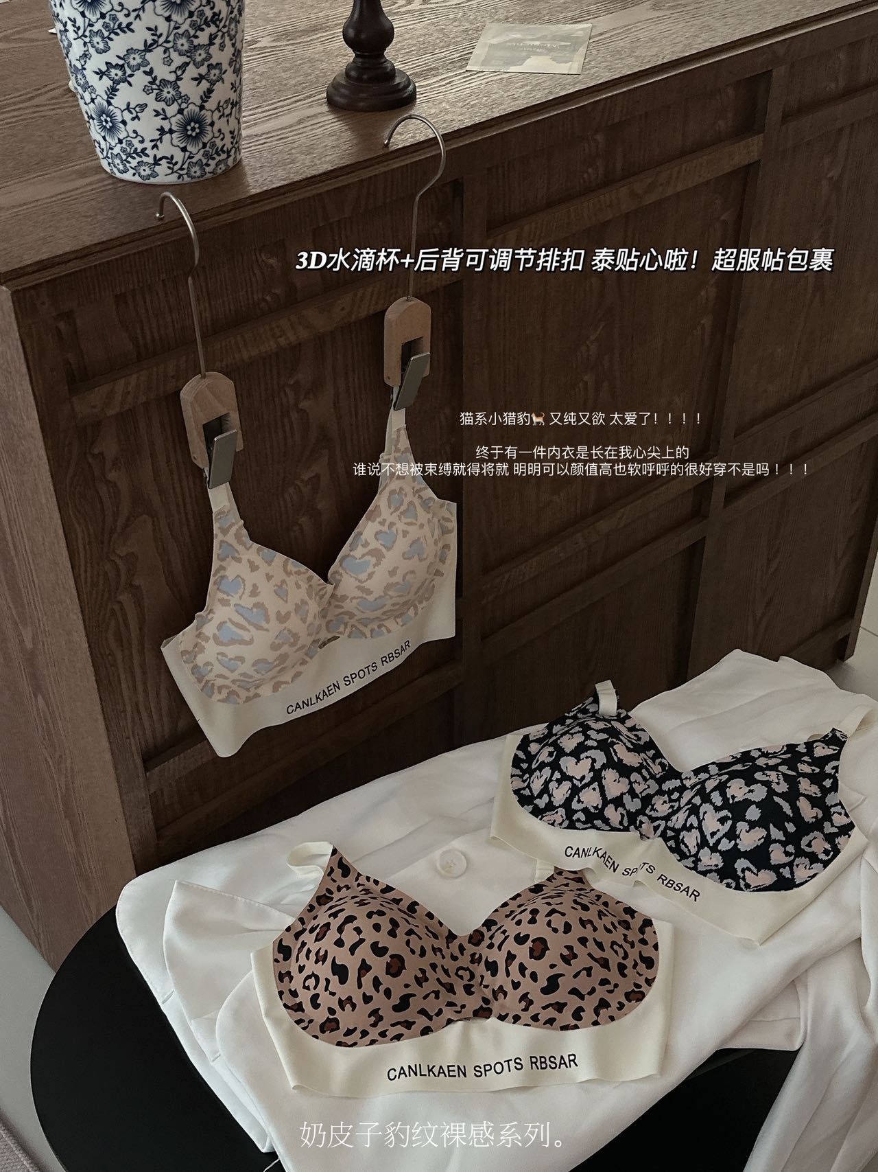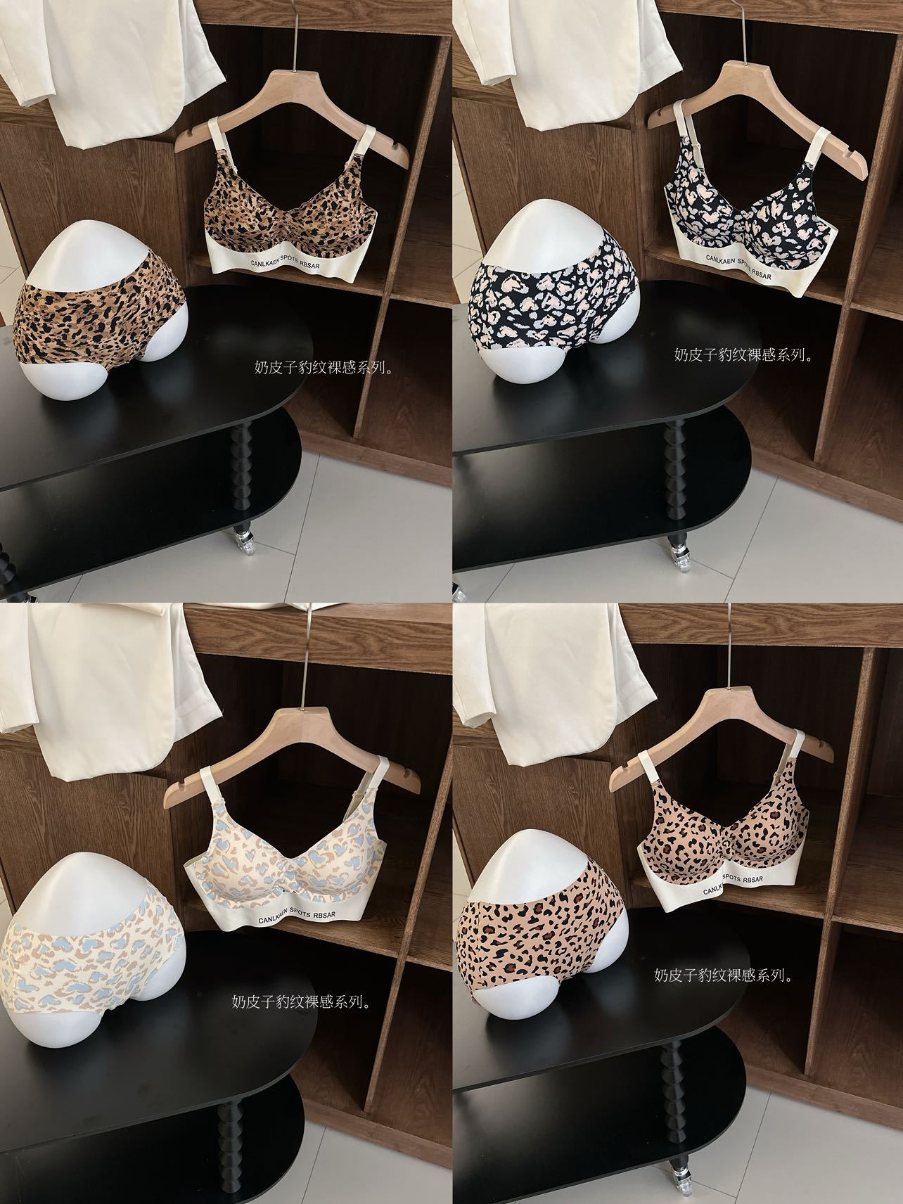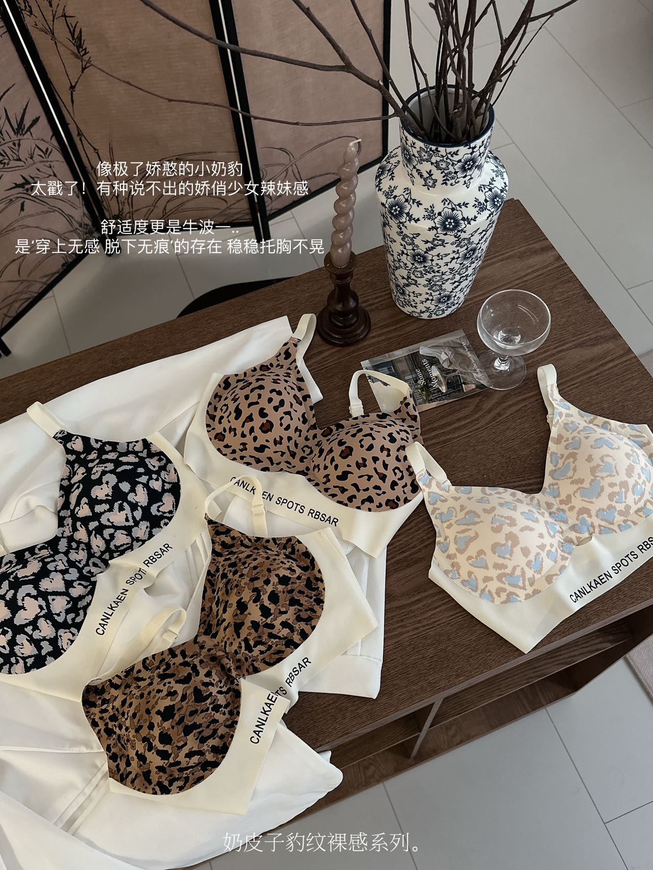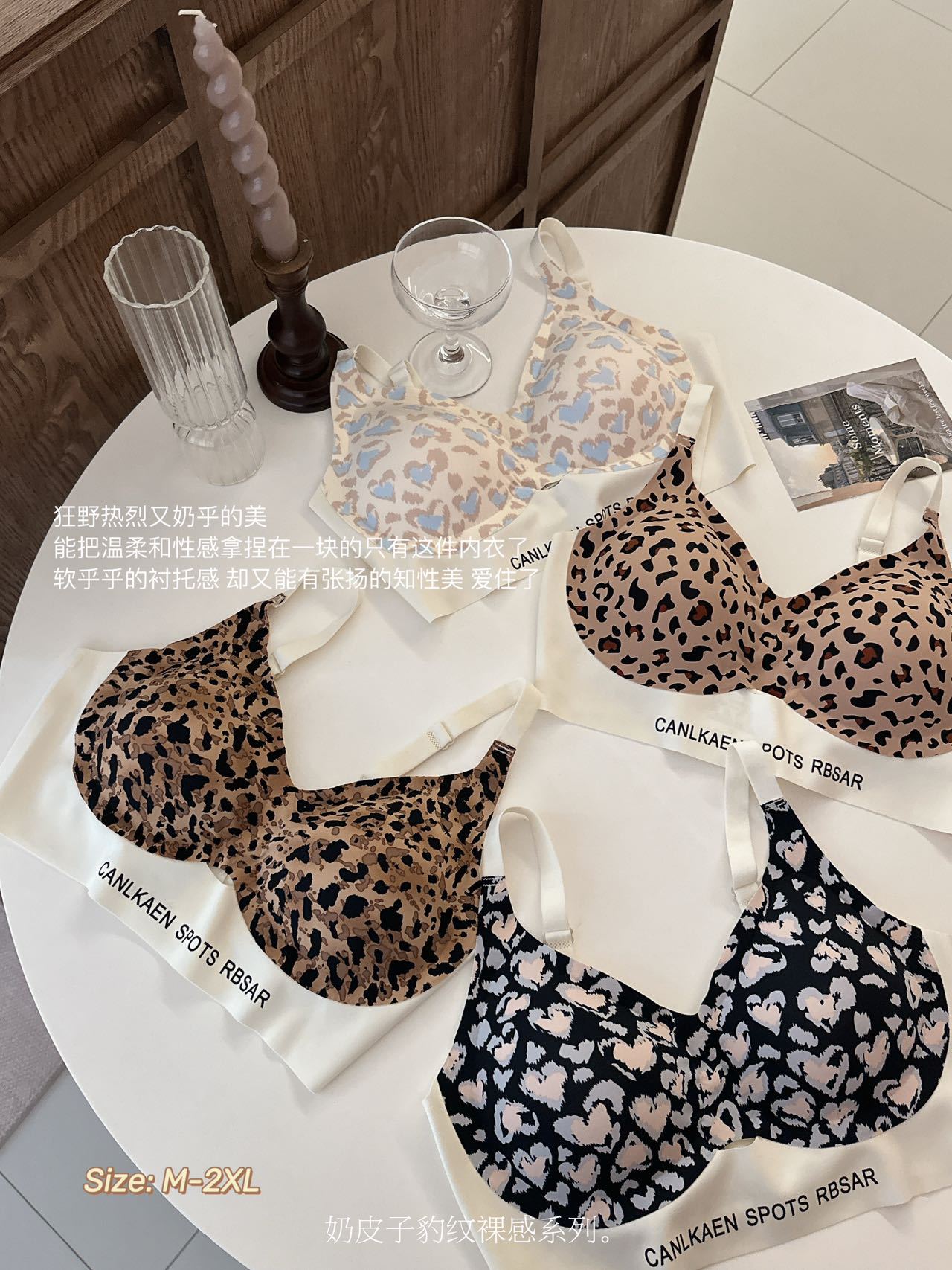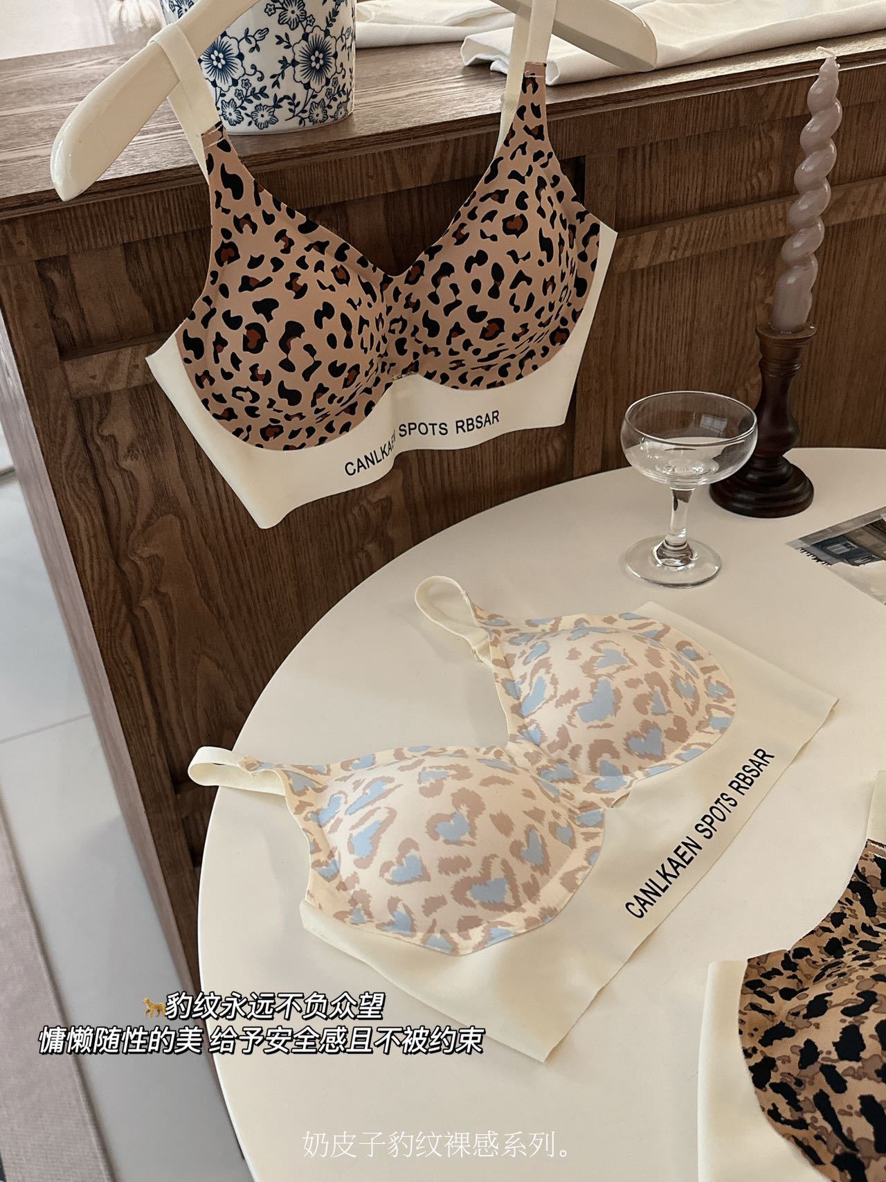 폭발성 레오파드 프린트 우유 가죽 세트 편안한 지원 섹시한 속옷 여성 원활한 스포츠 충격 방지 브래지어
