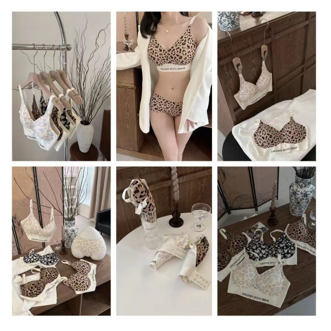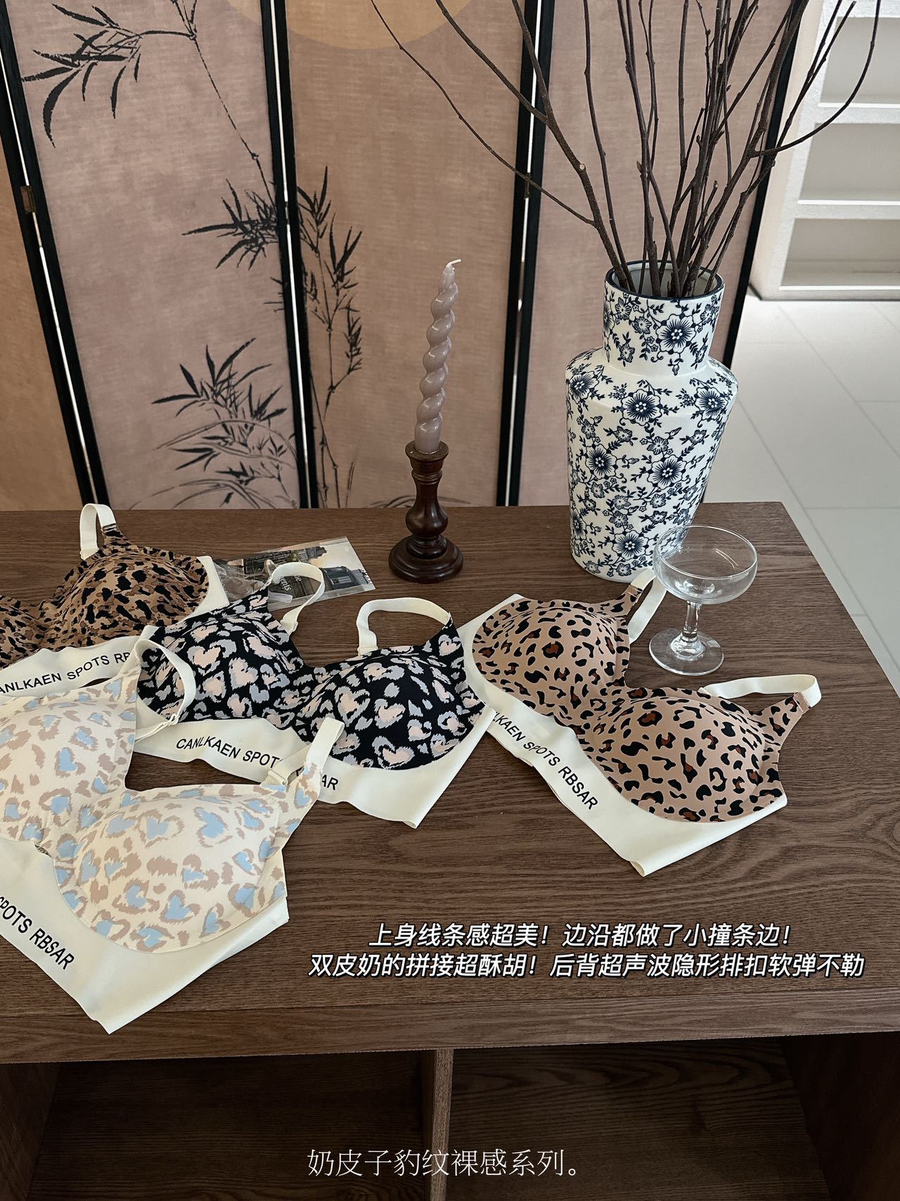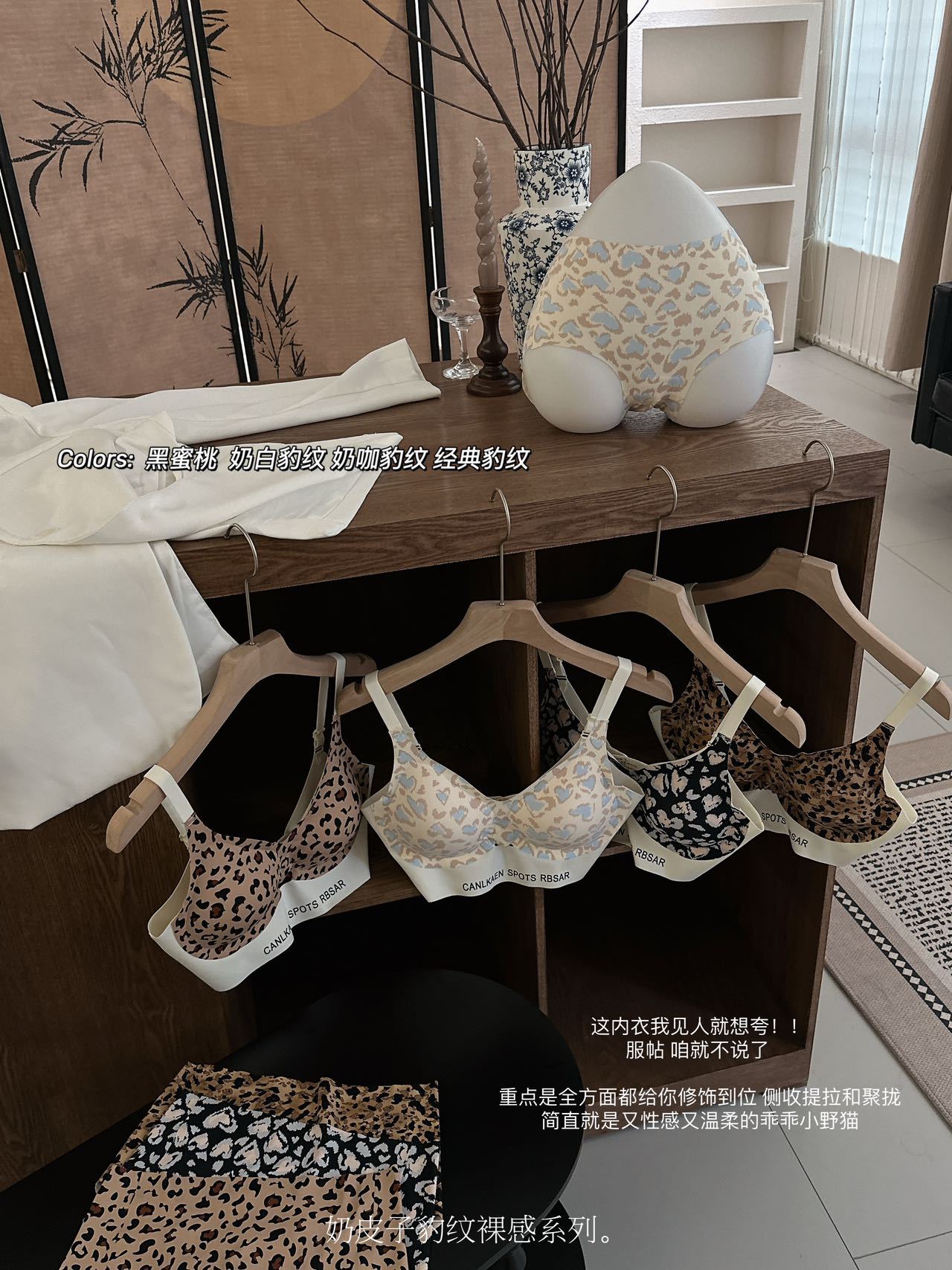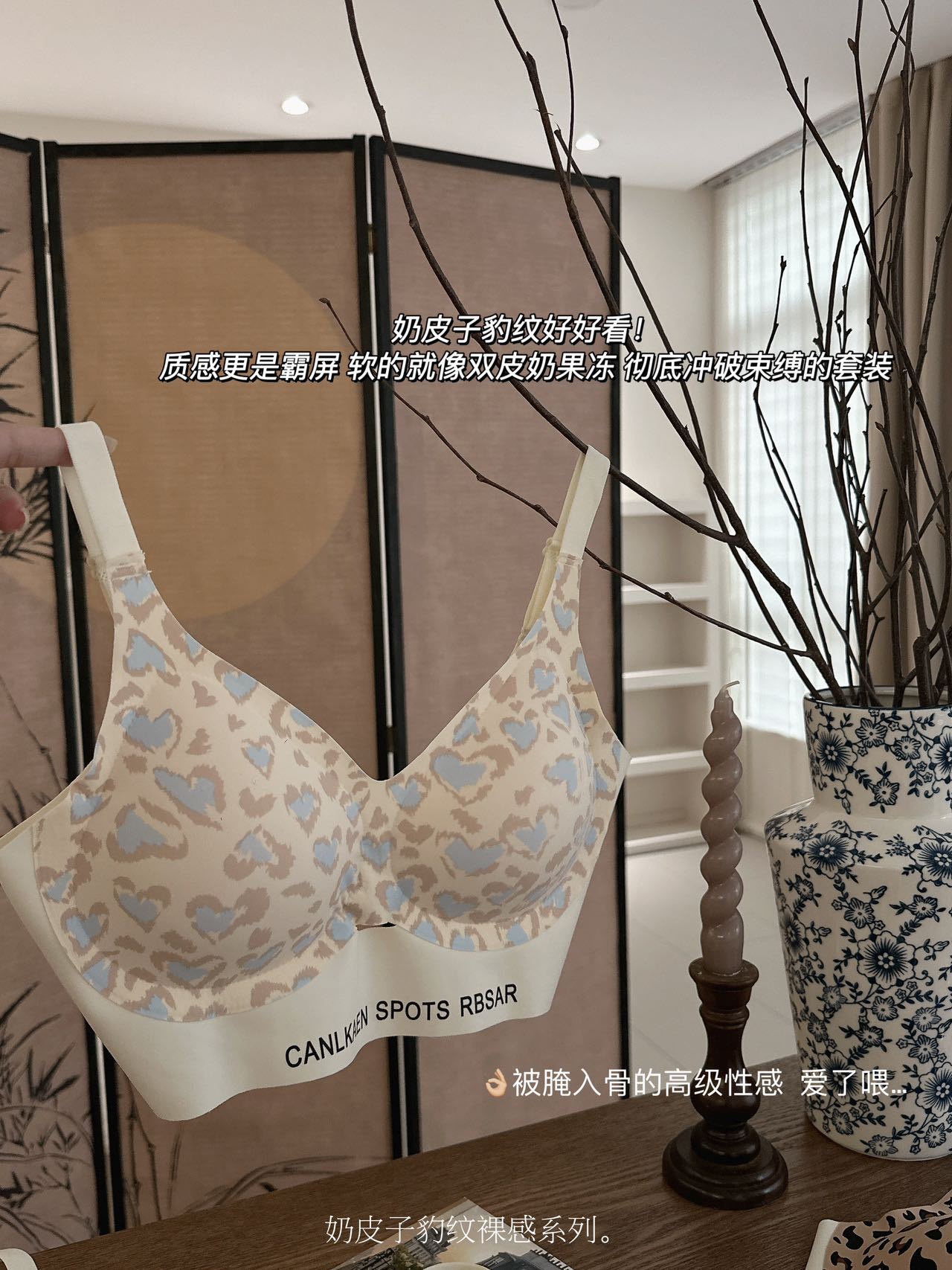 폭발성 레오파드 프린트 우유 가죽 세트 편안한 지원 섹시한 속옷 여성 원활한 스포츠 충격 방지 브래지어