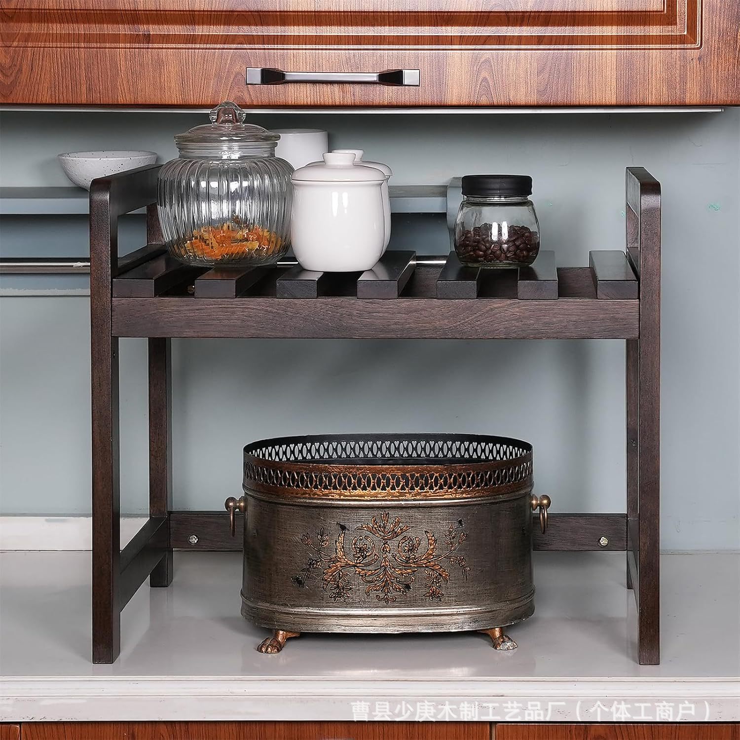 나무로 만든 전자레인지 스탠드, 주방 카운터 에어프라이어 탁상용 수납 선반, 토스터기 주방 정리대