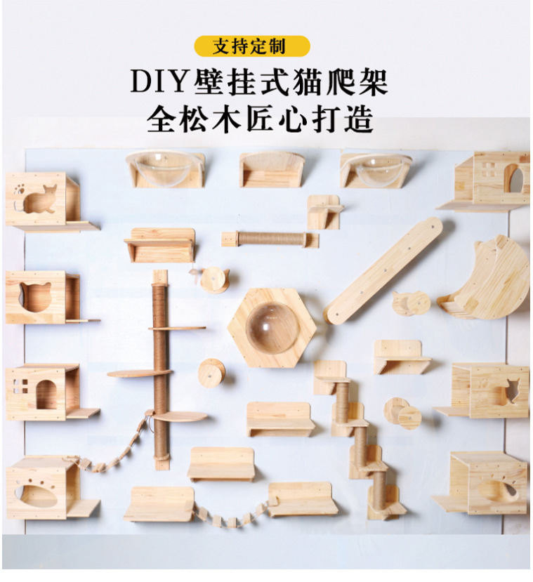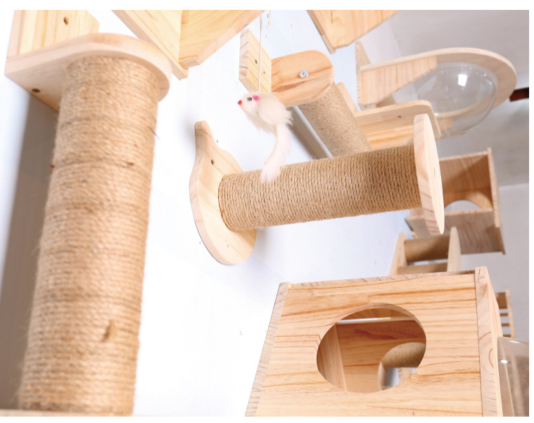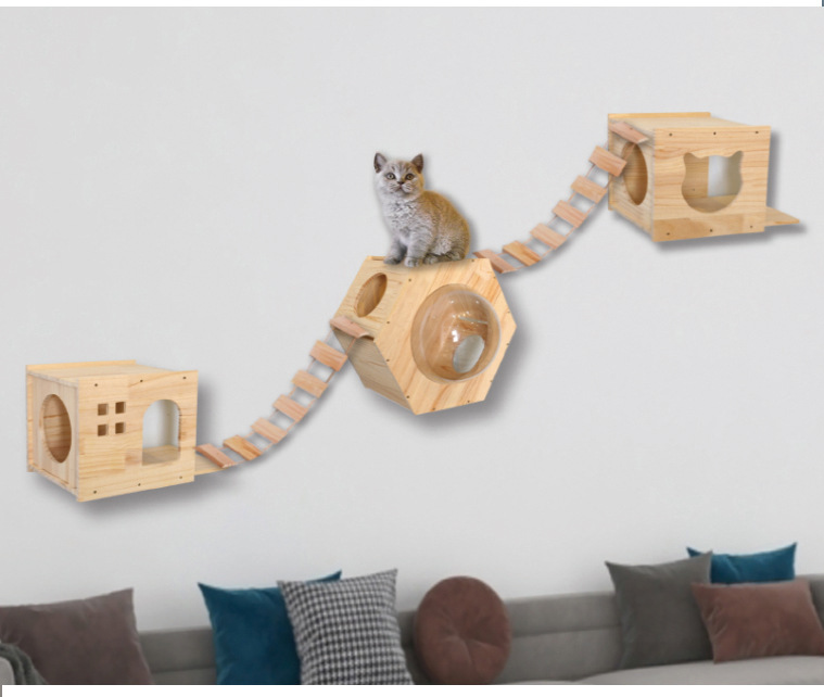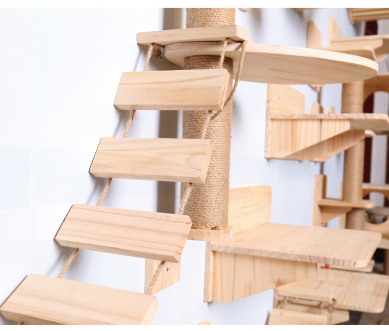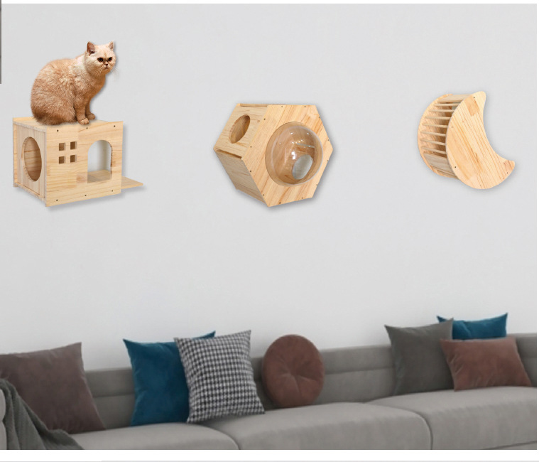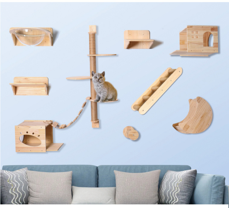 벽걸이형 고양이 클라이밍 프레임 세트 원목 고양이 놀이대 고양이 집 일체형 벽걸이 DIY 공간 절약형 고양이 스크래쳐 고양이 점프대 가정용