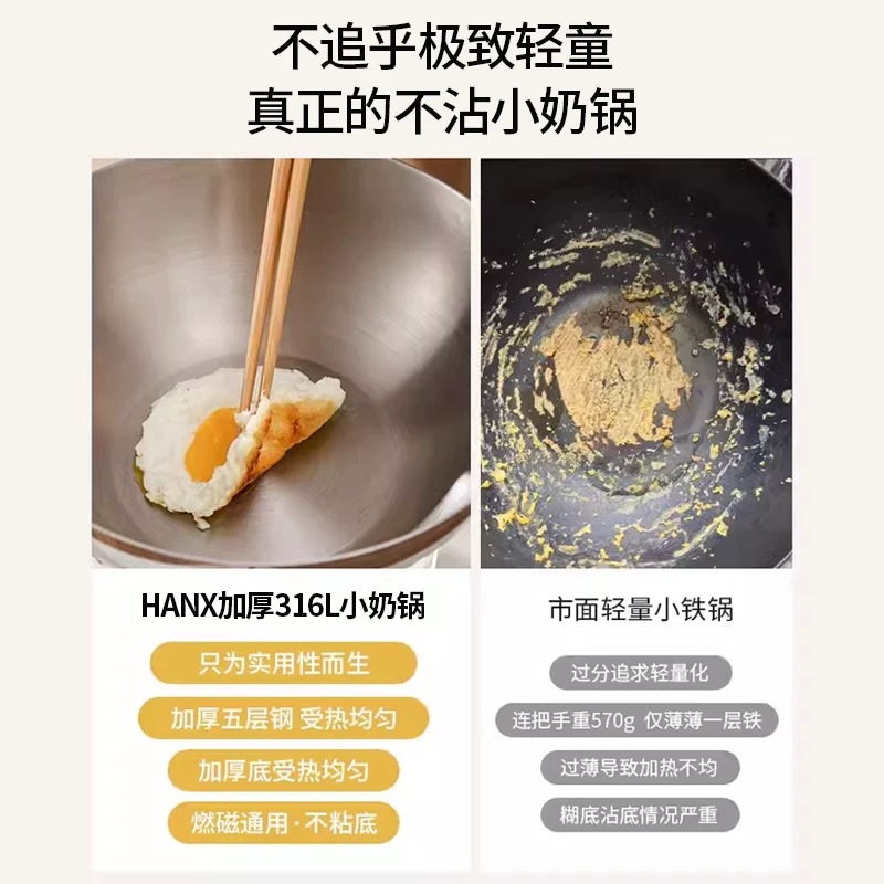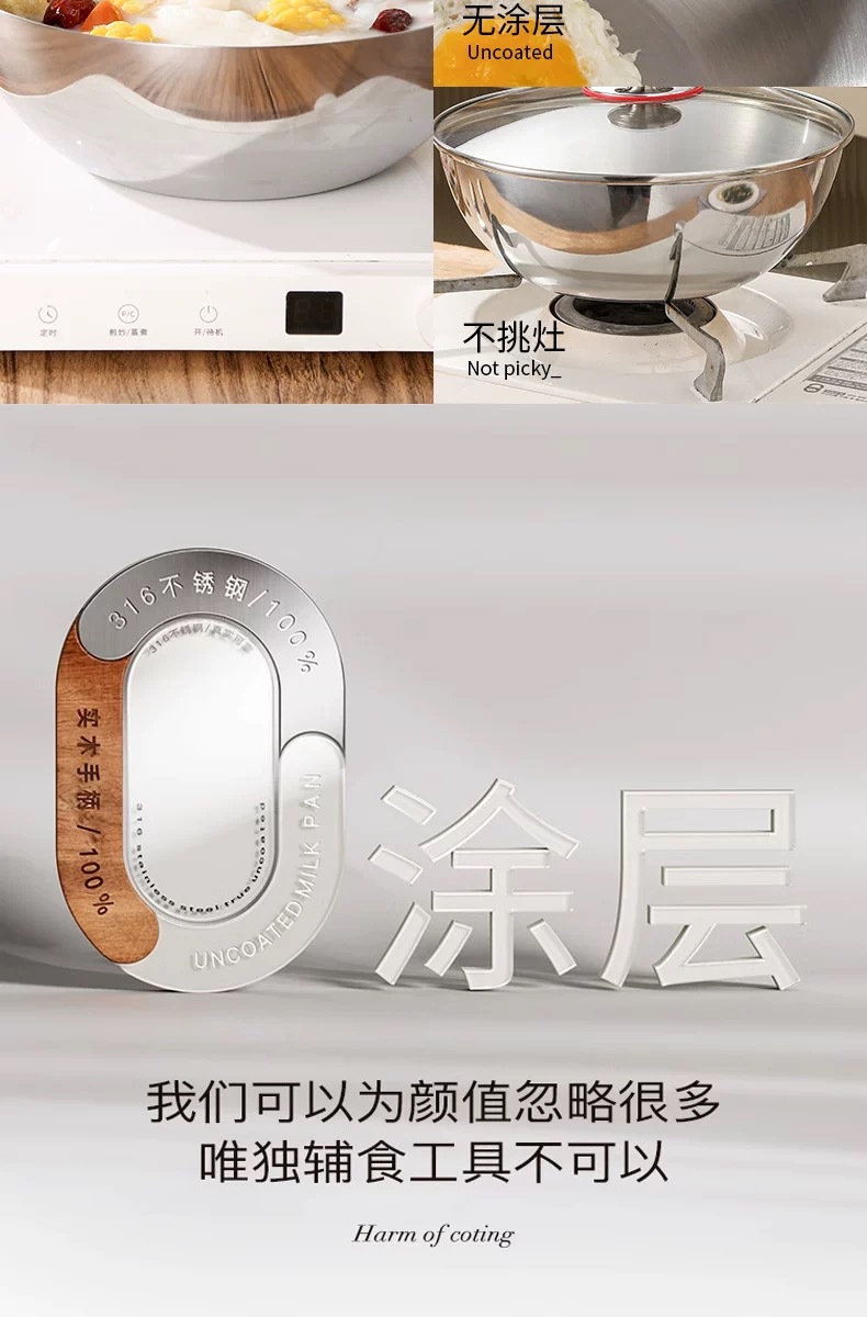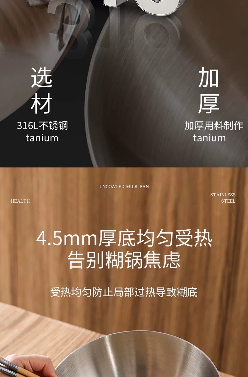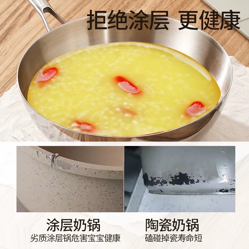 316 스테인레스 스틸 작은 냄비 코팅되지 않은 스몰 사이즈 미니 유도 밥솥 비 스틱 튀김 다목적 냄비 프라이팬