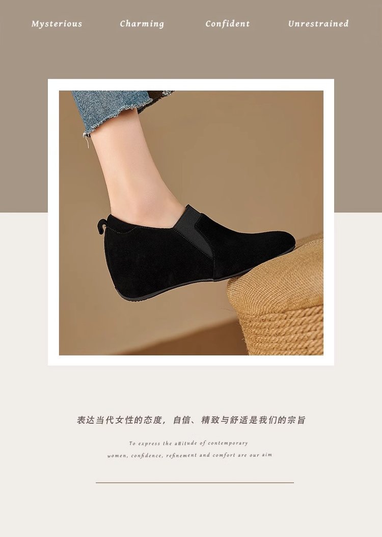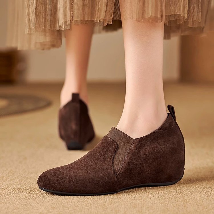 6cm 안쪽 강화 두꺼운 바닥 얕은 입 싱글 레이어 신발 여성의 가을 및 겨울 새로운 슬립 온 로퍼 올매치 강화 게으른 신발
