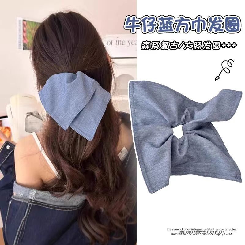 한국 스타일 사각형 데님 블루 머리끈 여성용 헤어밴드 머리끈 헤어 액세서리