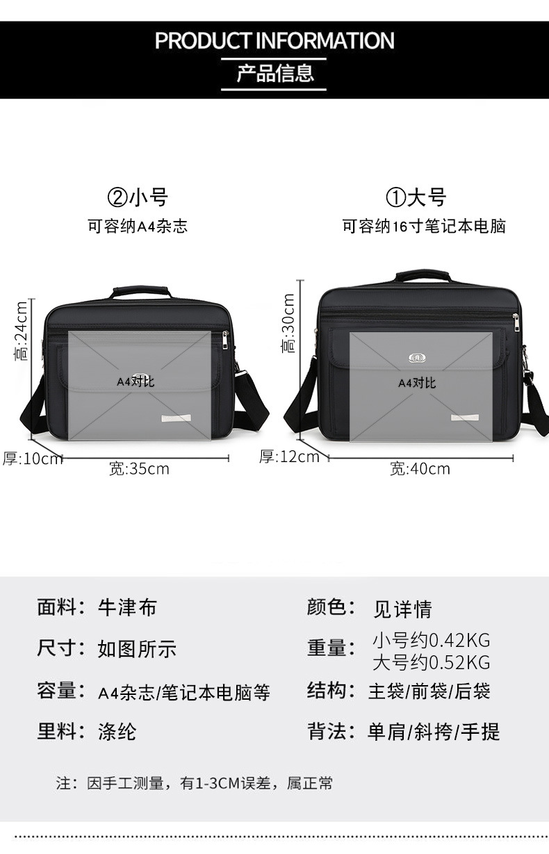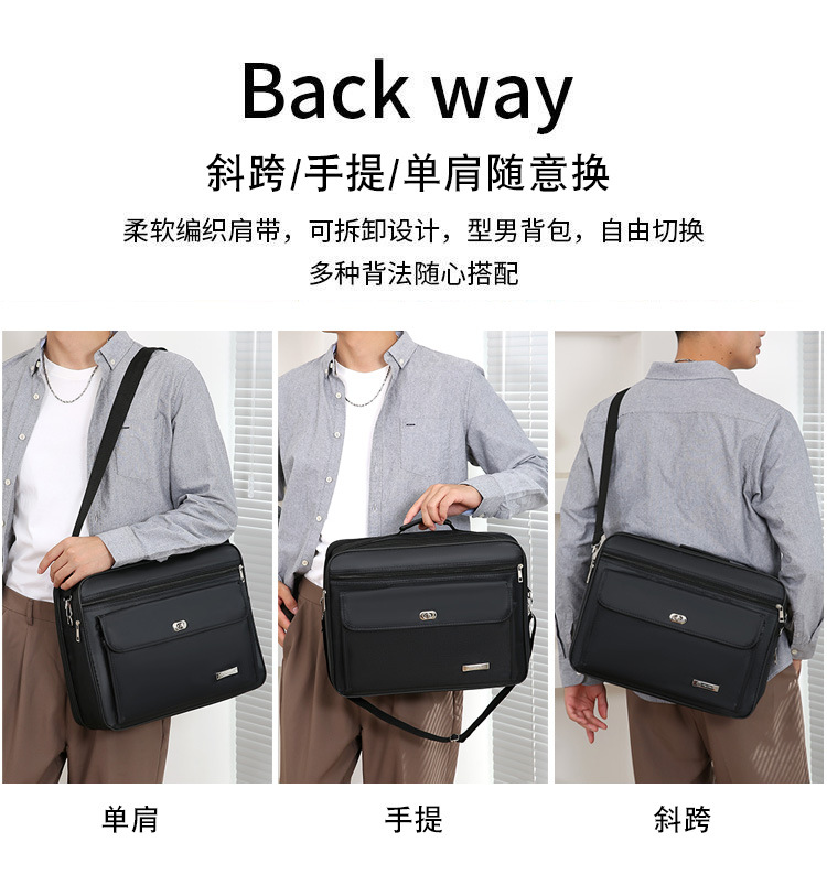 한국식 남성용 비즈니스 핸드백 옥스포드 천 다용도 대용량 숄더백 방수 및 내마모성 컴퓨터 가방 서류 가방