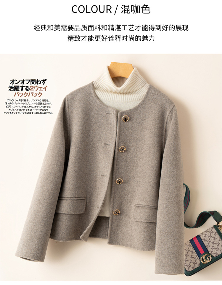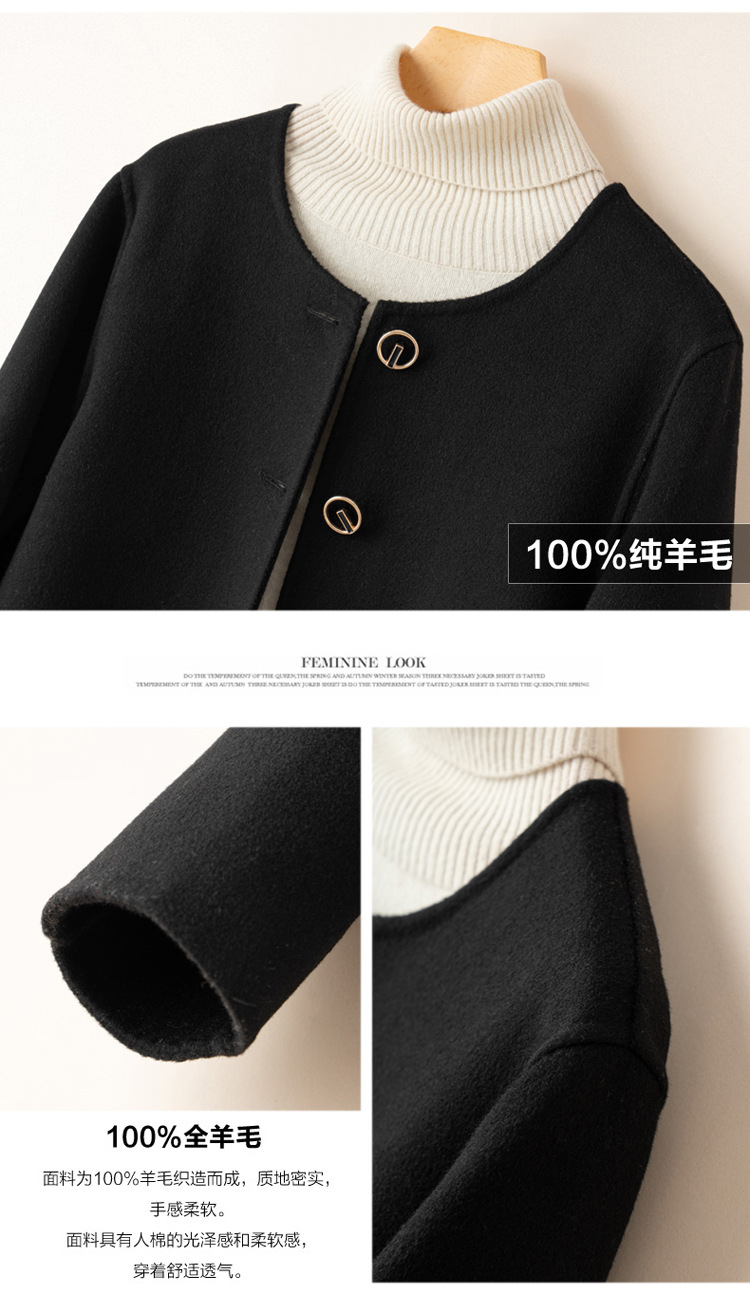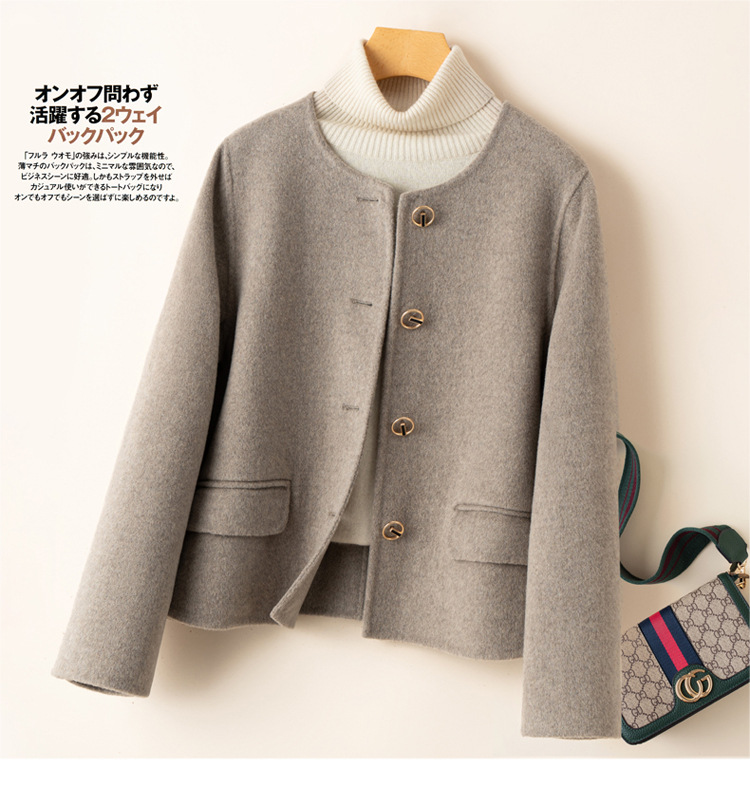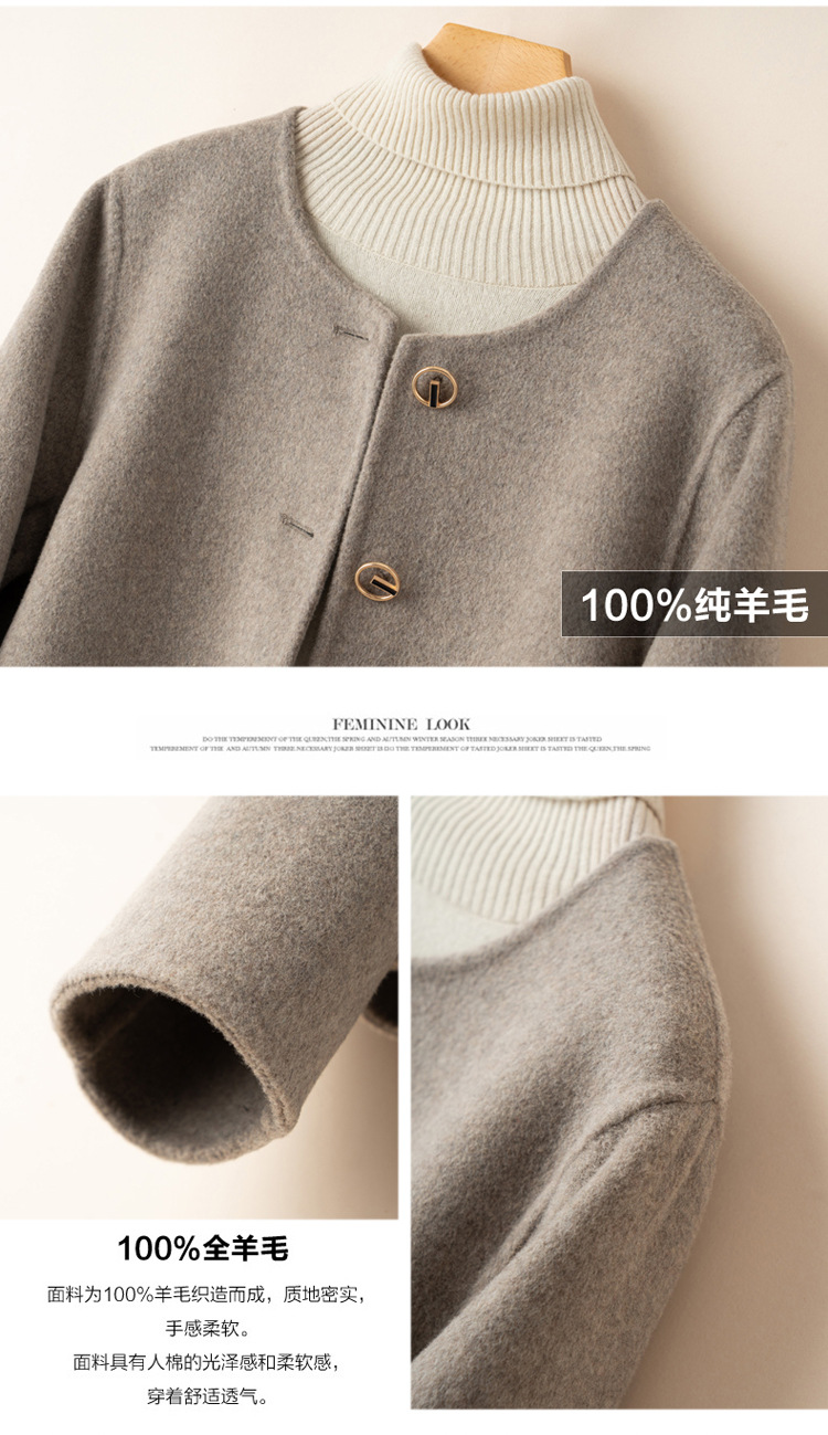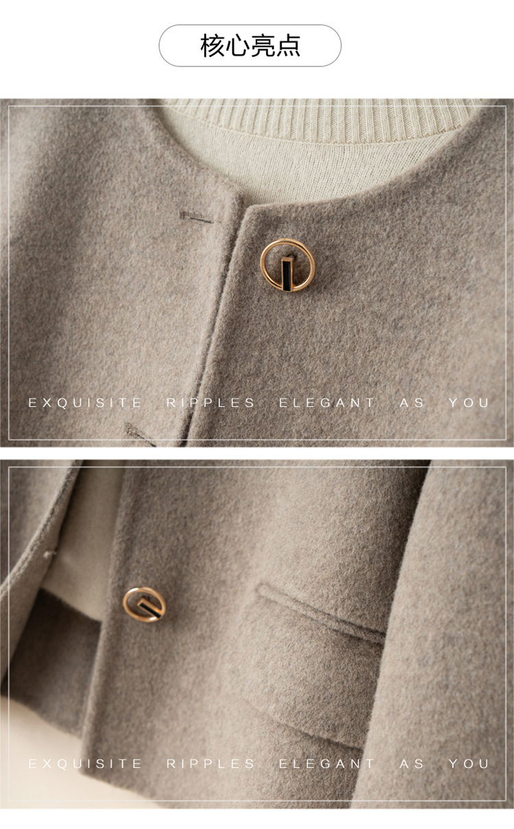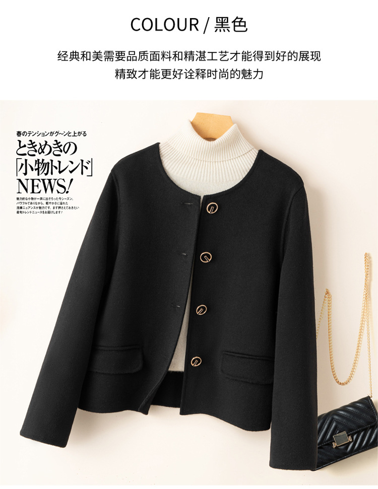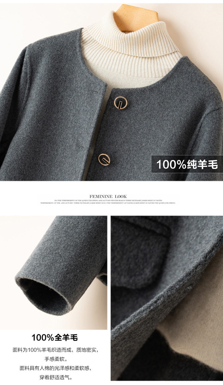 양면 양모 샤넬 스타일 코트 여성 하이 엔드 가을 착용 짧은 라운드 넥 한국 모직 코트