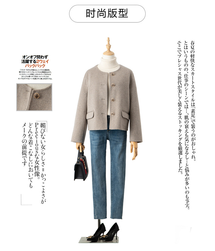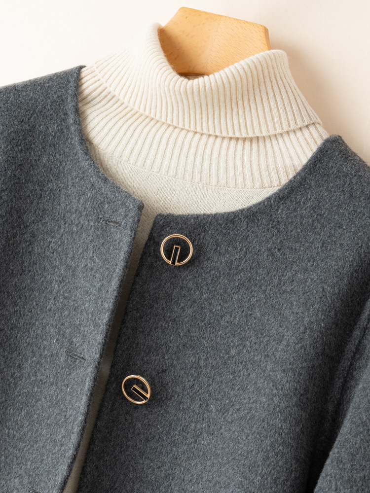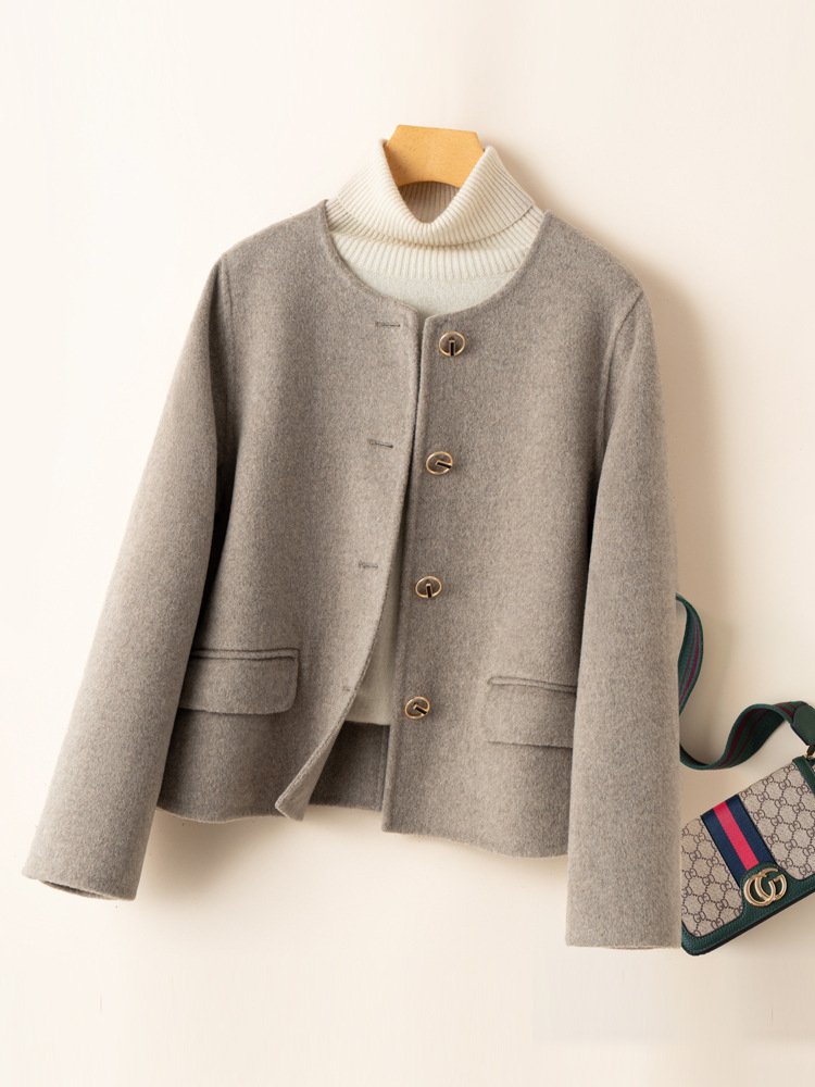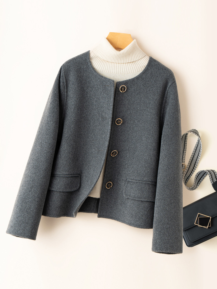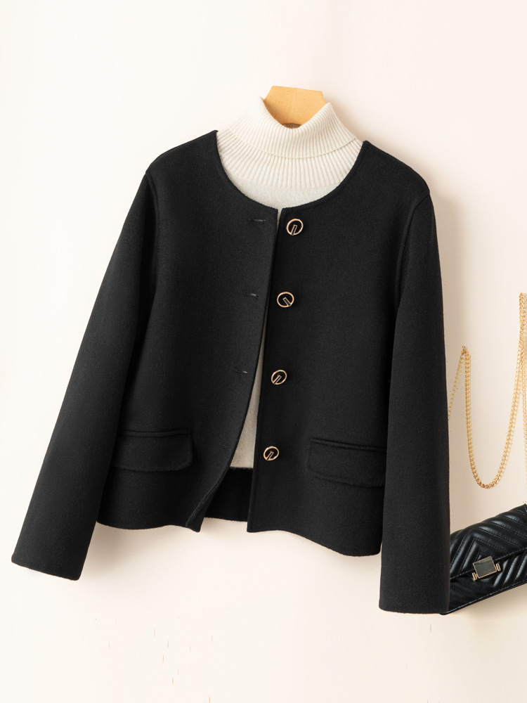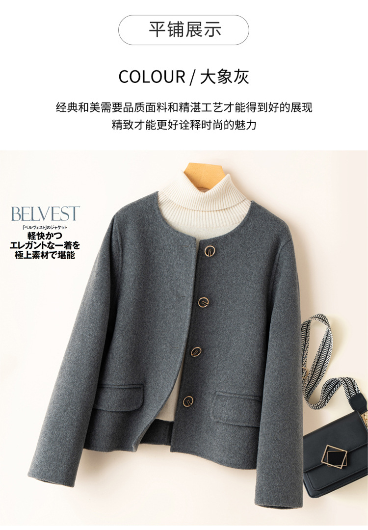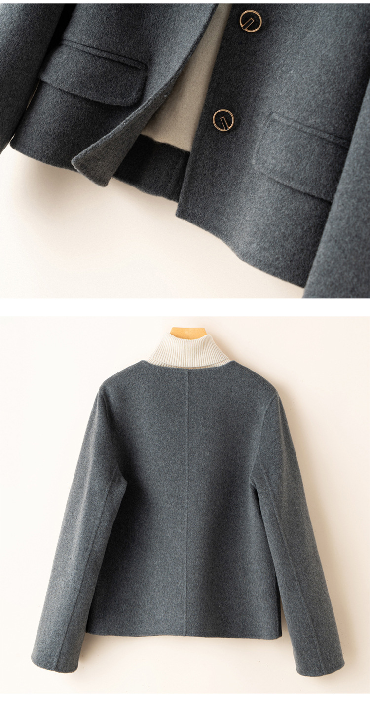 양면 양모 샤넬 스타일 코트 여성 하이 엔드 가을 착용 짧은 라운드 넥 한국 모직 코트