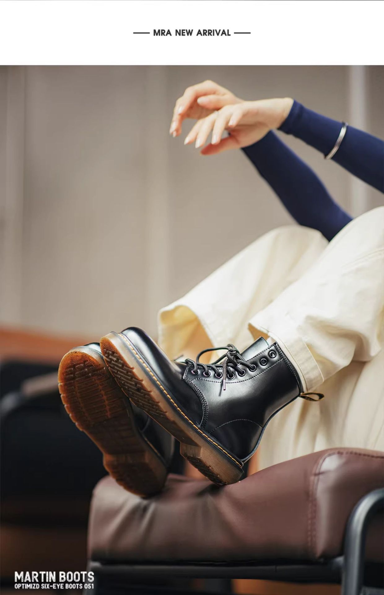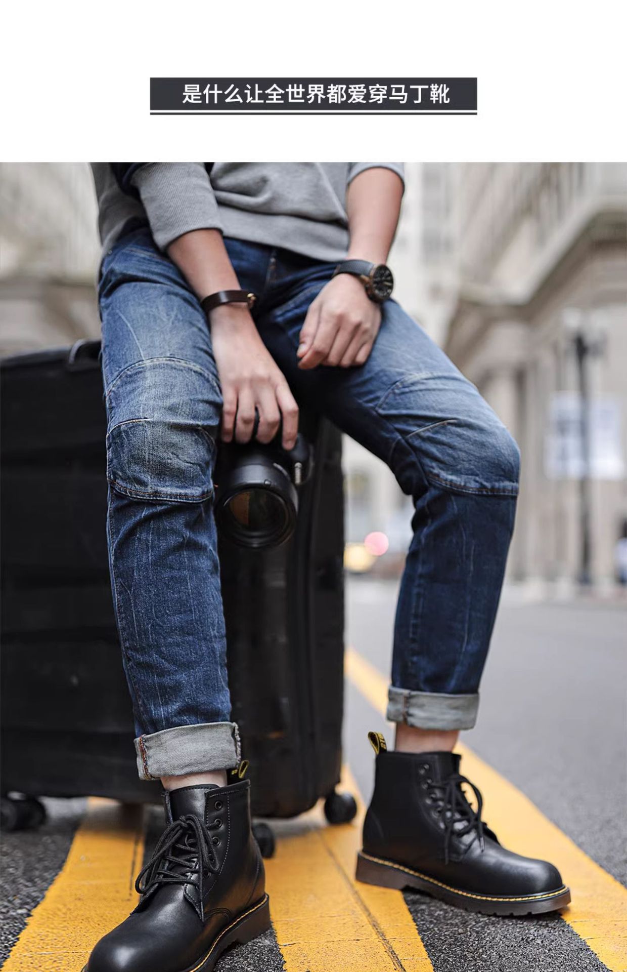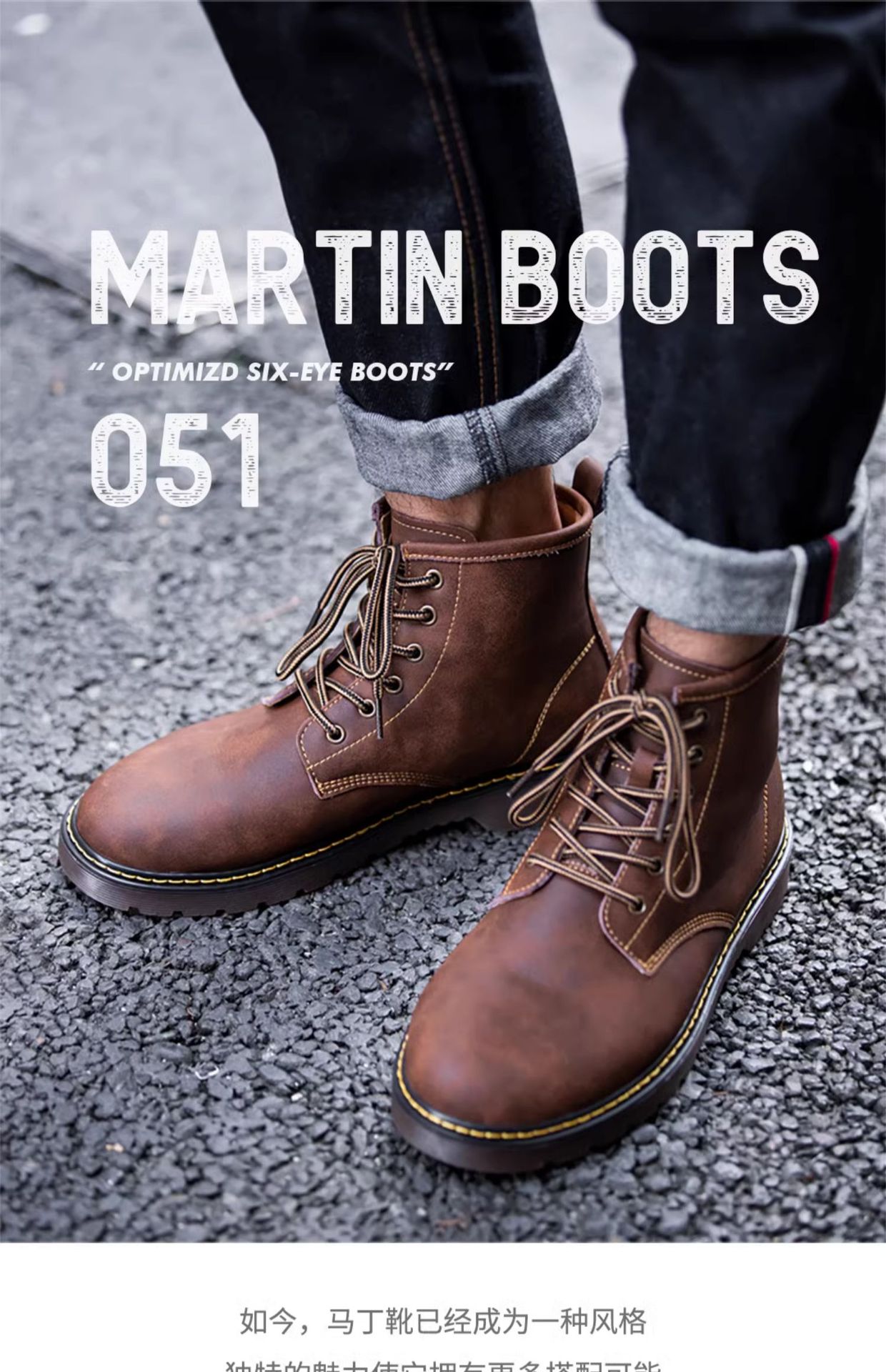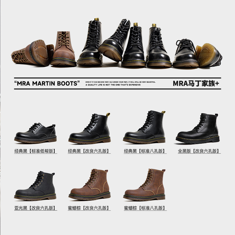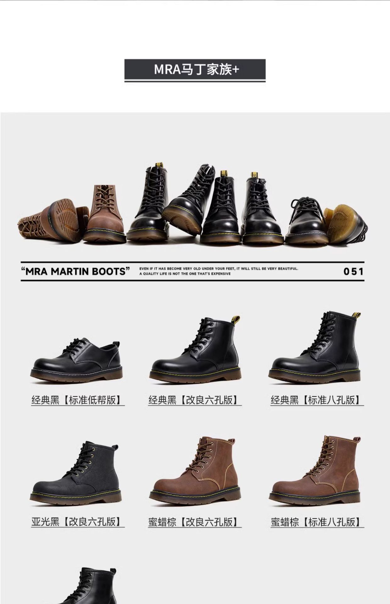 MRA 미드탑 마틴 부츠 남성용 봄 영국풍 하이탑 가죽신발 천연가죽 숏부츠 워크부츠 블랙 가죽부츠