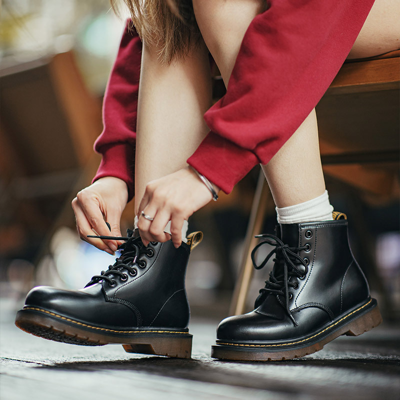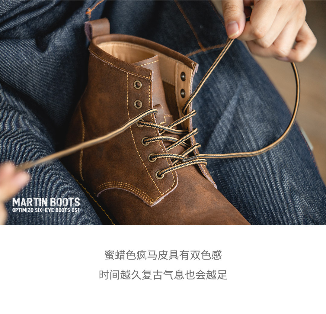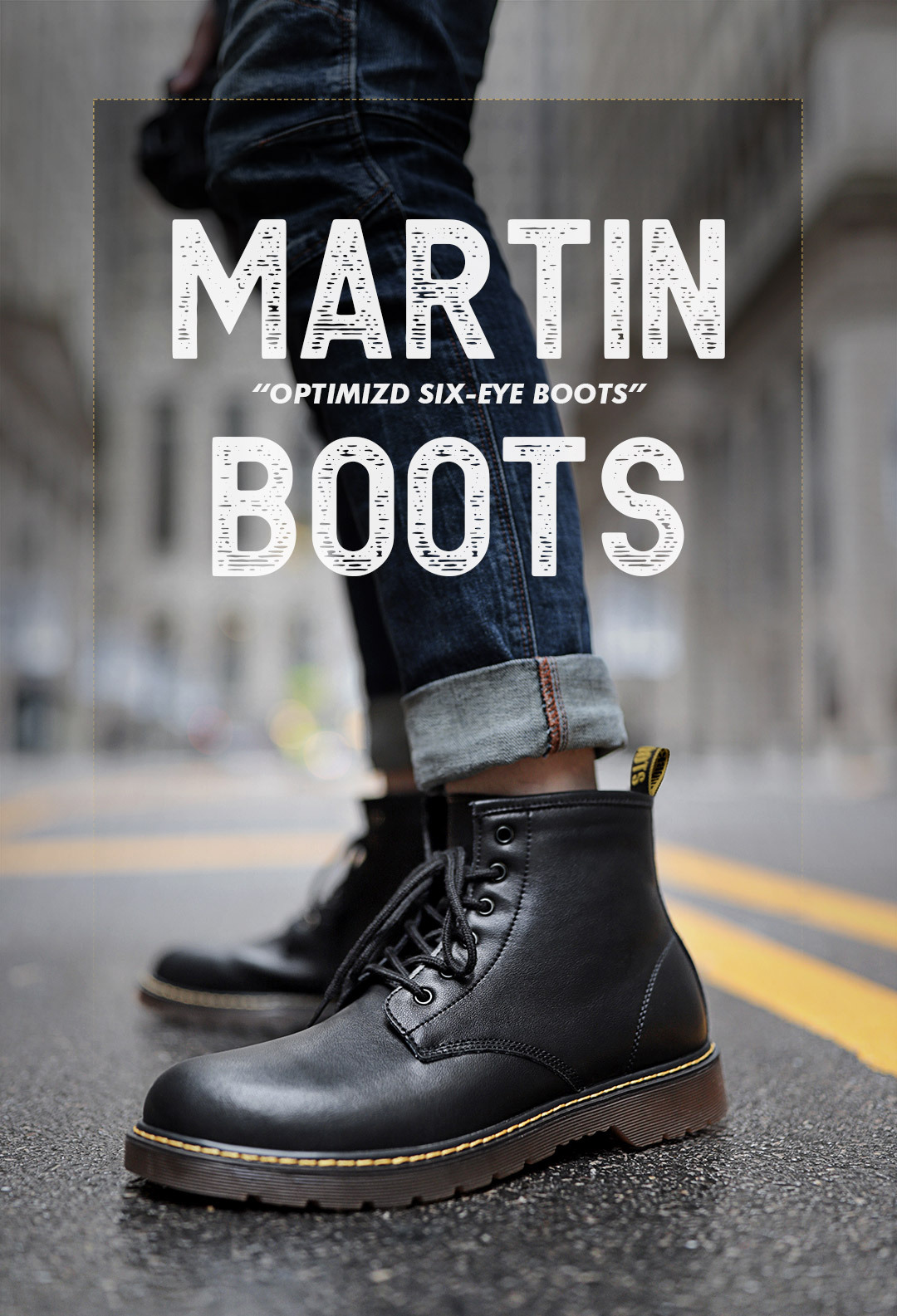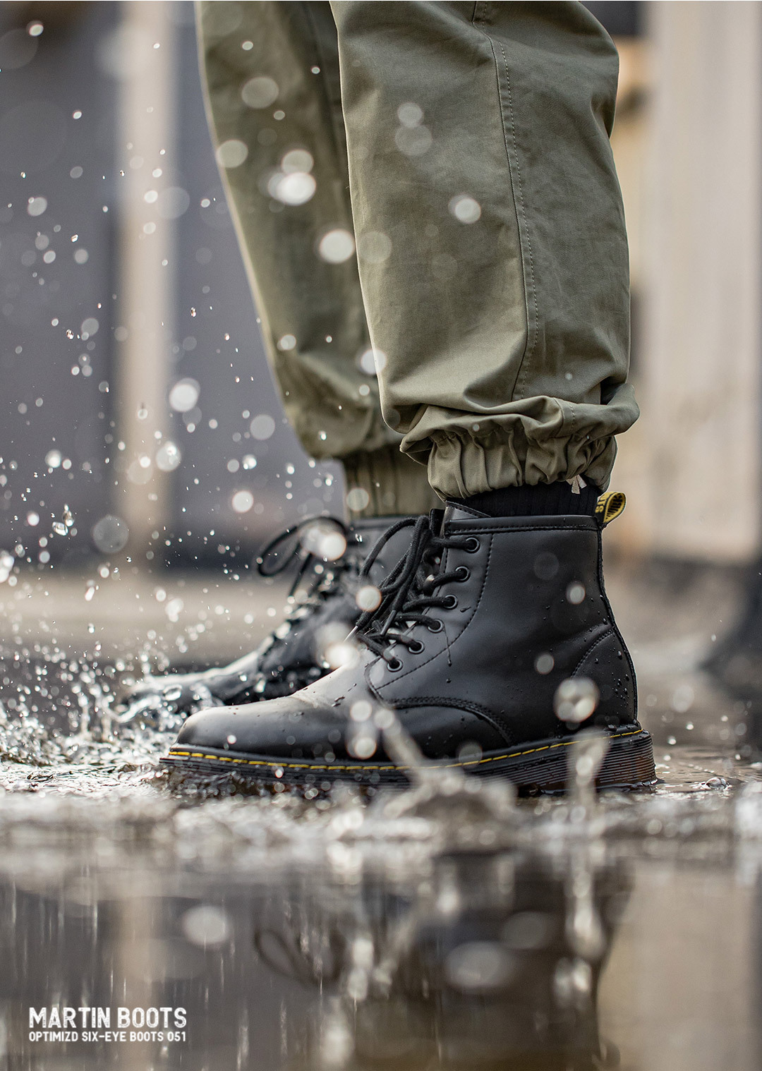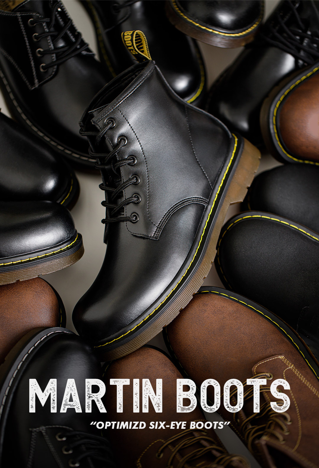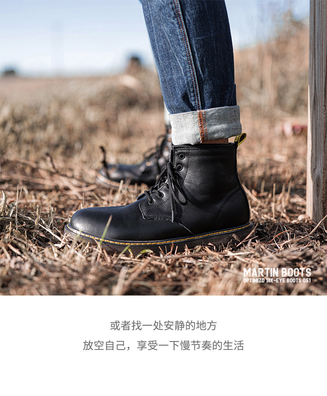 MRA 미드탑 마틴 부츠 남성용 봄 영국풍 하이탑 가죽신발 천연가죽 숏부츠 워크부츠 블랙 가죽부츠