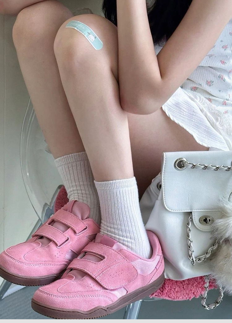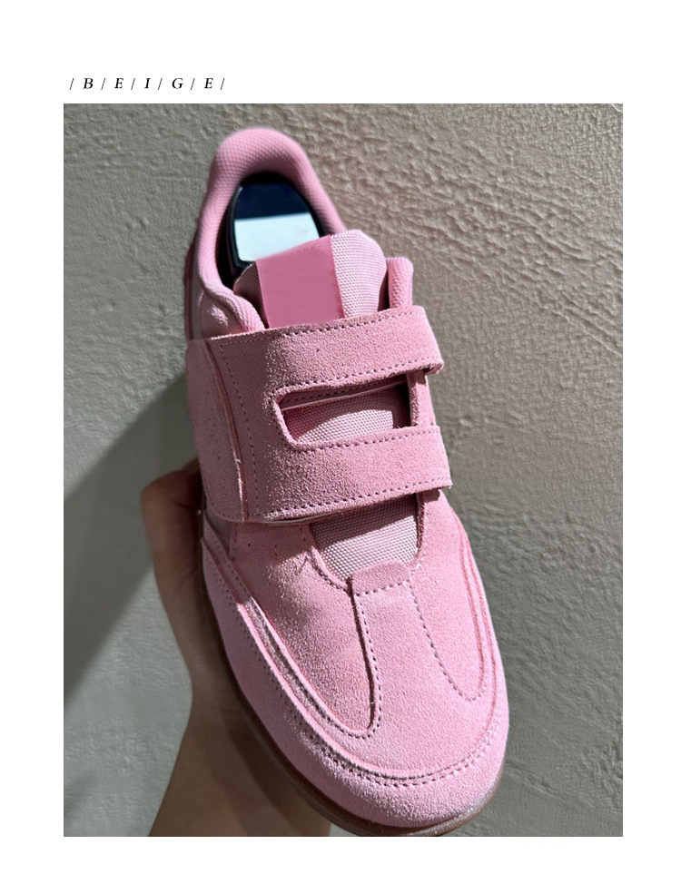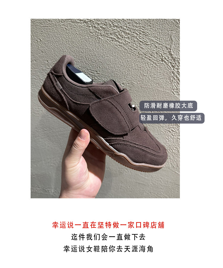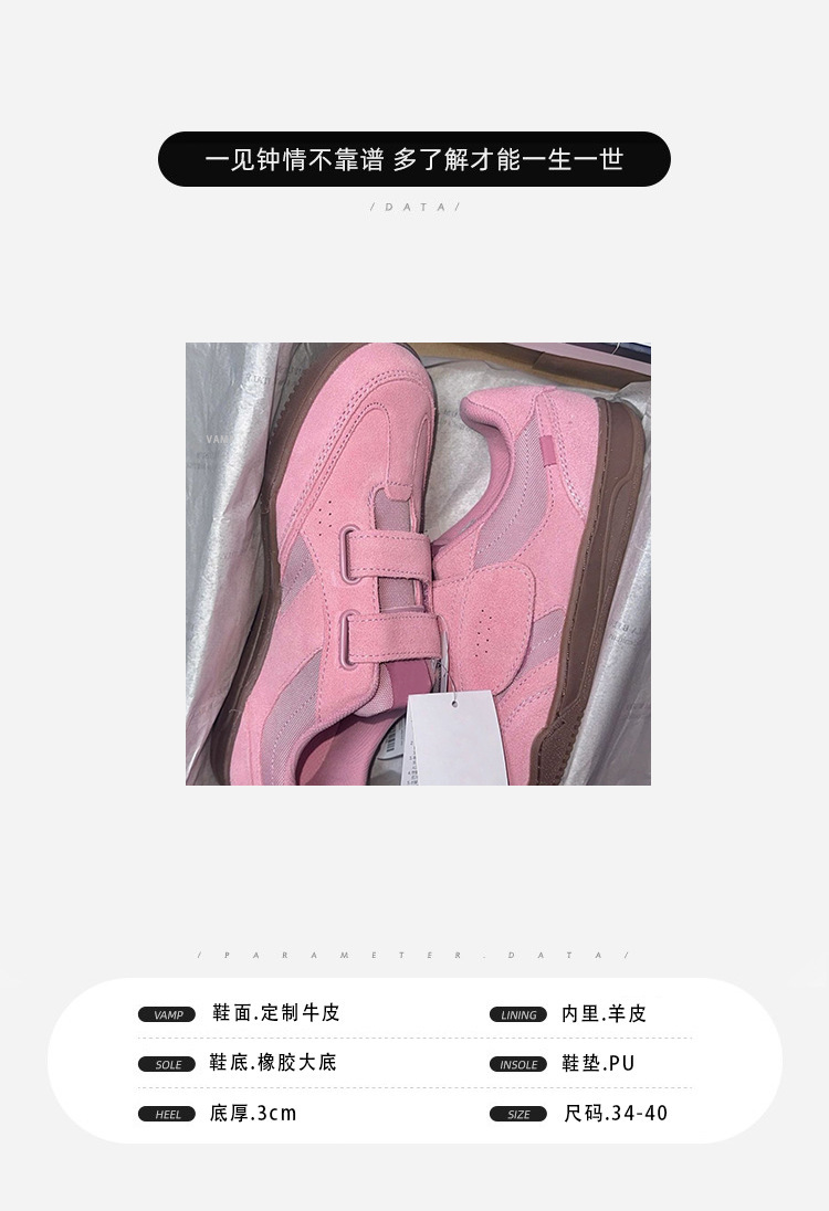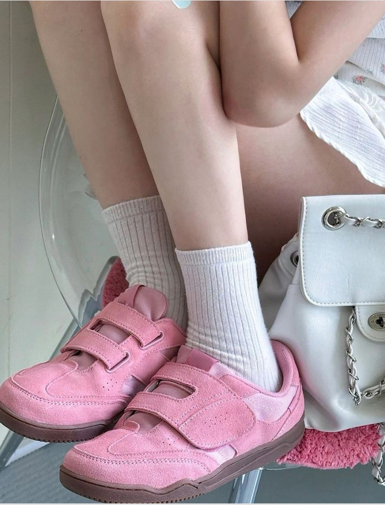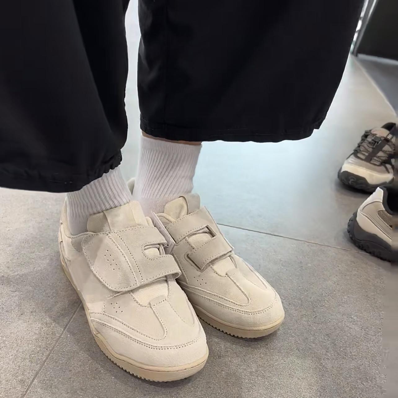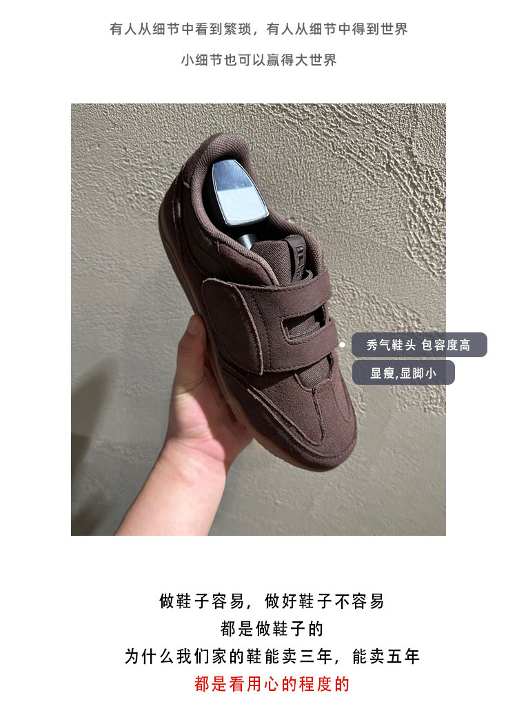정품 가죽 2024 한국 니치 정품 가죽 벨크로 라운드 토 트레이닝 슈즈 여성 캐주얼 스포츠 스타일 플랫 올 매치 스니커즈