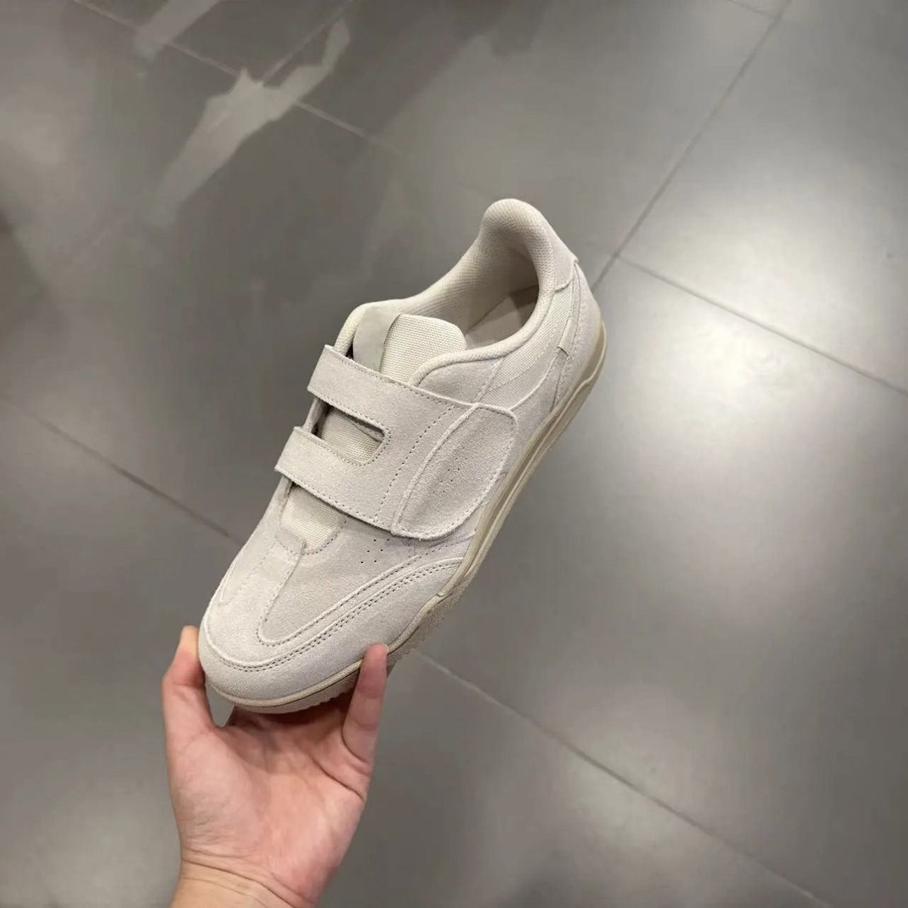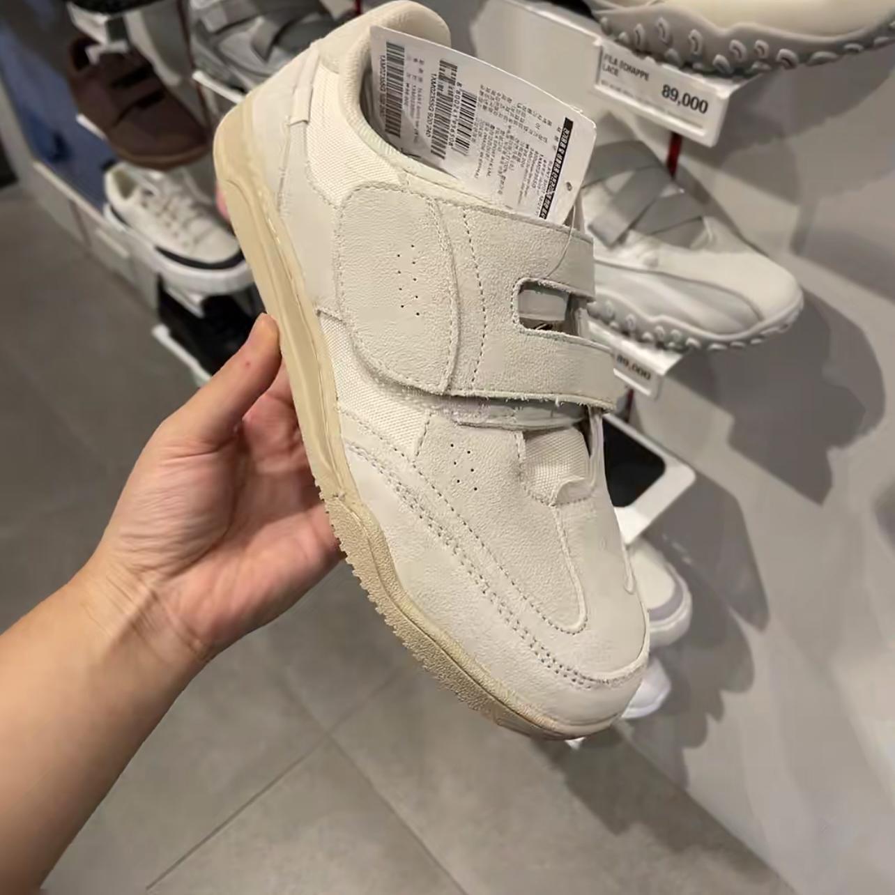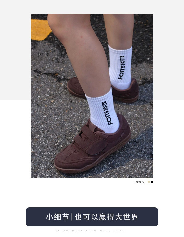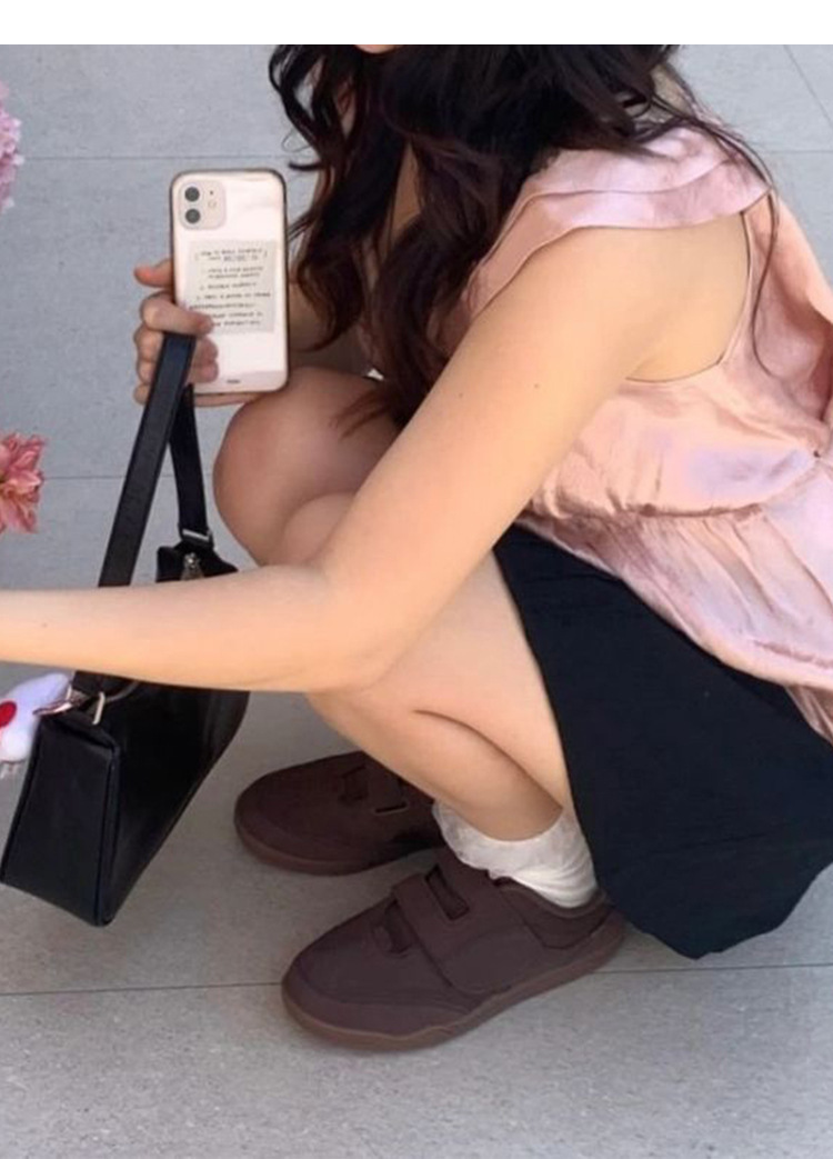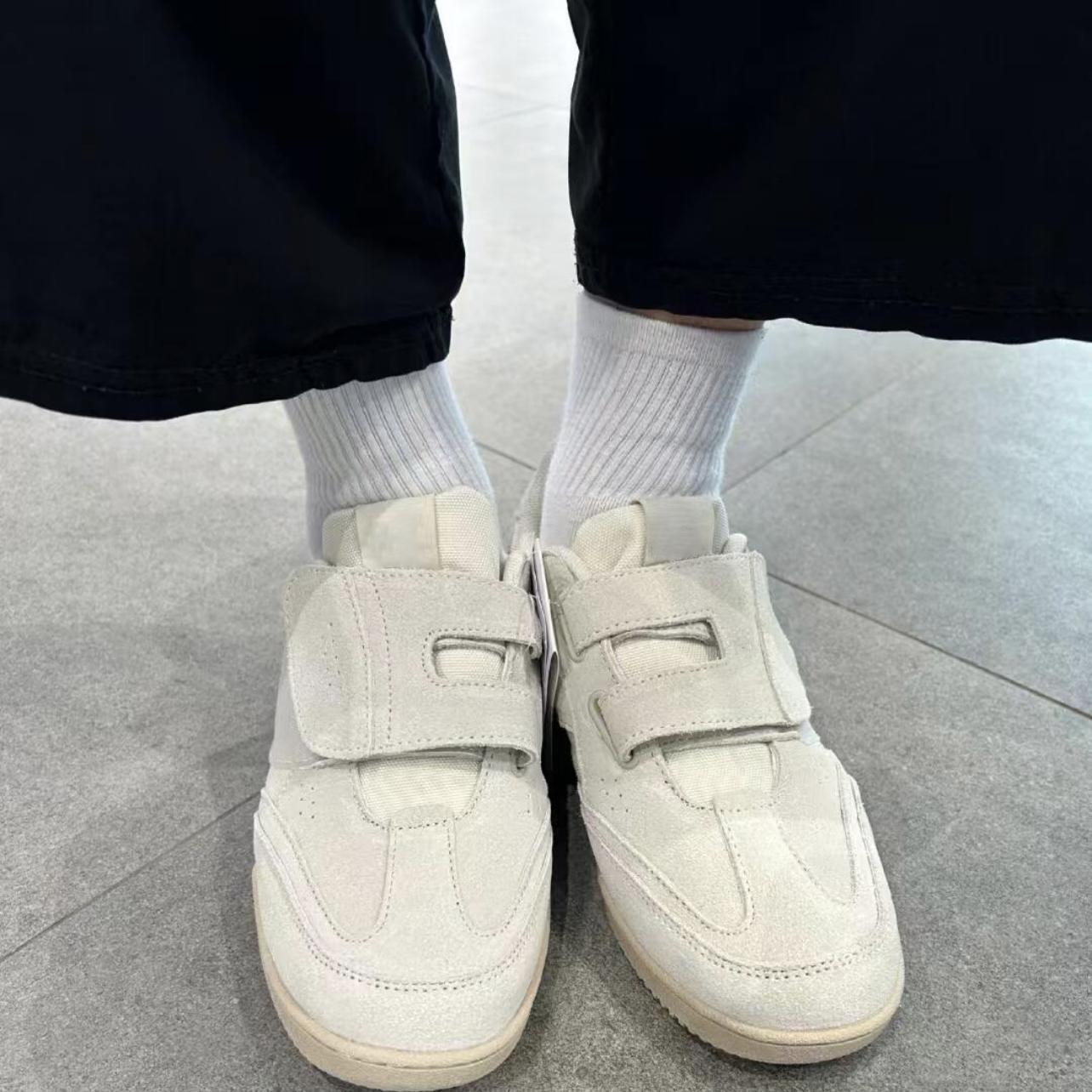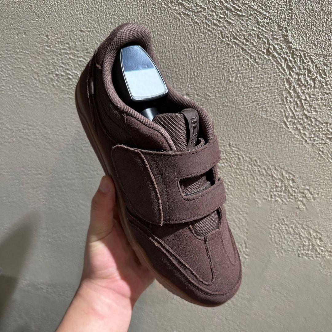 정품 가죽 2024 한국 니치 정품 가죽 벨크로 라운드 토 트레이닝 슈즈 여성 캐주얼 스포츠 스타일 플랫 올 매치 스니커즈