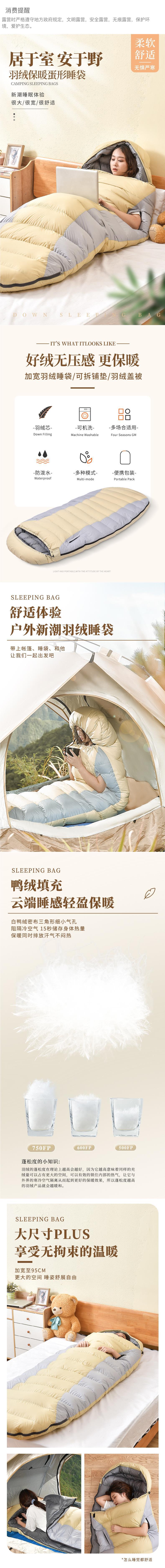 2300g 다운 + 베개 + 램프 + 방습 패드 + 라이너가 포함된 카키색