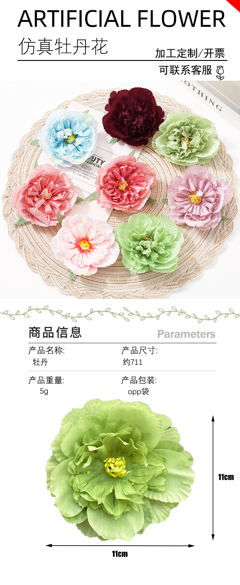인공 모란 꽃 머리 머리핀 꽃 헤어 액세서리 실크 꽃 인공 꽃 DIY 수제 보석 장식 재료