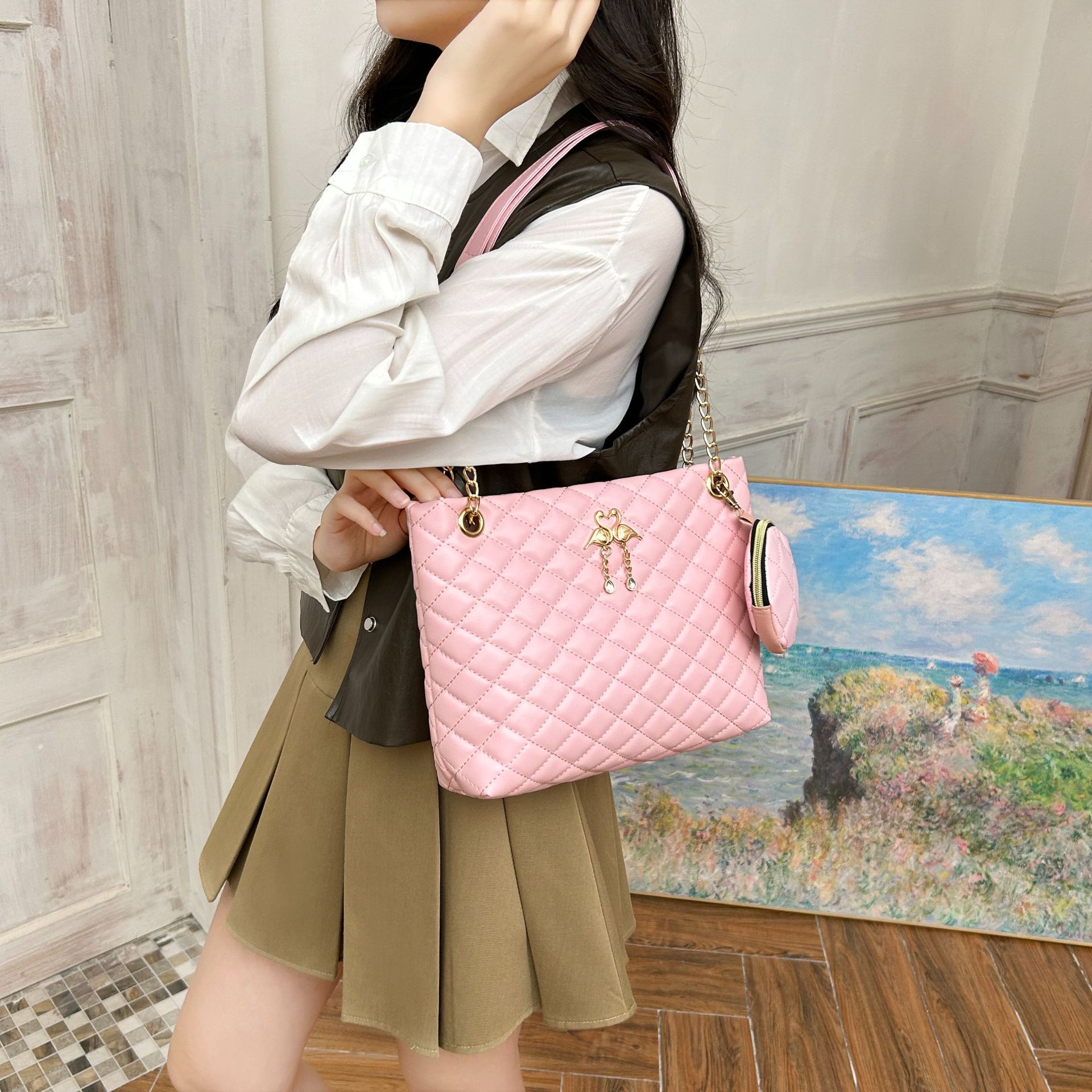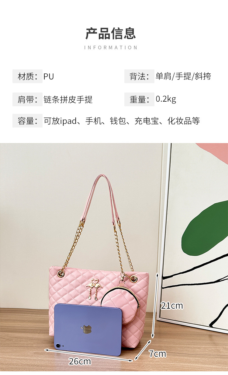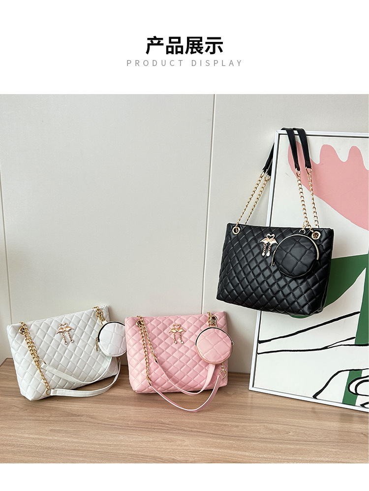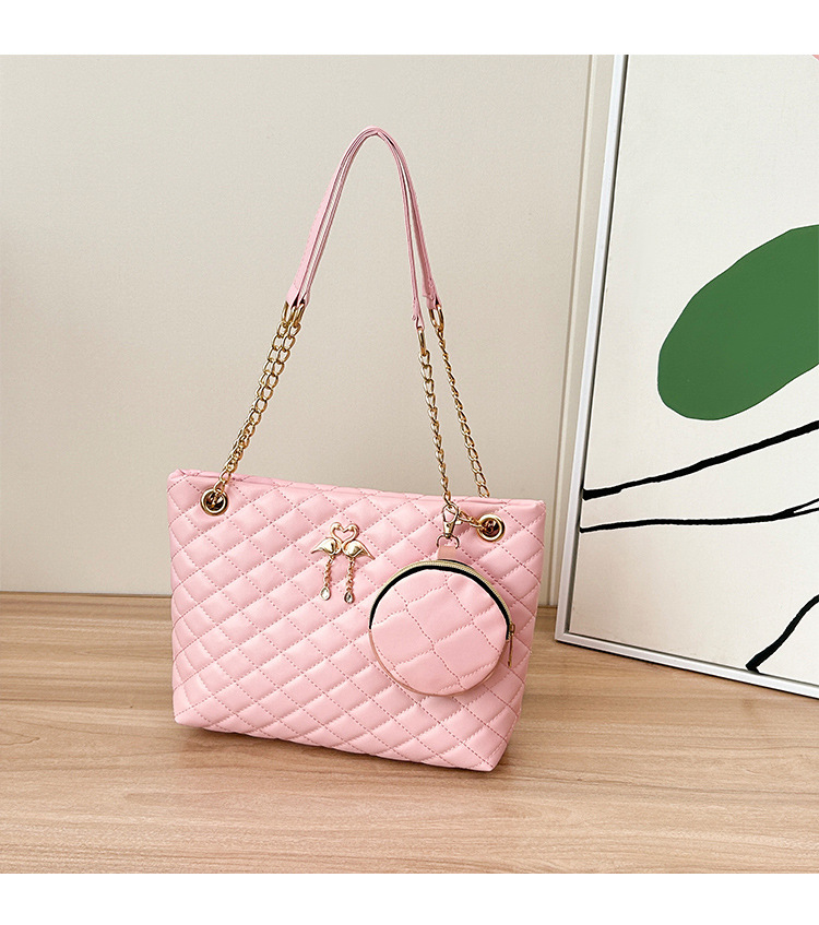 2024 한국 여성 어깨 메신저 가방 대용량 플랫 펜던트 펜던트 체인 핸드백 백 제조 업체 도매